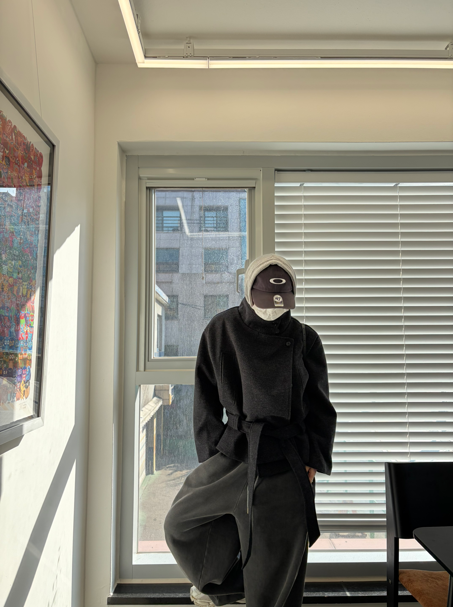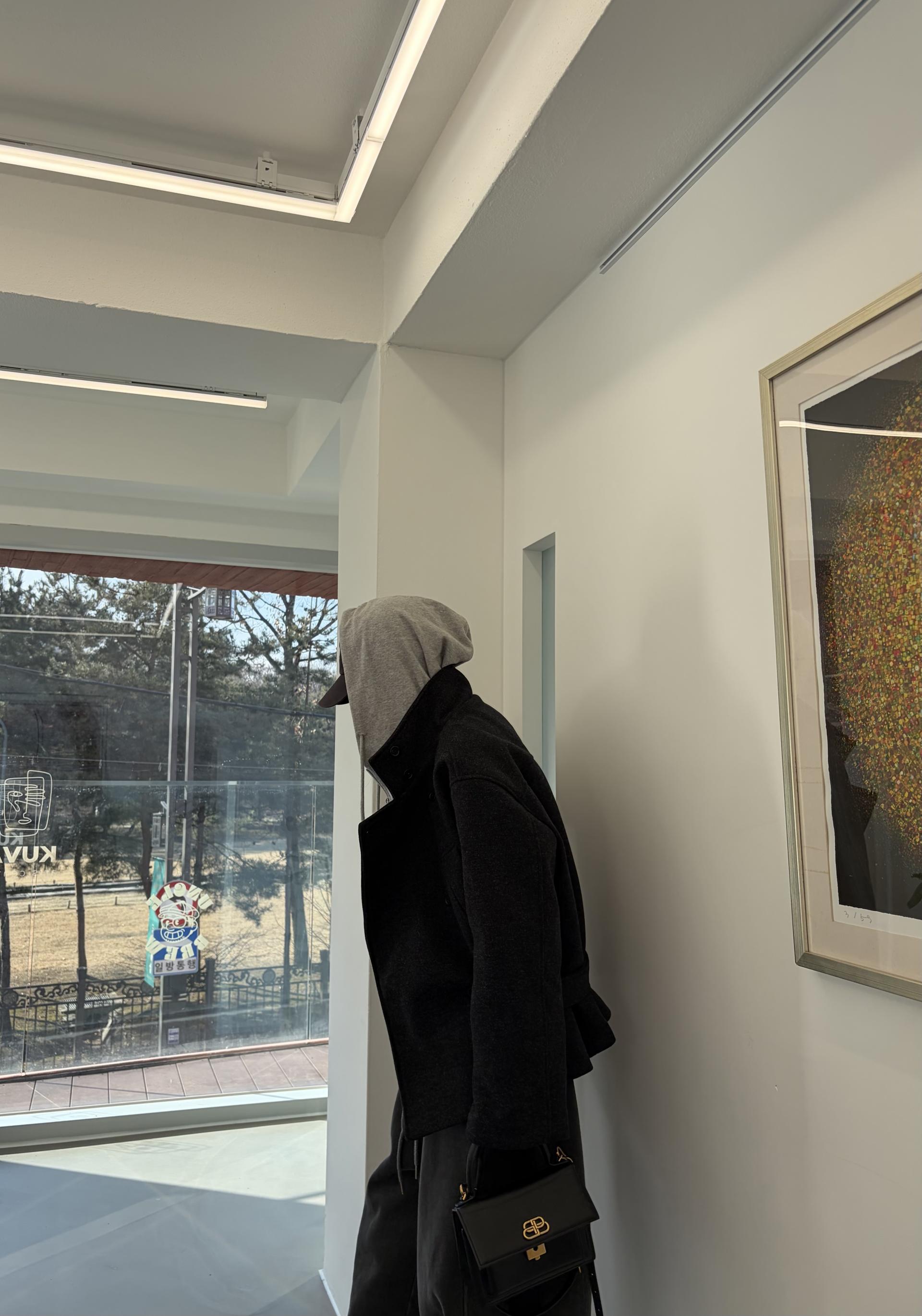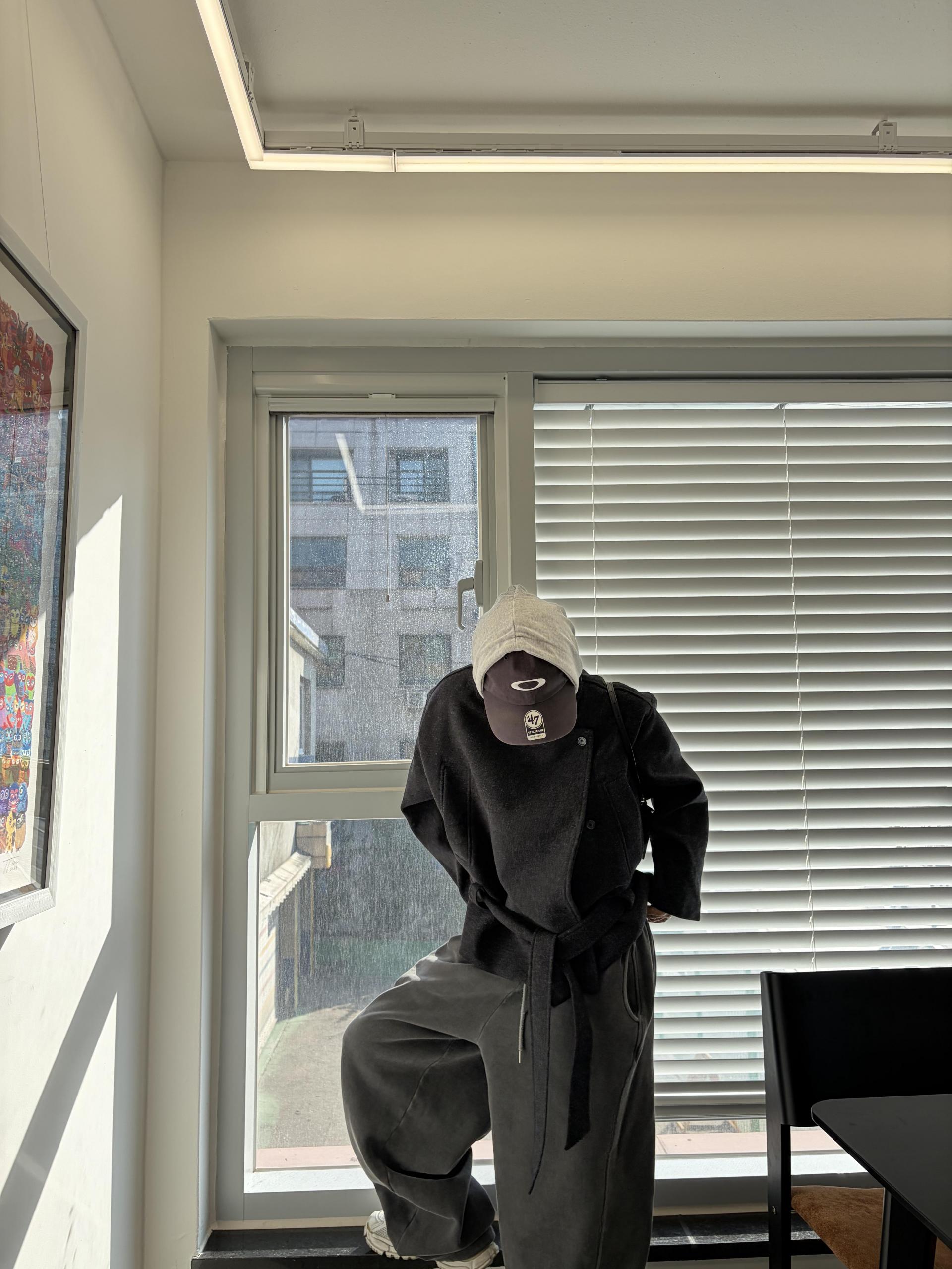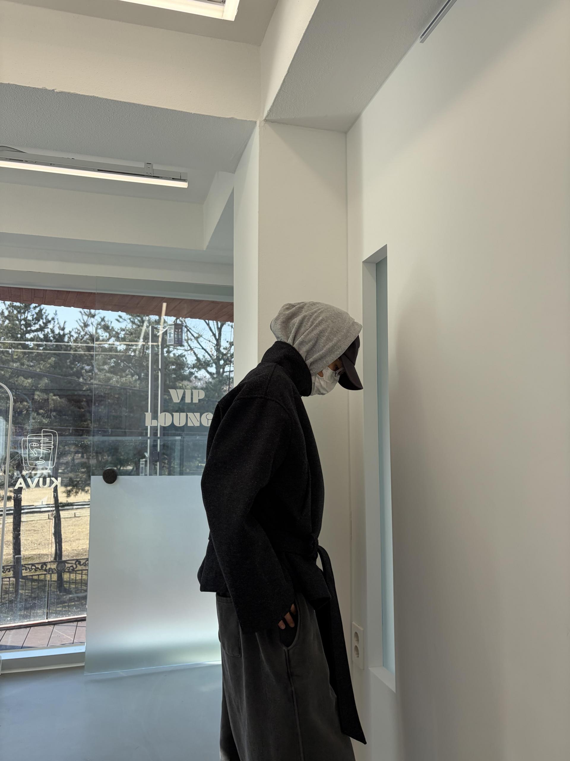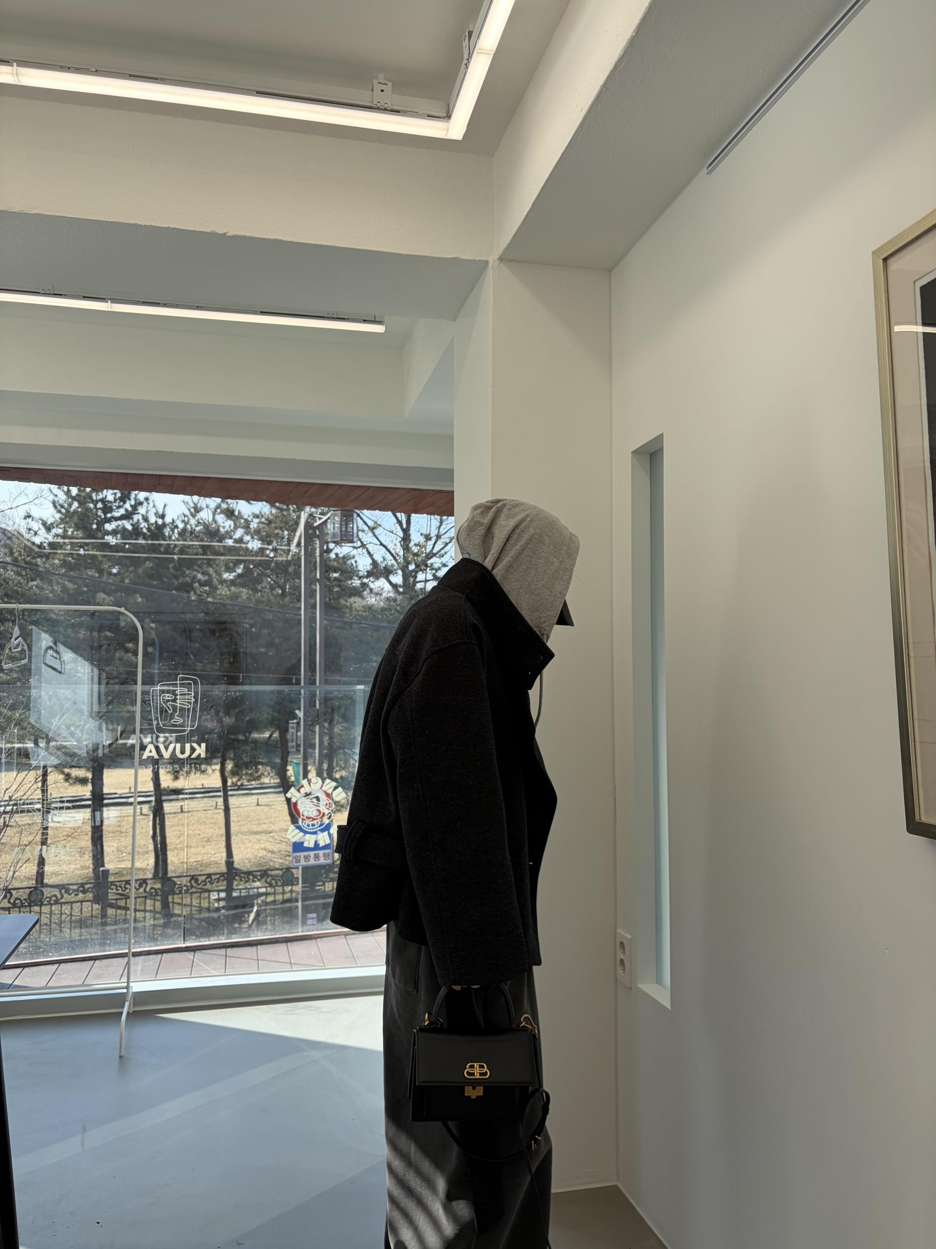 차분하게 떨어지는 하프 기장감과 힘있게 떨어지는 실루엣으로,