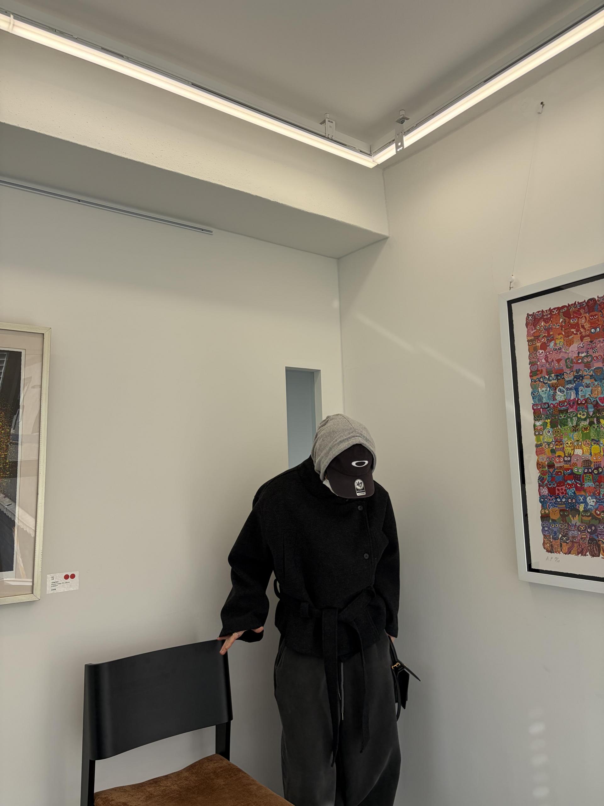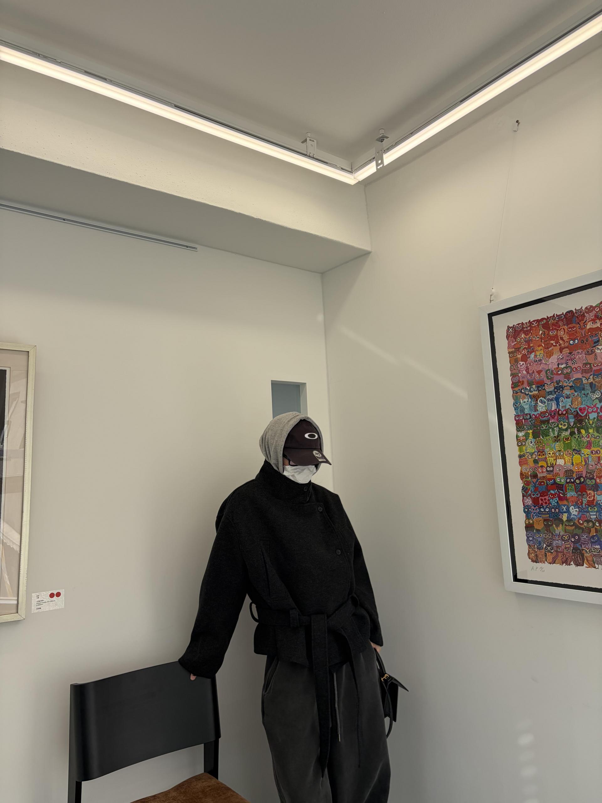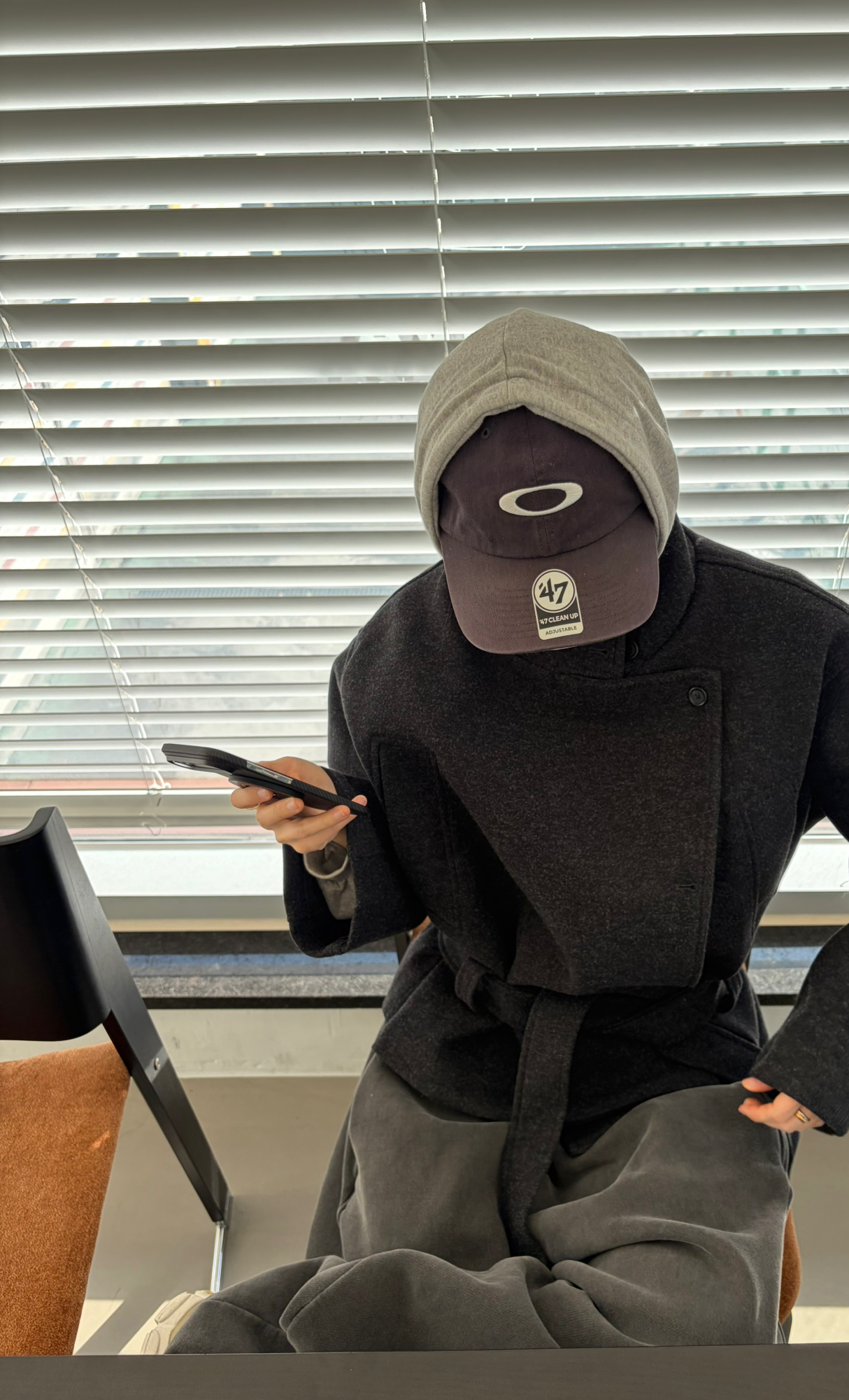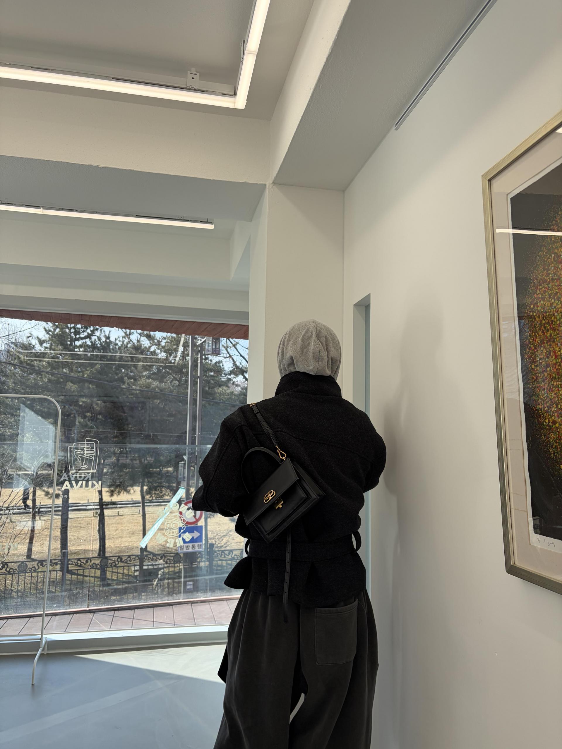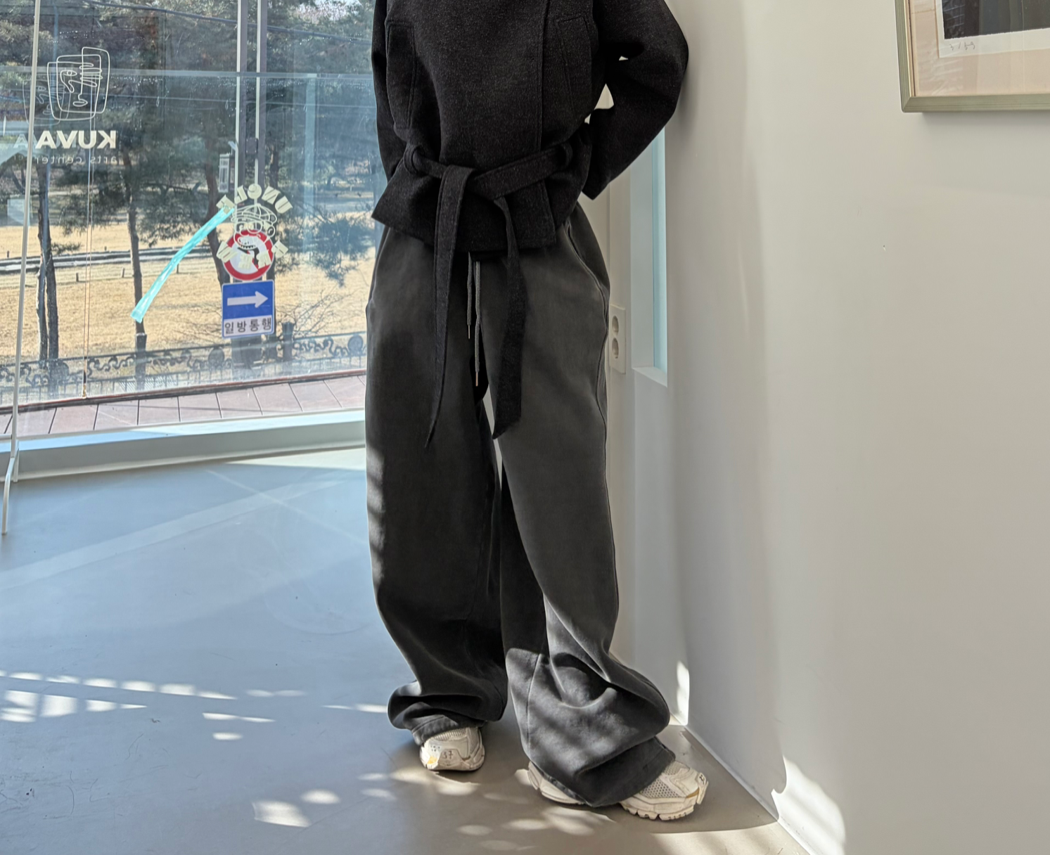 차분하게 떨어지는 하프 기장감과 힘있게 떨어지는 실루엣으로,