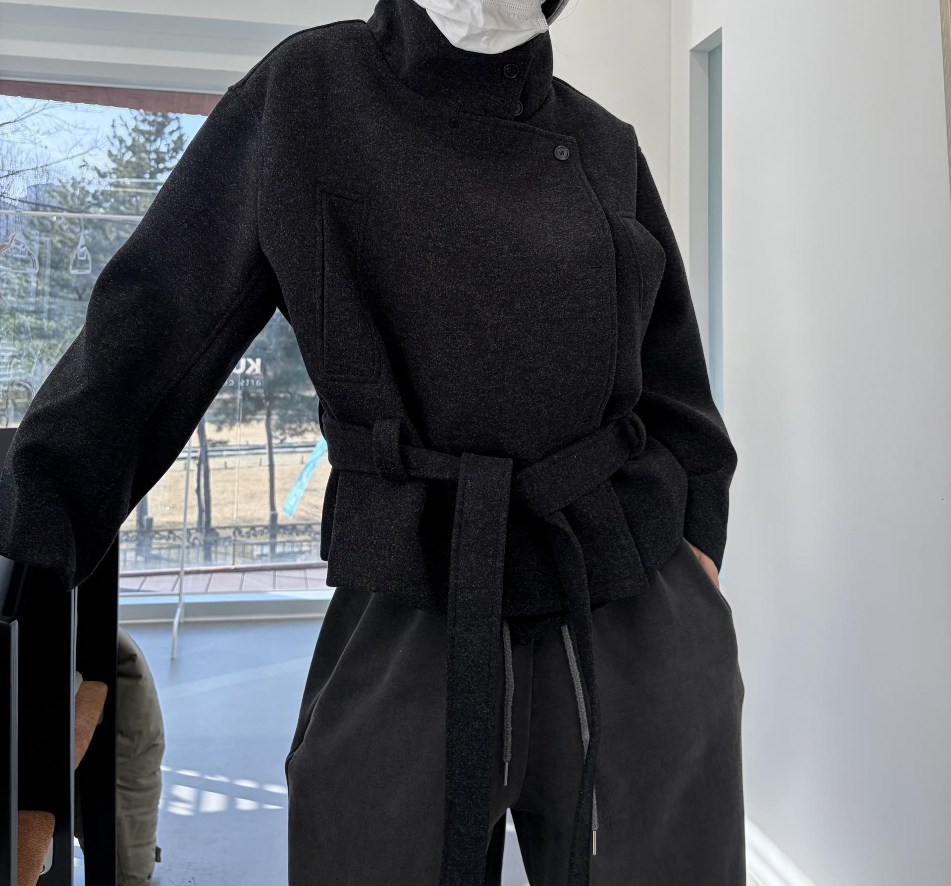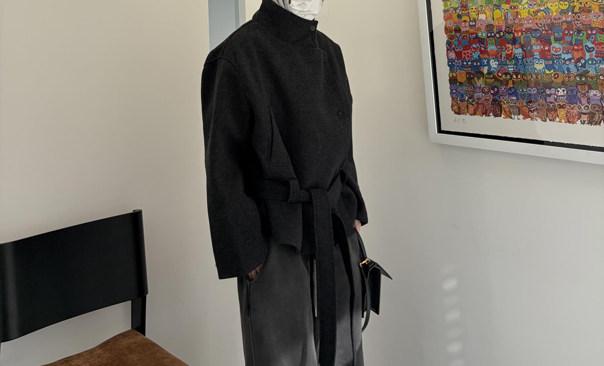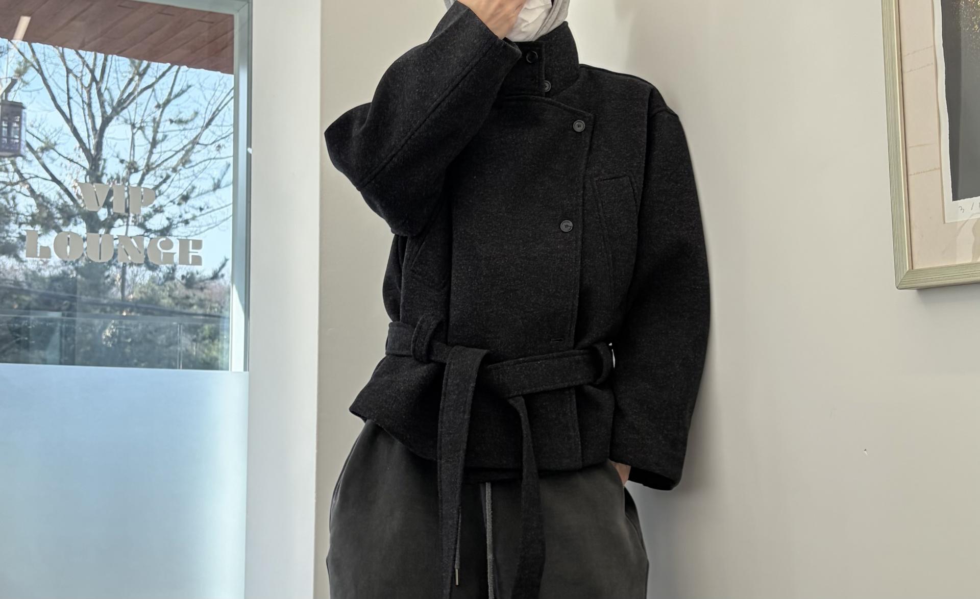 클래식한 무드에 감각적인 버튼 디테일이 더해진 울 혼방 벨트 하프 코트입니다.