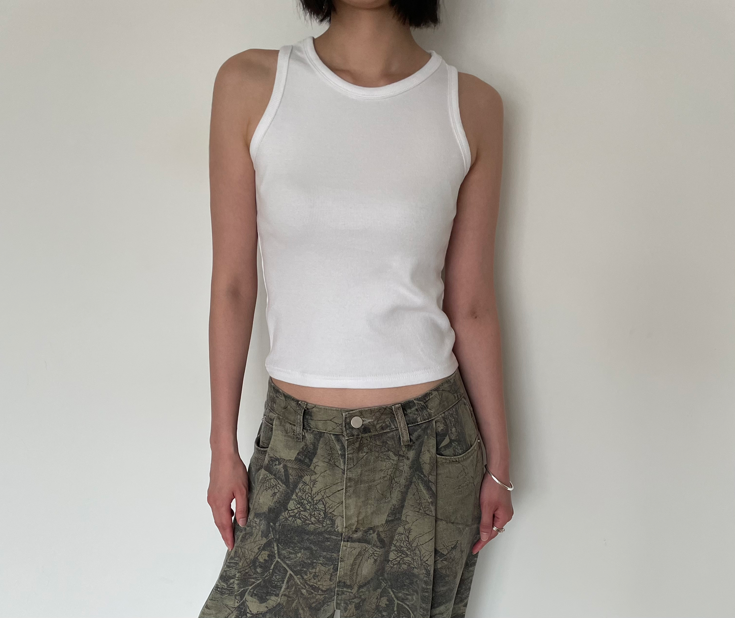골지 조직감이 살아있는 베이직 슬리브리스 탑.