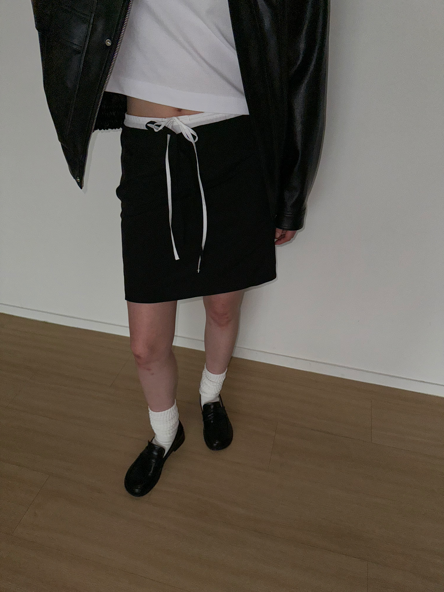 하프팬츠나 스커트 등과 세련된 데일리 아이템으로 활용하기 좋으며 시크한 무드로 활용도가 높음