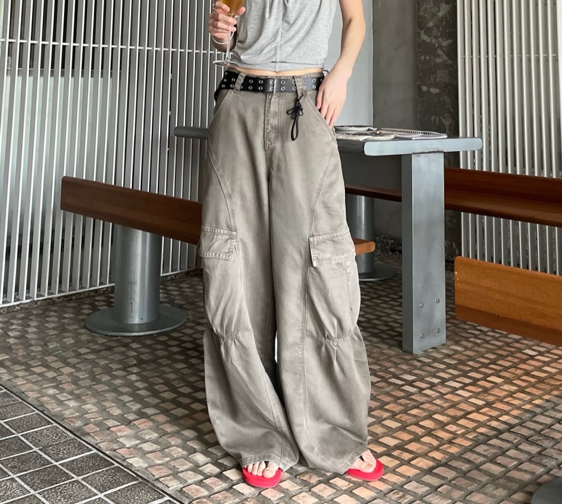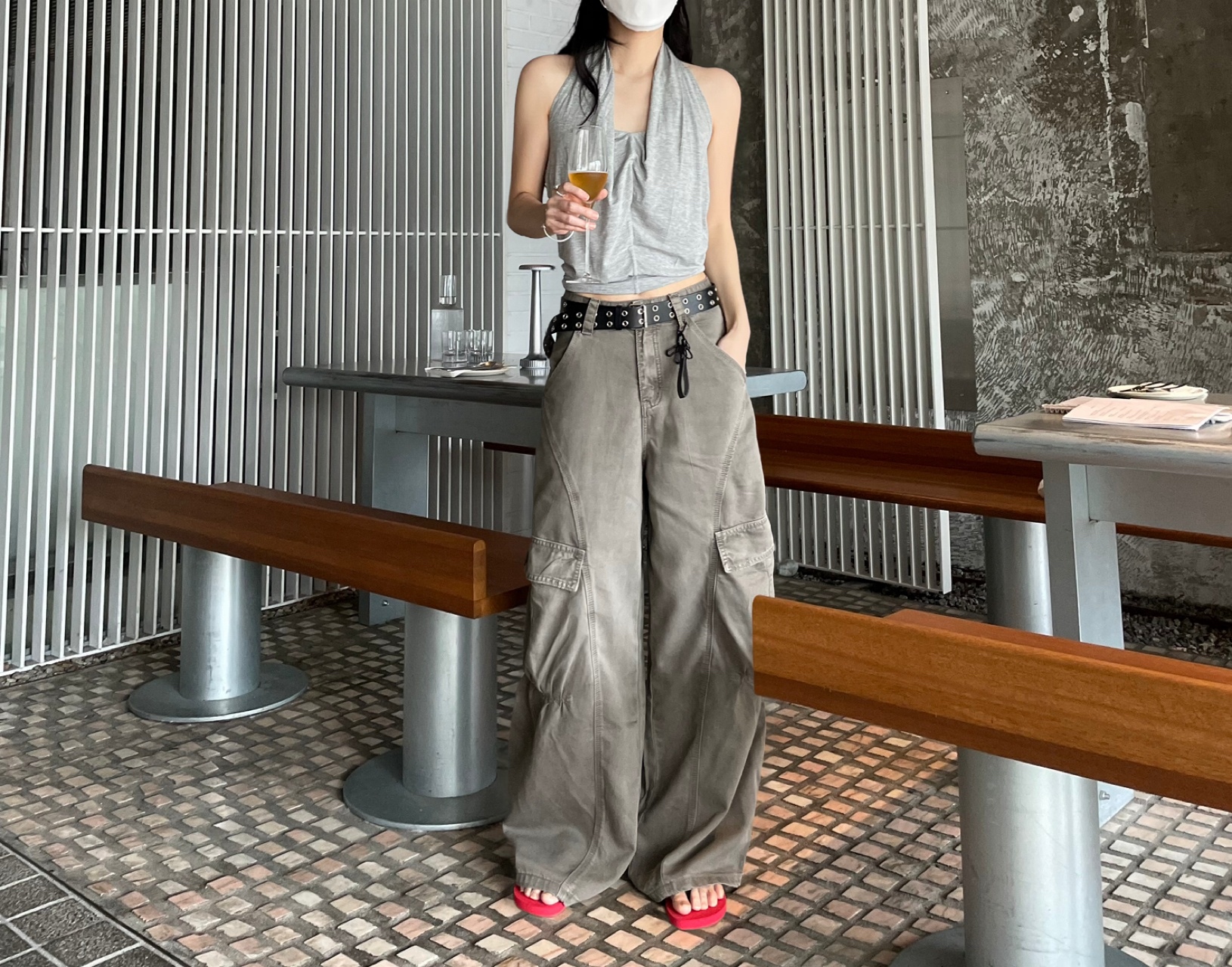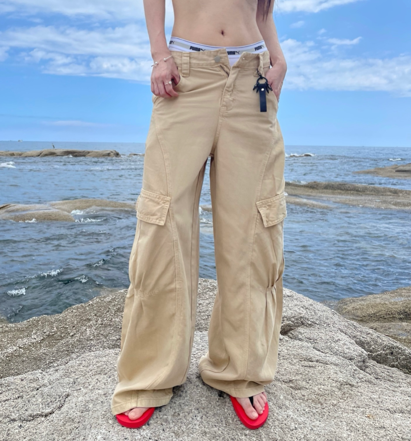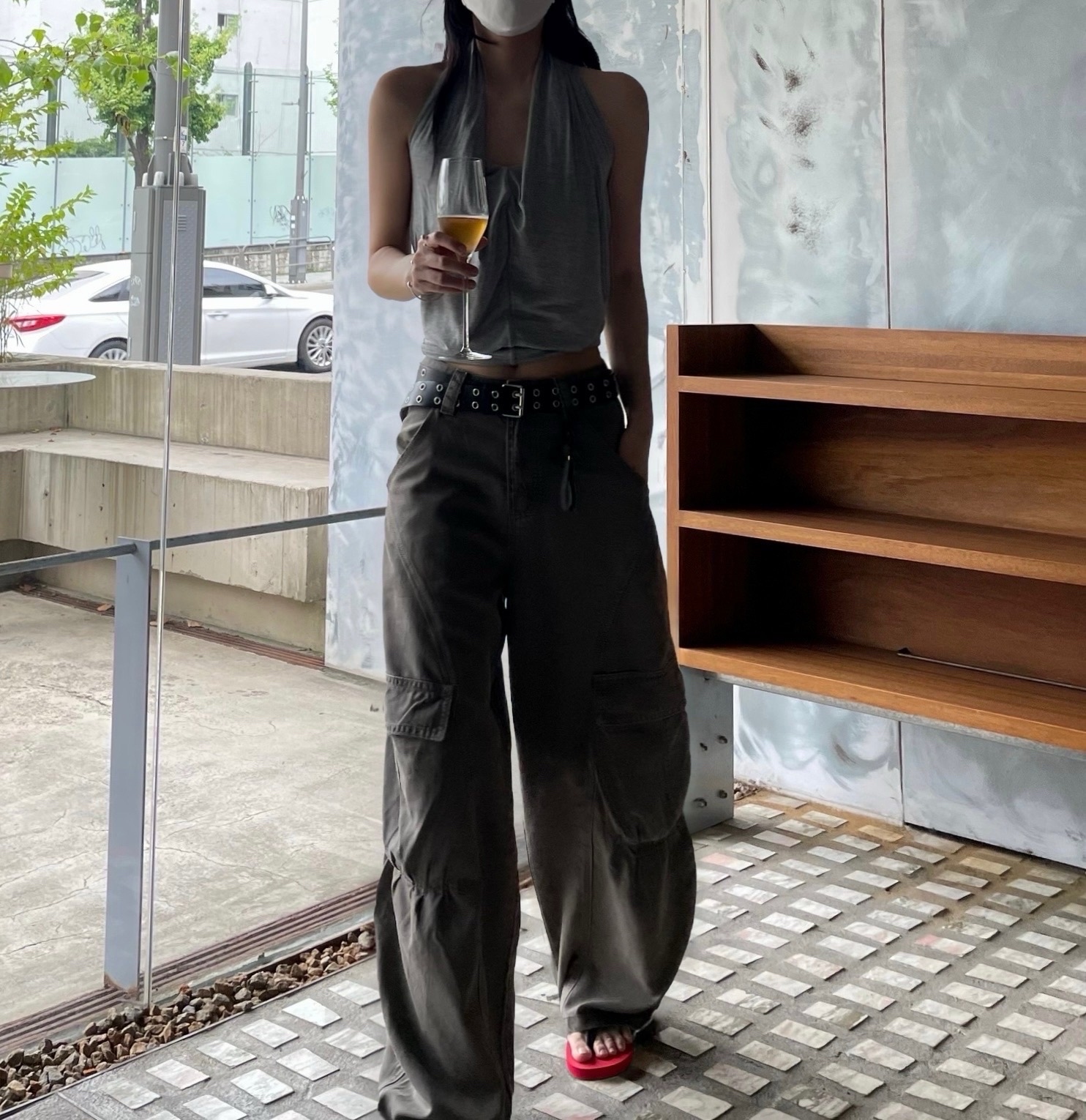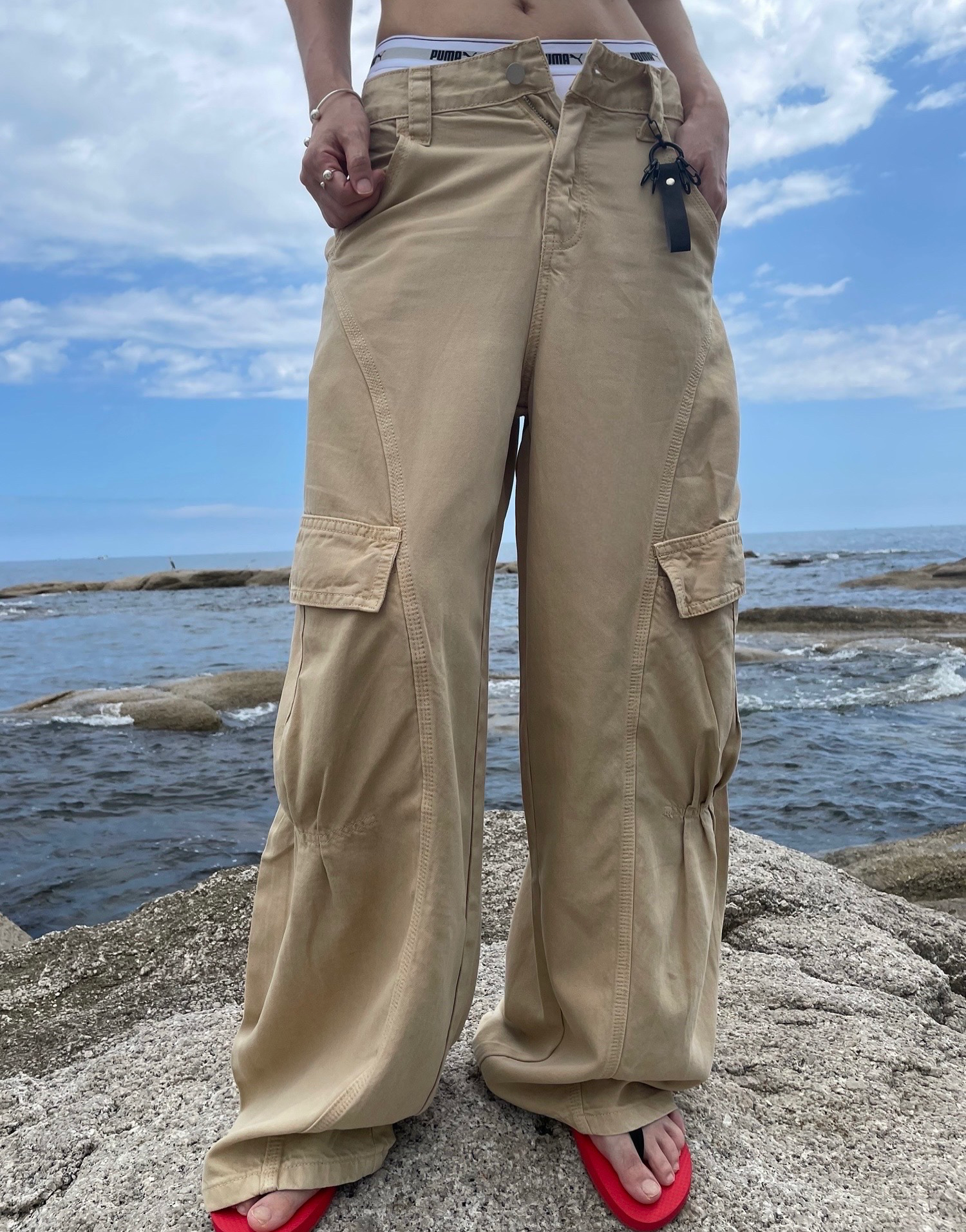 -앞포켓 시크한 셔링 + 뒷면 절개 포인트의 유니크 카고 팬츠