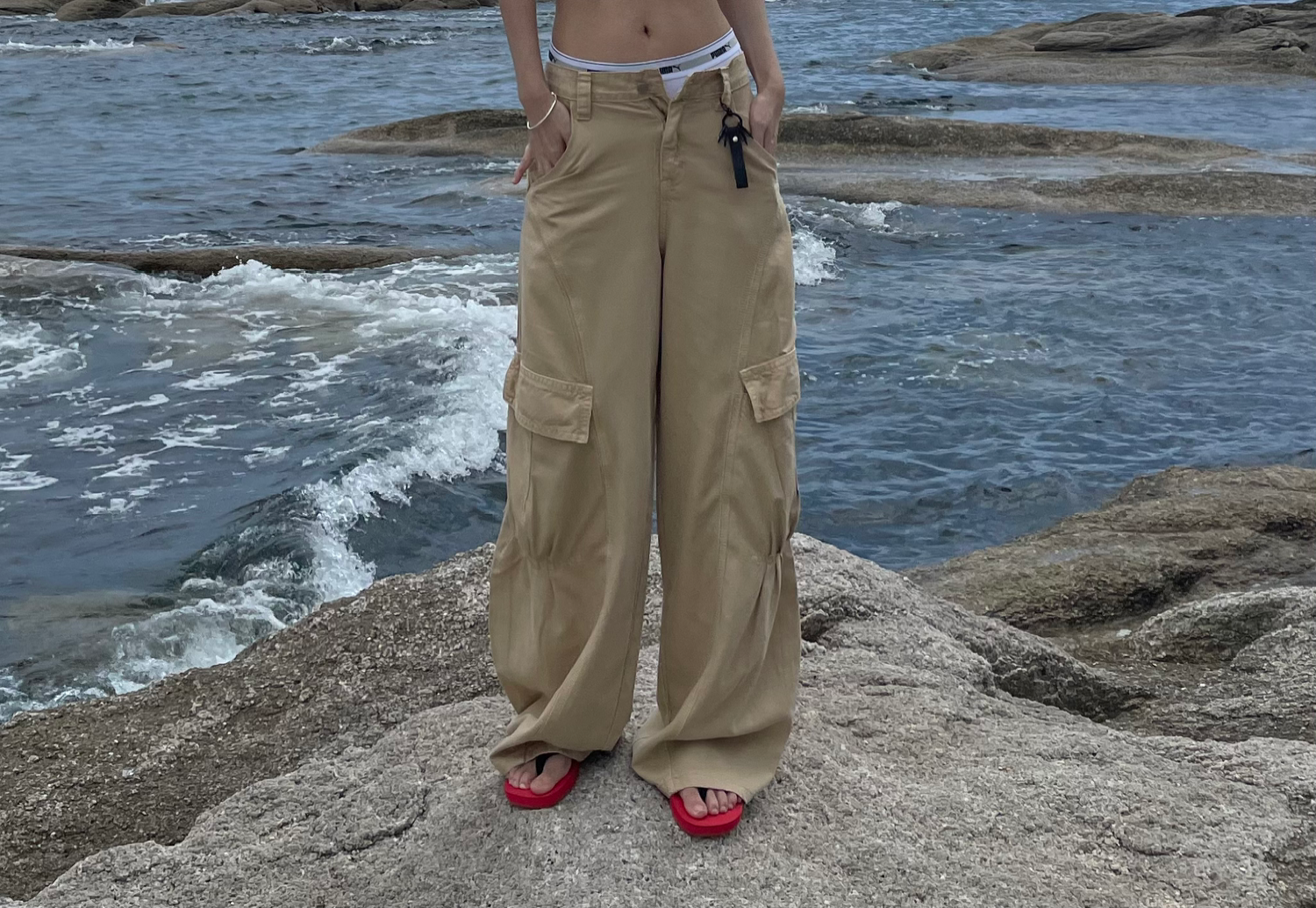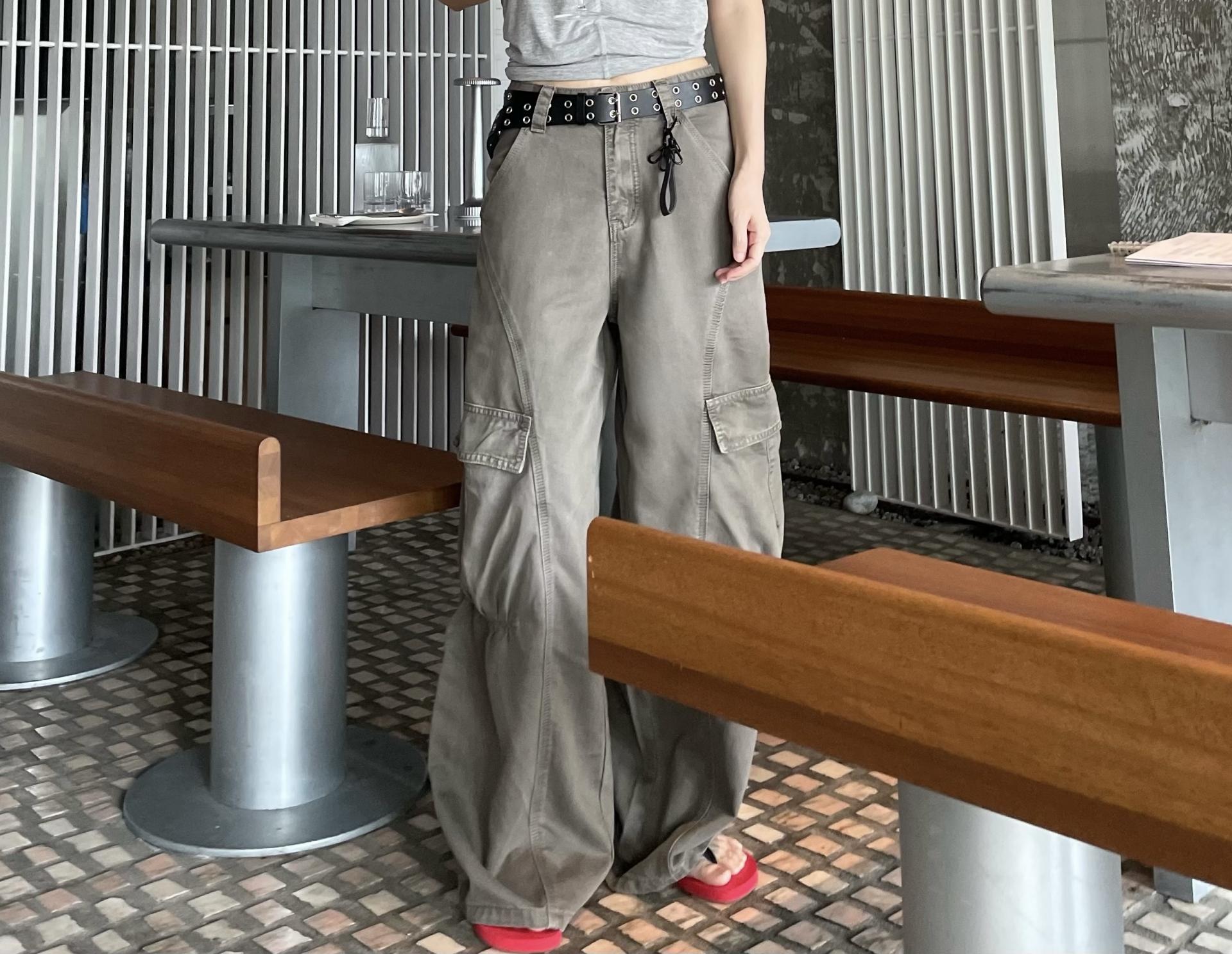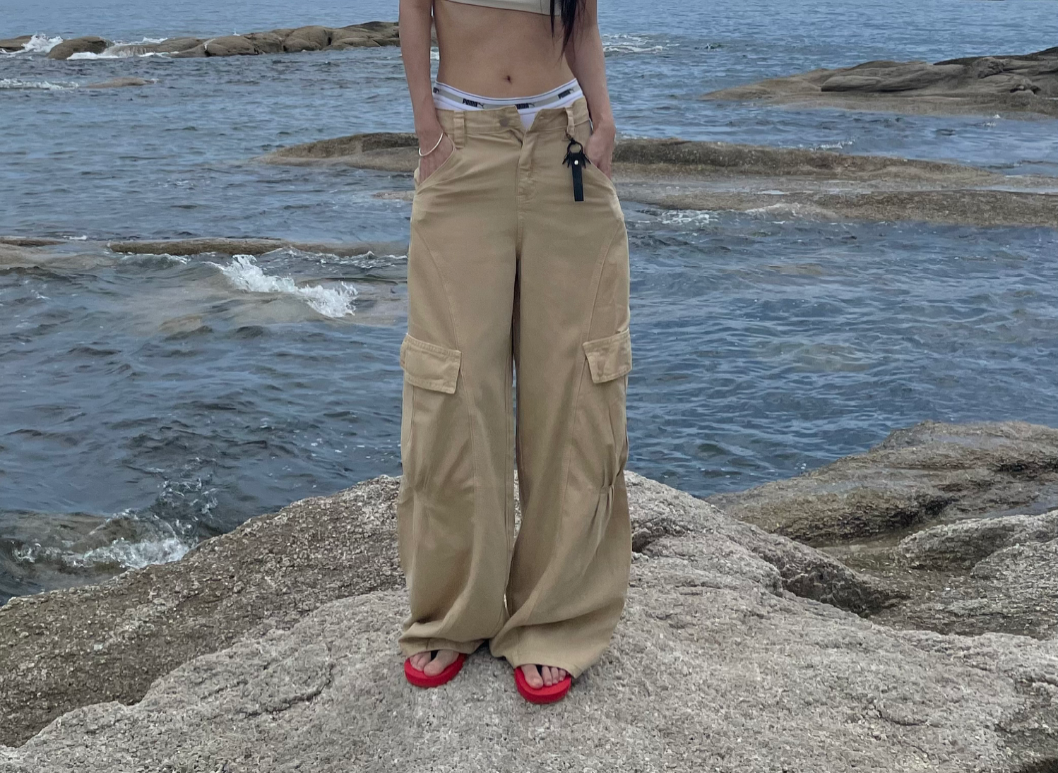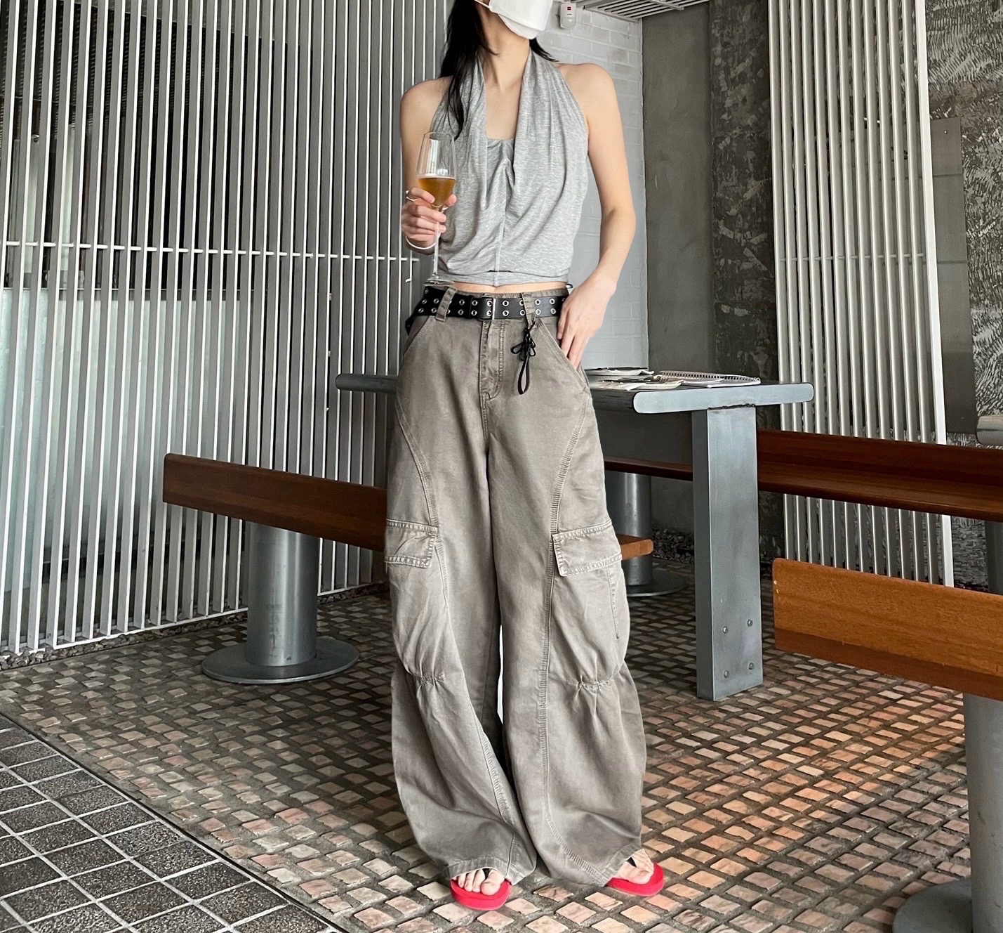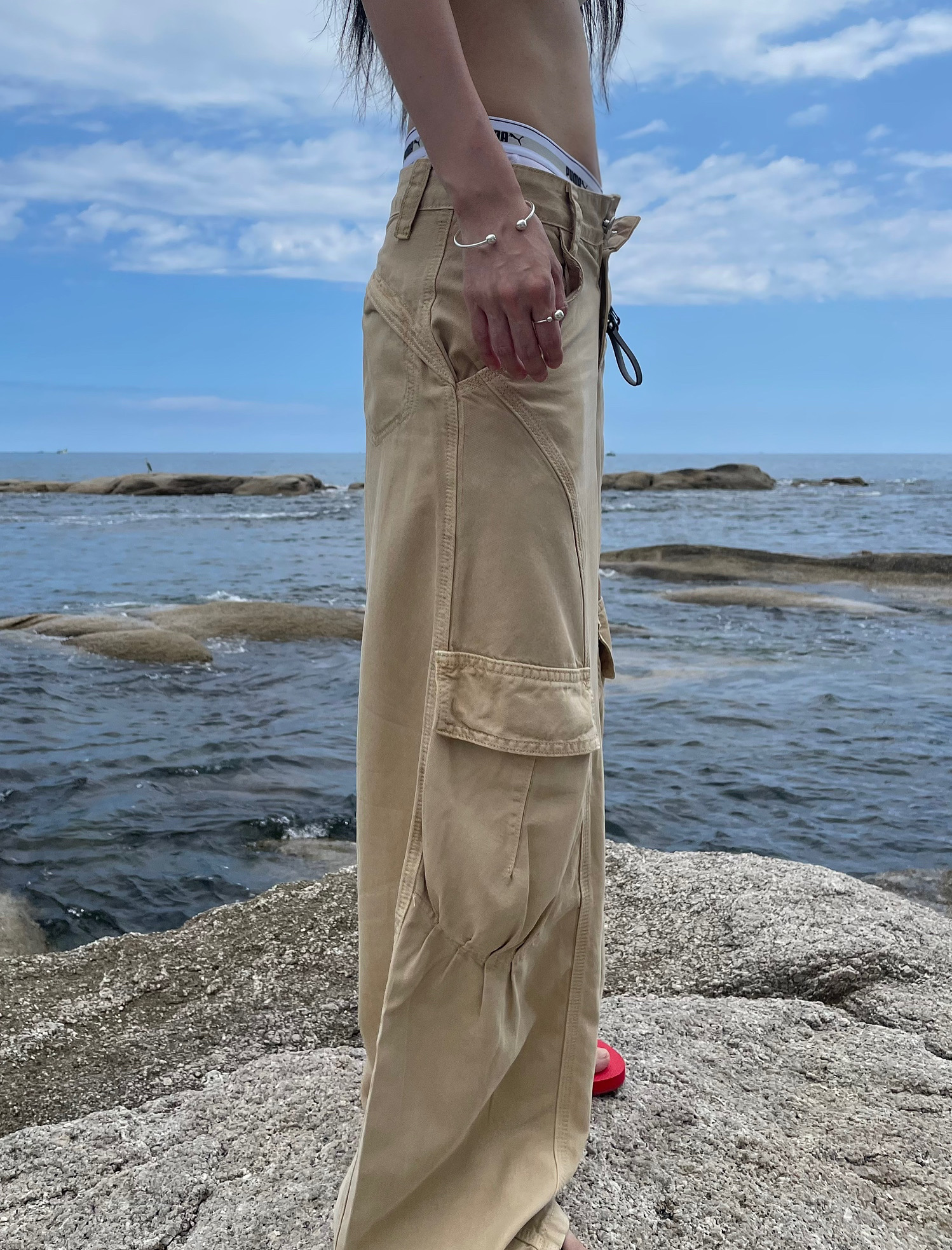 -앞포켓 시크한 셔링 + 뒷면 절개 포인트의 유니크 카고 팬츠