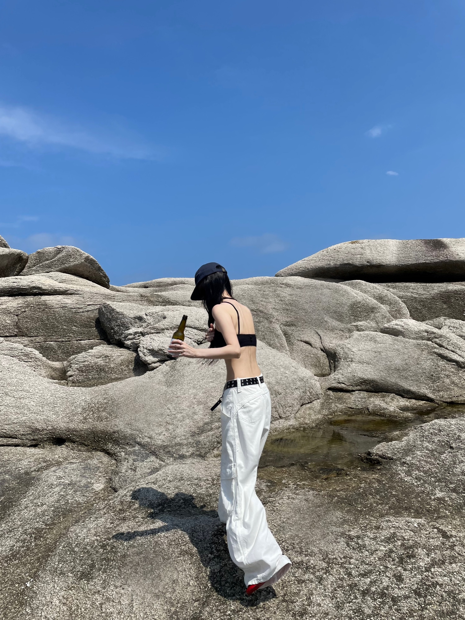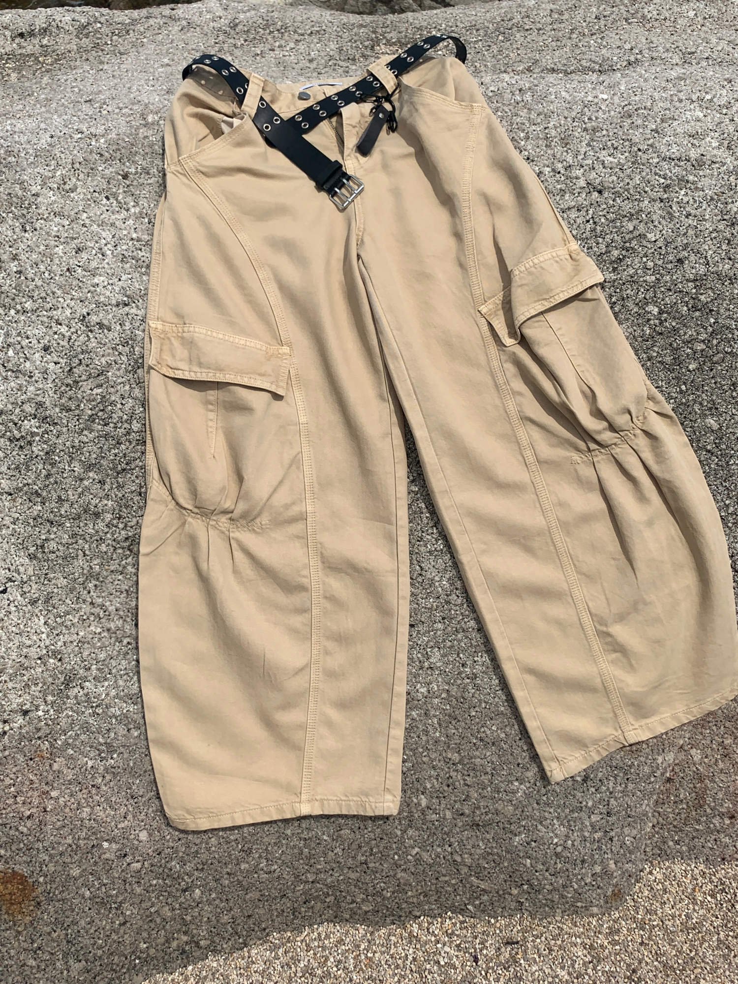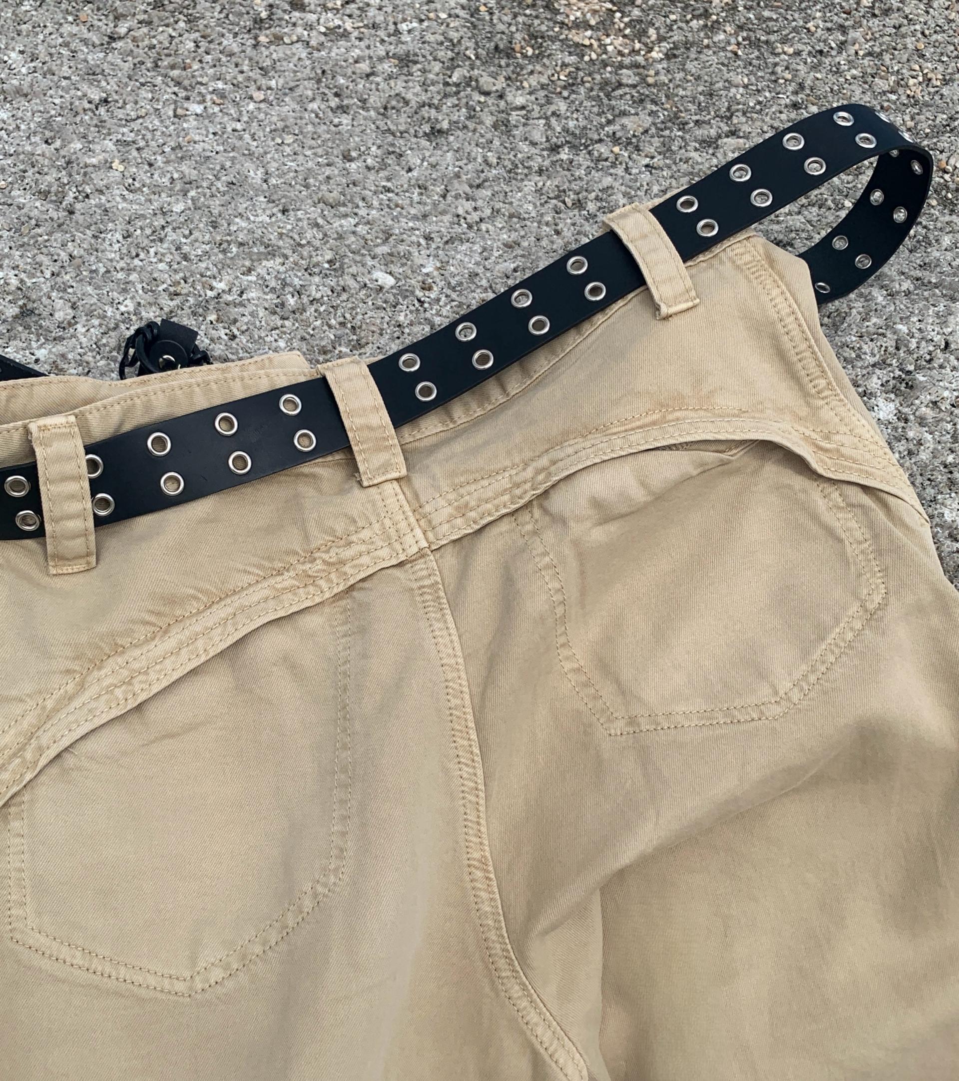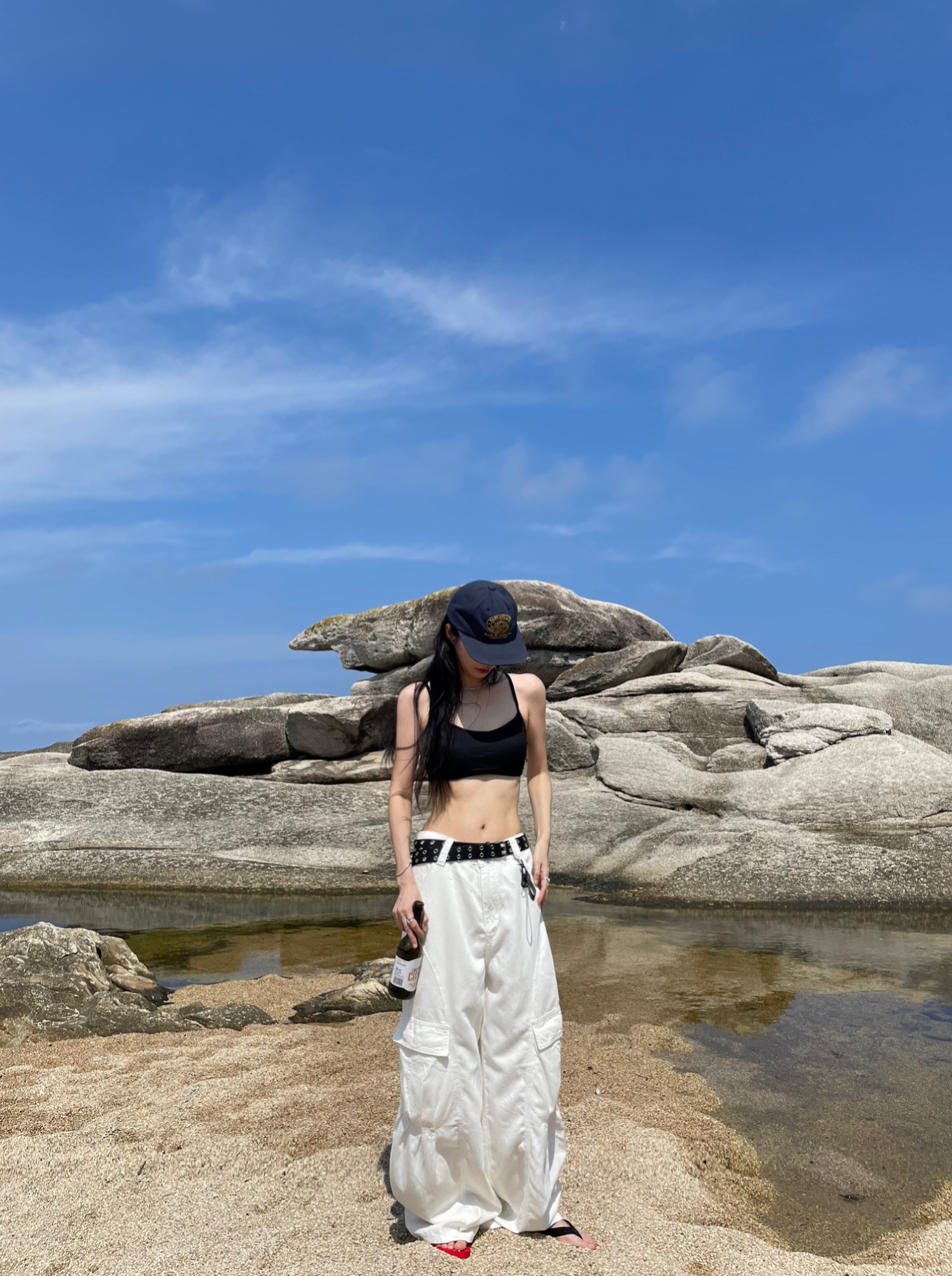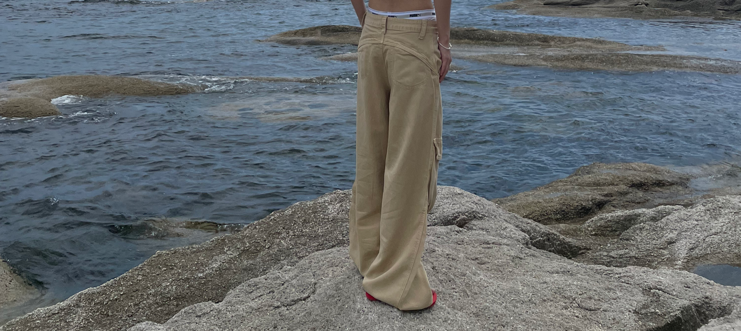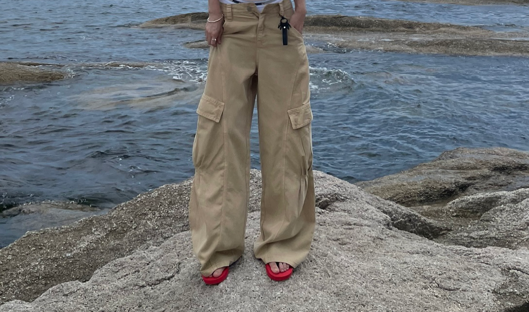 -앞포켓 시크한 셔링 + 뒷면 절개 포인트의 유니크 카고 팬츠