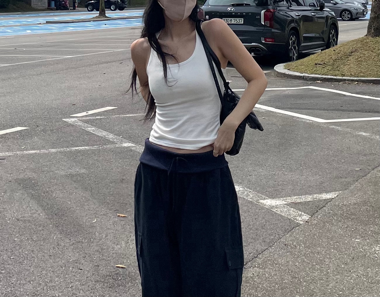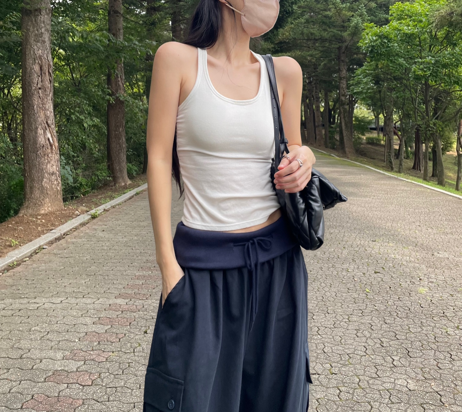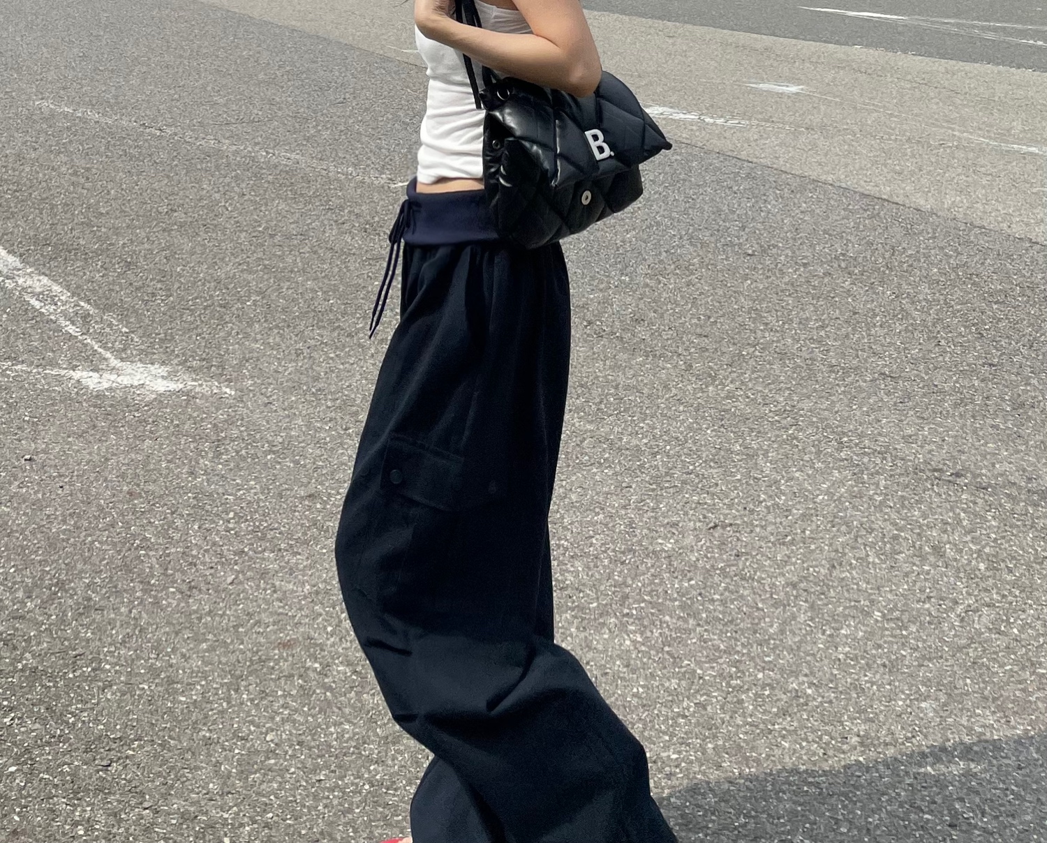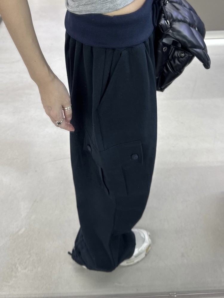- 시크한 웨이스트 시보리 밴딩의 와이드 팬츠