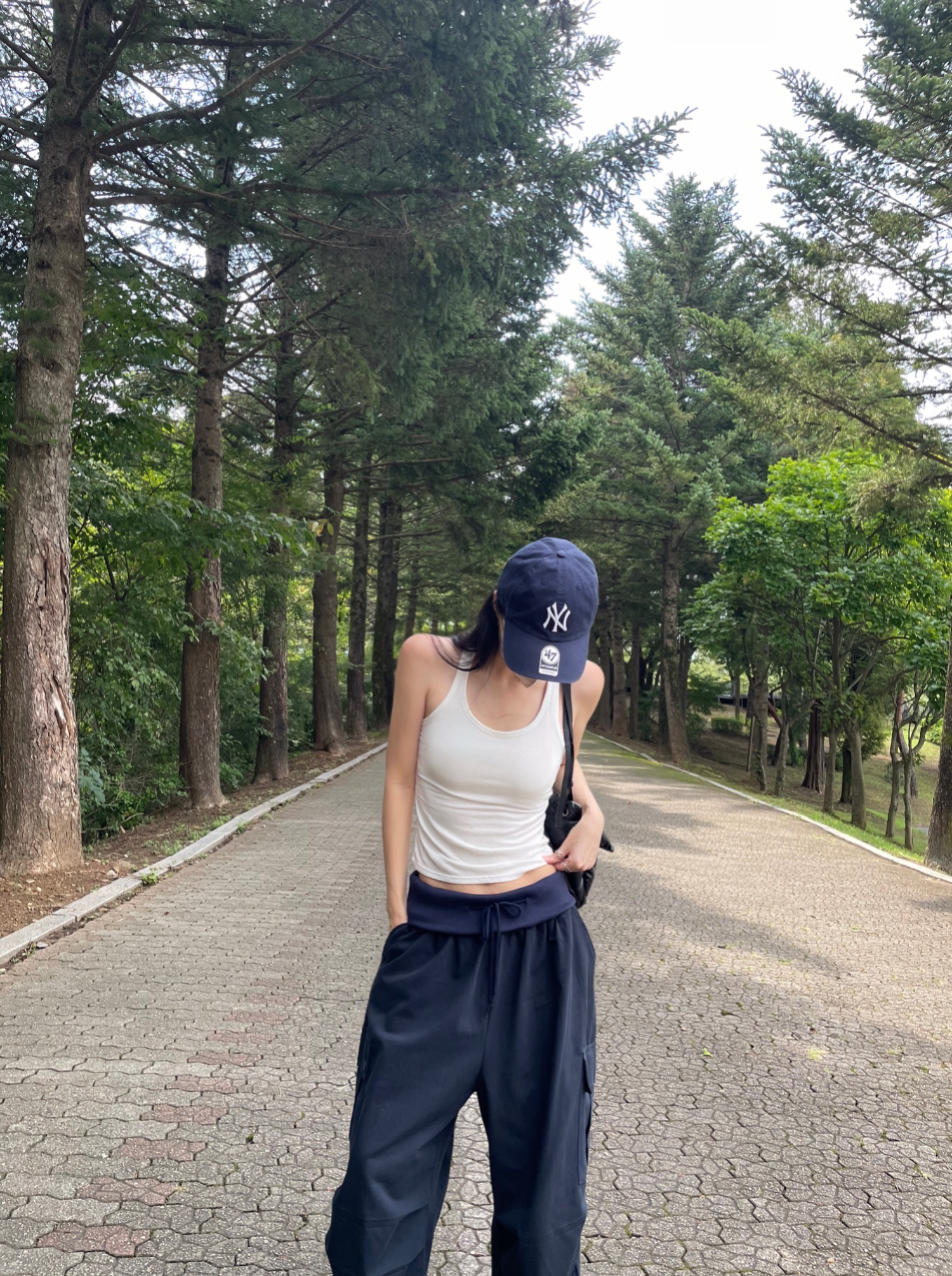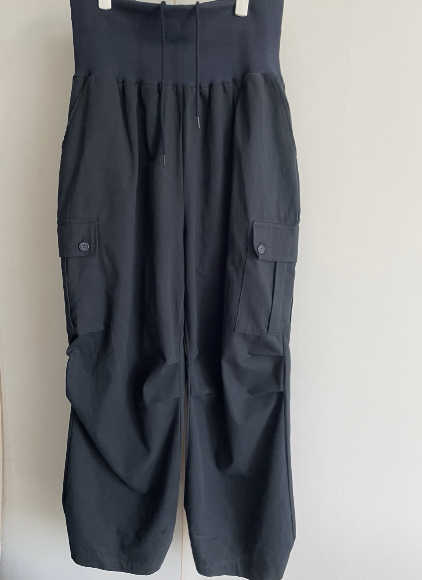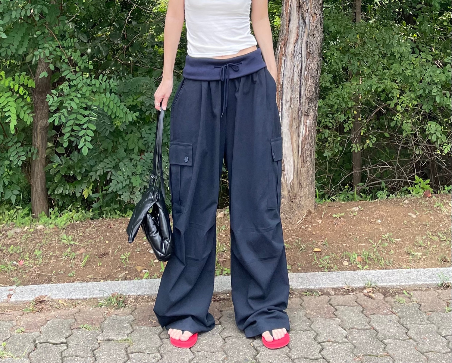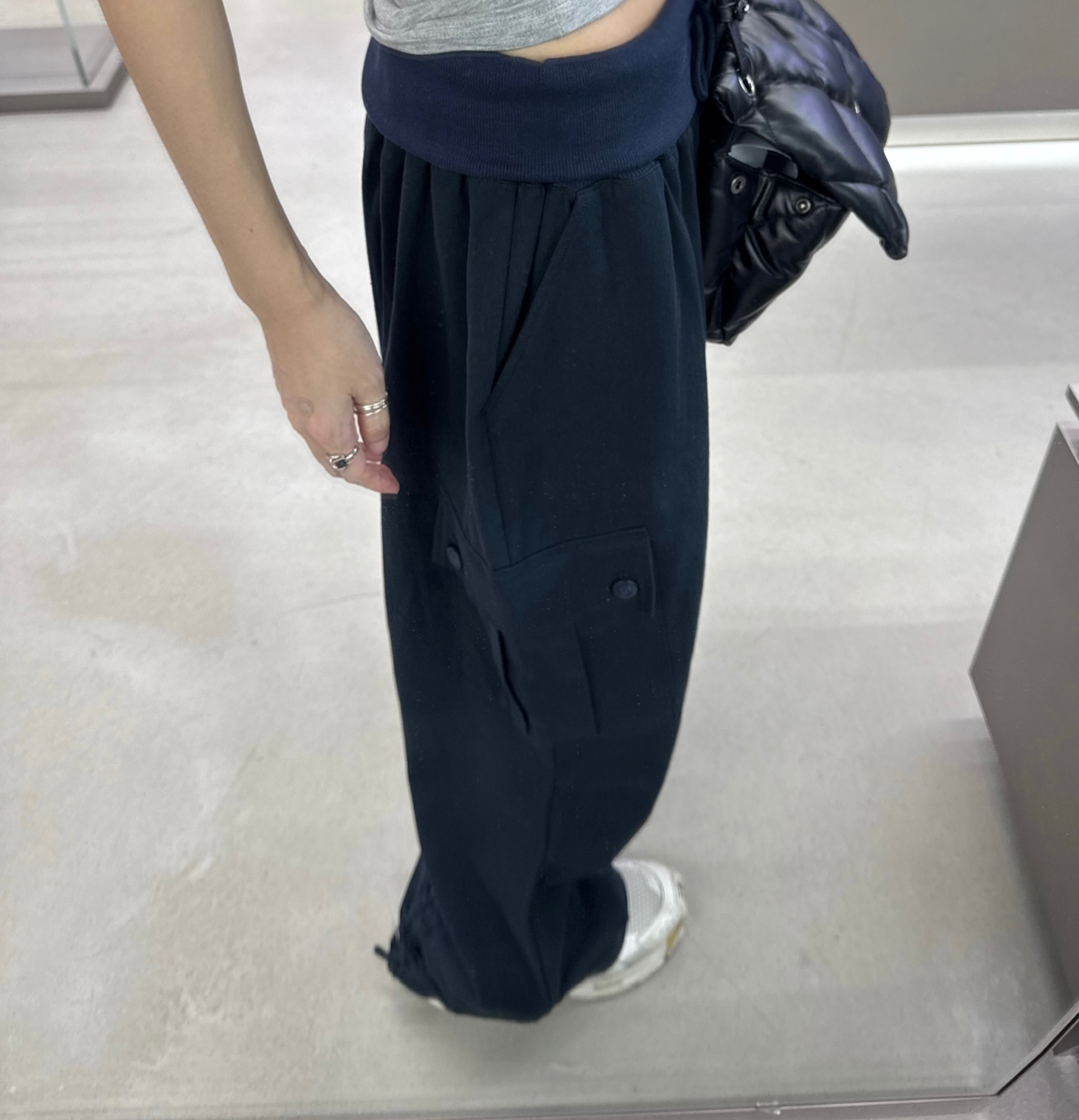 편안하면서도 세련된 무드가 묻어나는 와이드 카고 팬츠입니다. 허리는 시보리 밴딩과 스트링 디테일로 체형에 맞게 조절할 수 있고, 옆선에 자리한 플랩 포켓이 실용성과 디자인 포인트를 동시에 살려줍니다.