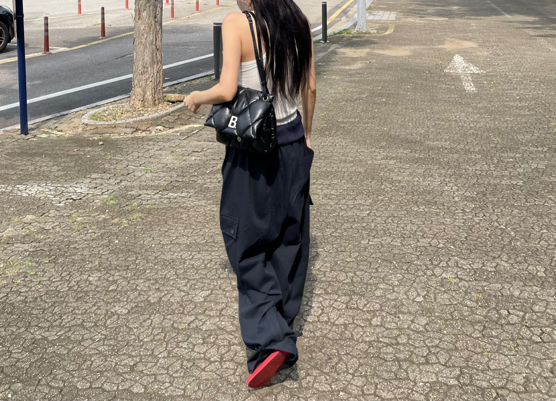 밑단 뒷부분에는 셔링 스트링 디테일이 있어 자연스러운 주름과 볼륨감을 연출하며, 와이드한 핏과 함께 다리 라인을 커버해주어 멋스럽고 트렌디한 실루엣을 완성해 줍니다.
