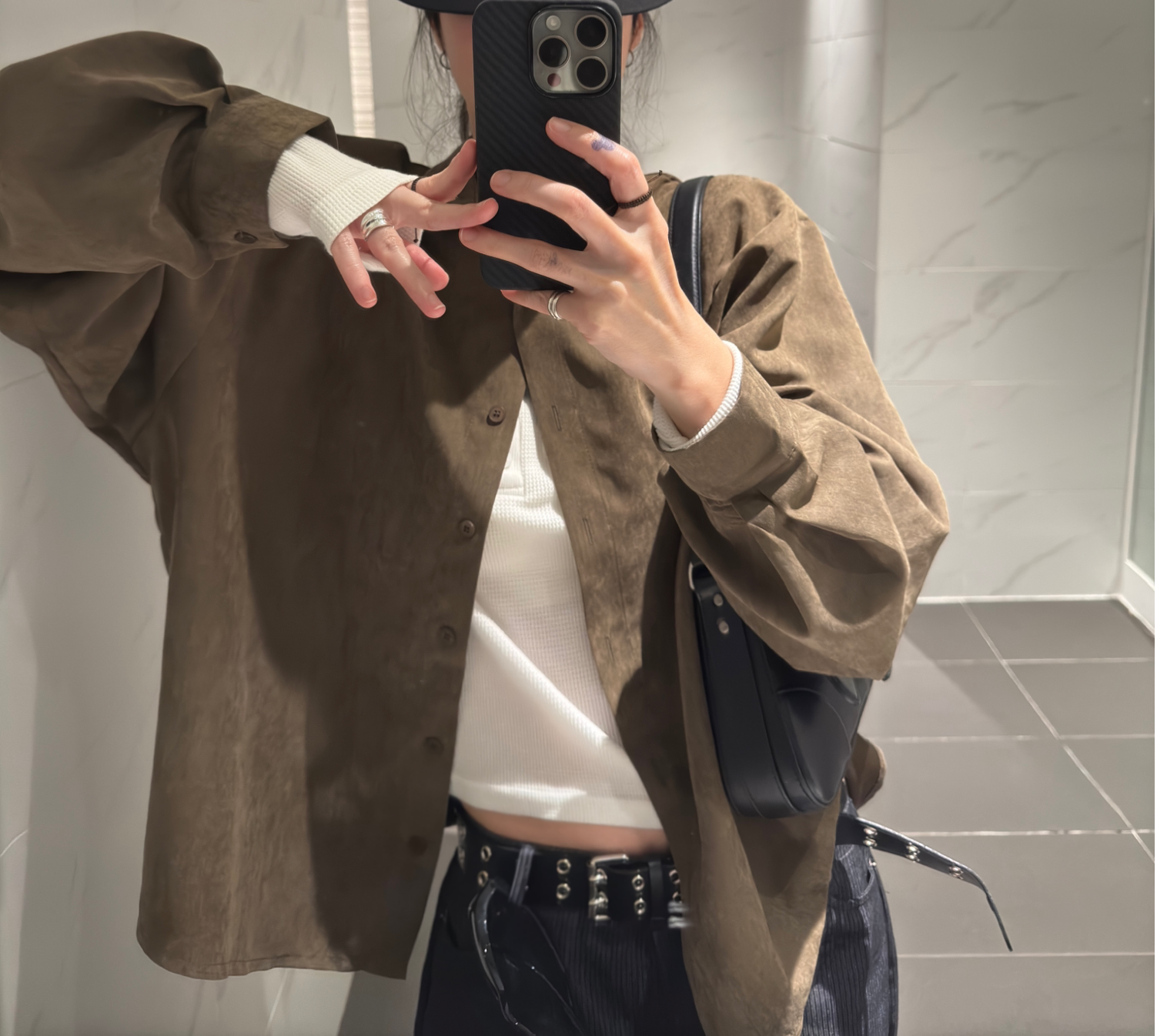 부드럽고 따뜻한 스웨이드 텍스처로 한겨울까지 멋스럽게 즐길 수 있는 스웨이드 셔츠 입니다.