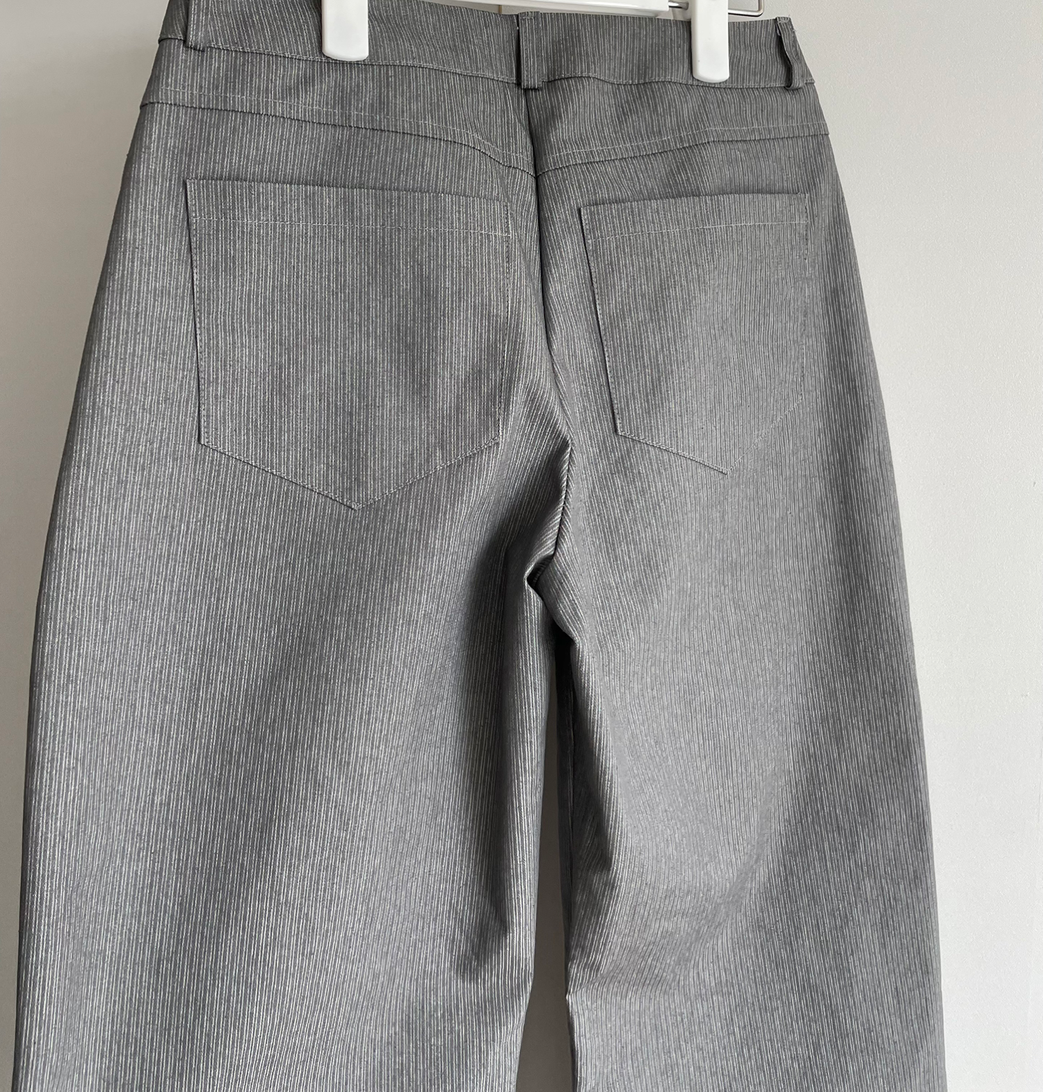 매끈하게 떨어지는 스트레이트 핏에 은은한 세로 스트라이프가 더해져 다리가 길어 보이고 한층 슬림한 인상을 주는 팬츠입니다.