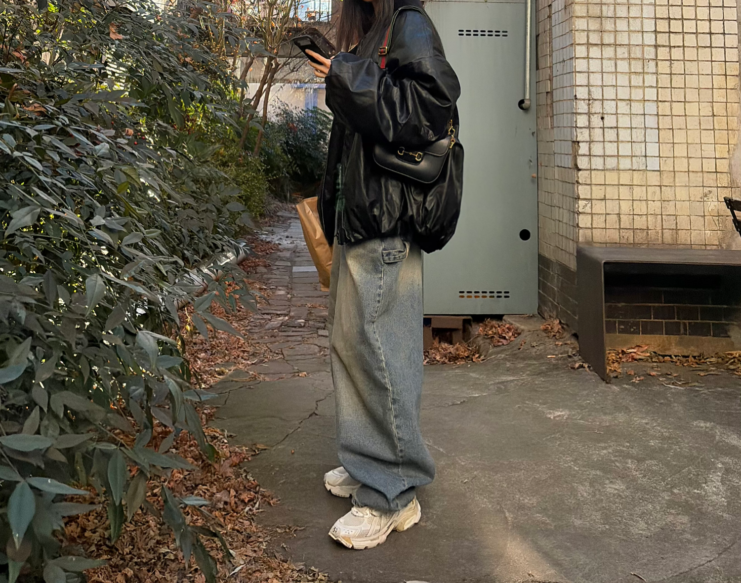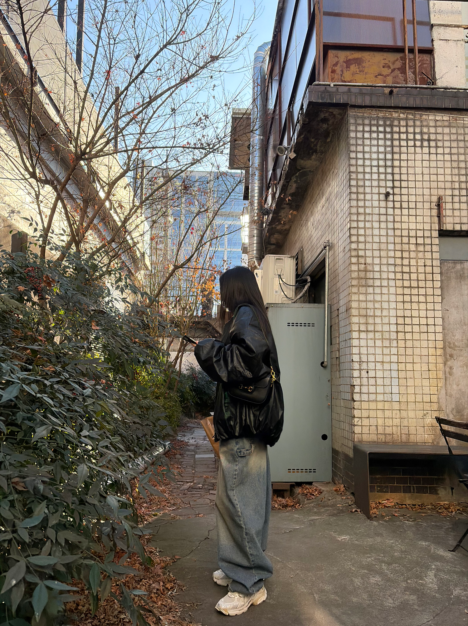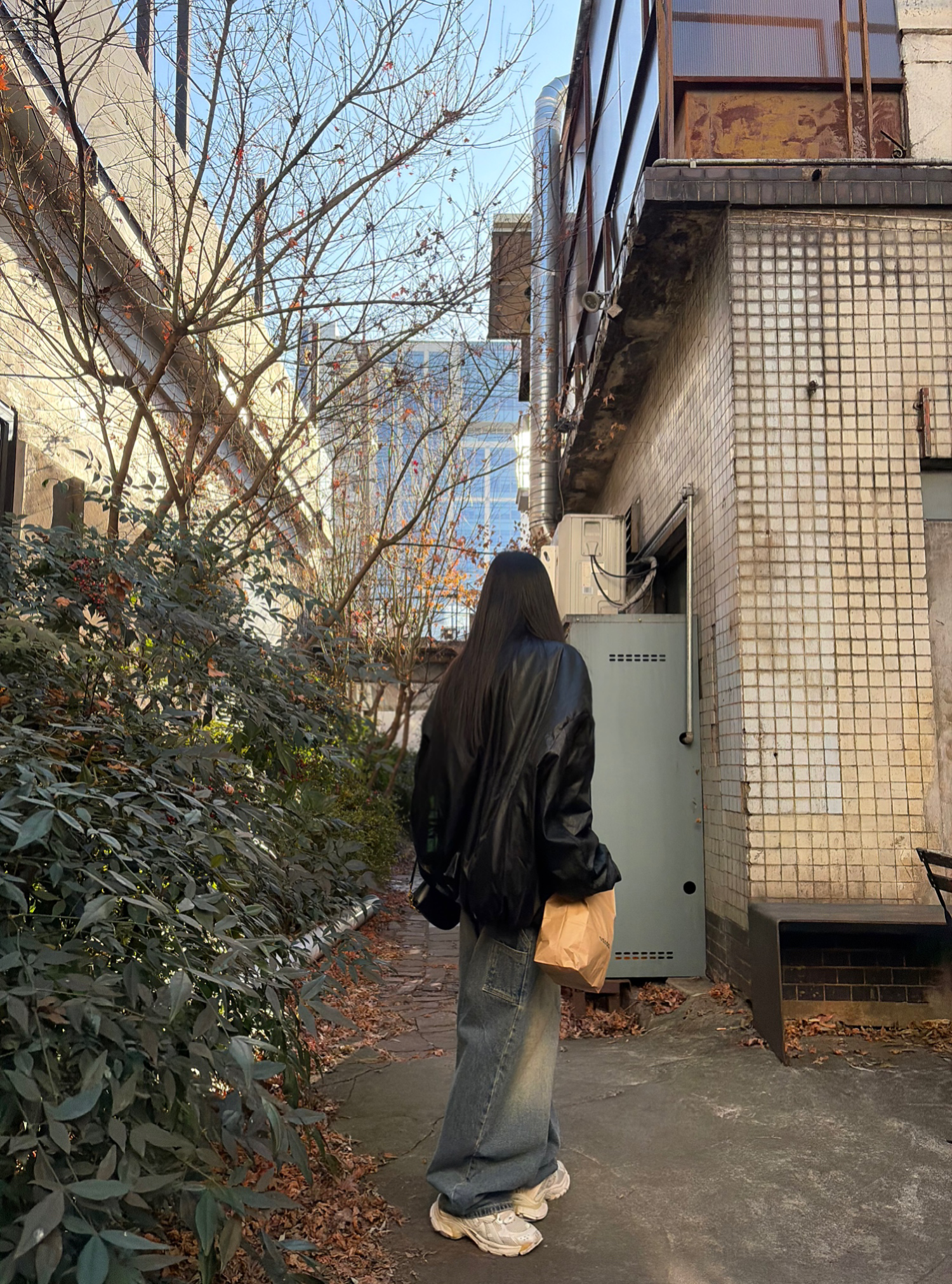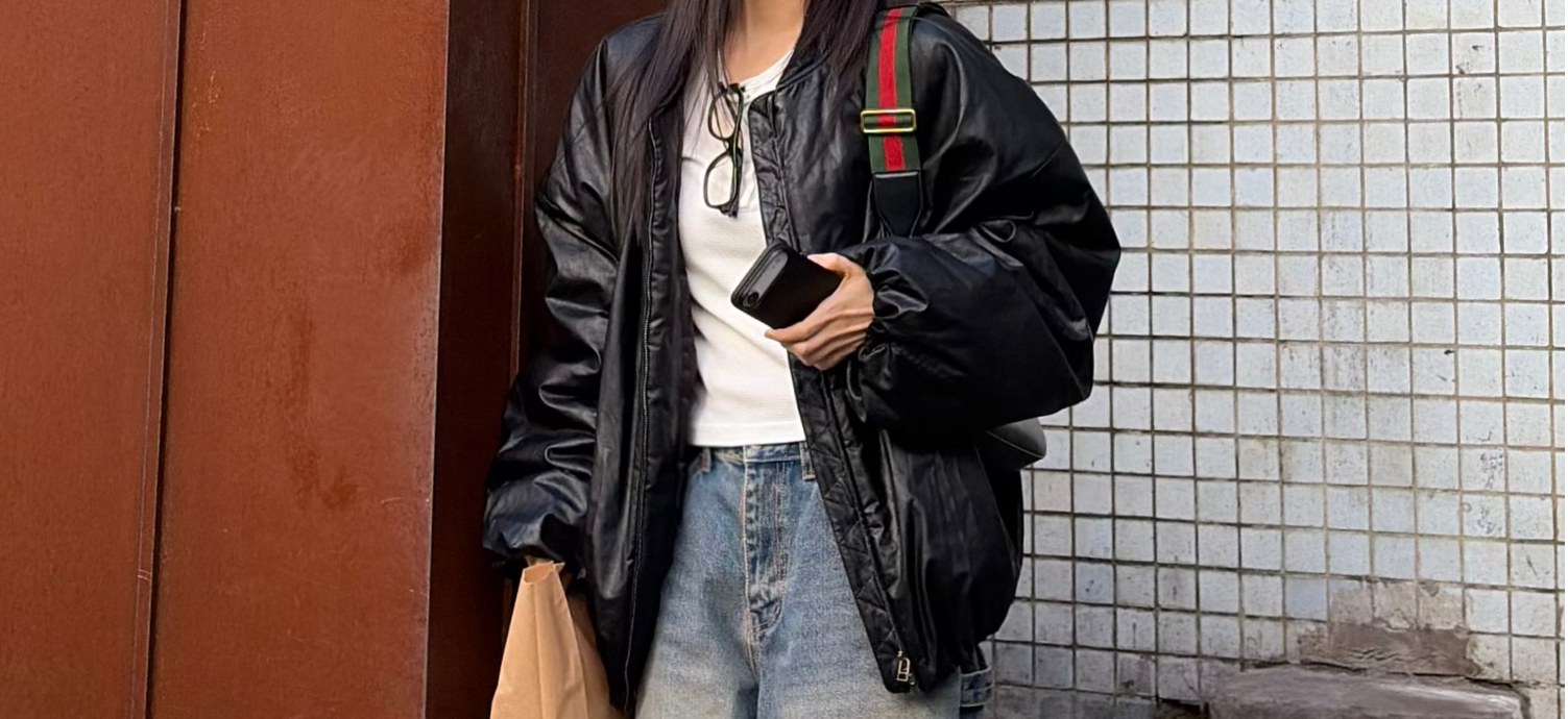 매력적인 레더 텍스처에 오버핏 실루엣을 더한 보머 스타일의 레더 패딩입니다. 무심한 듯 툭 떨어지는 숄더 라인과 루즈한 소매로 여유로운 무드를 연출합니다.