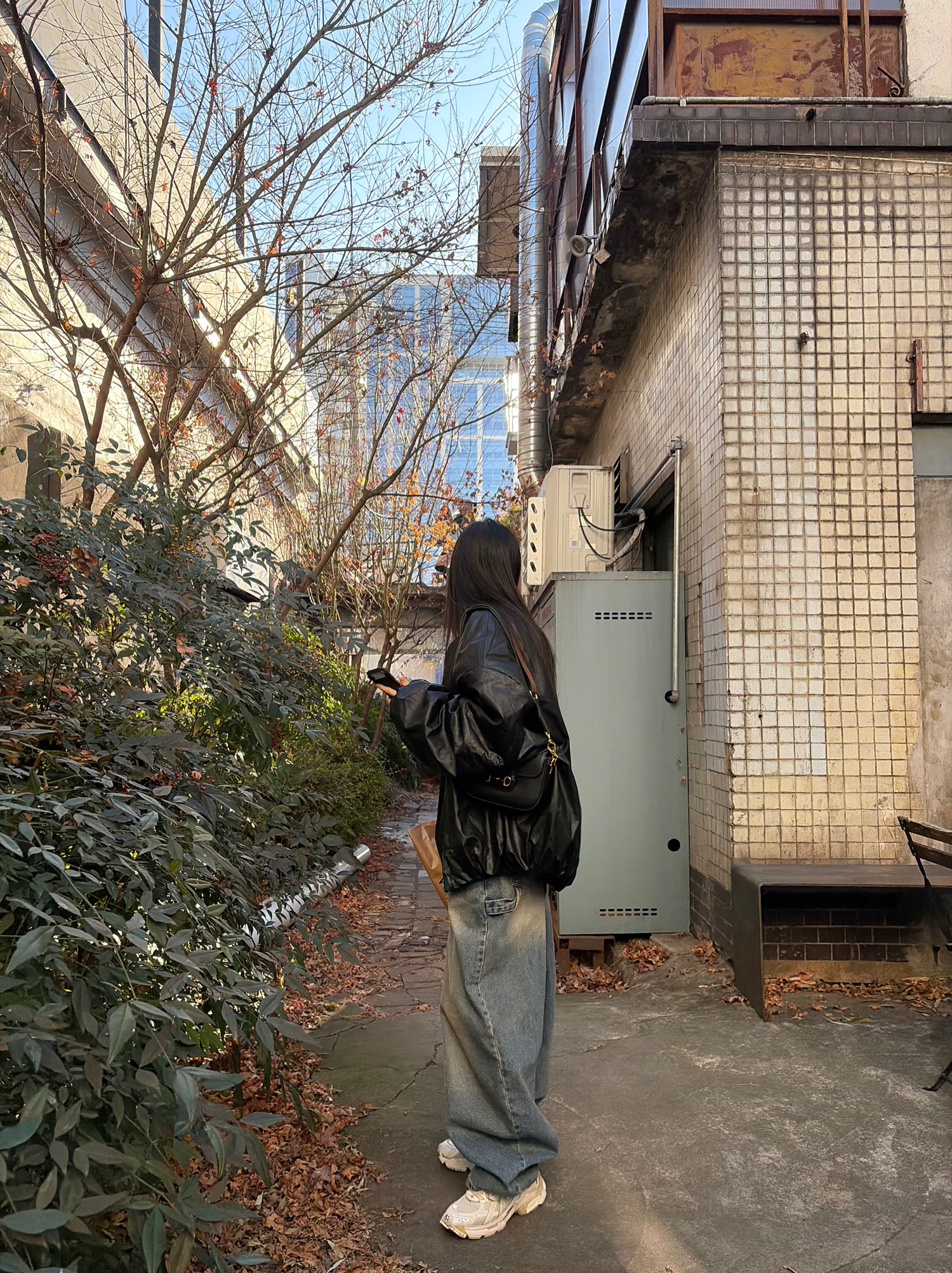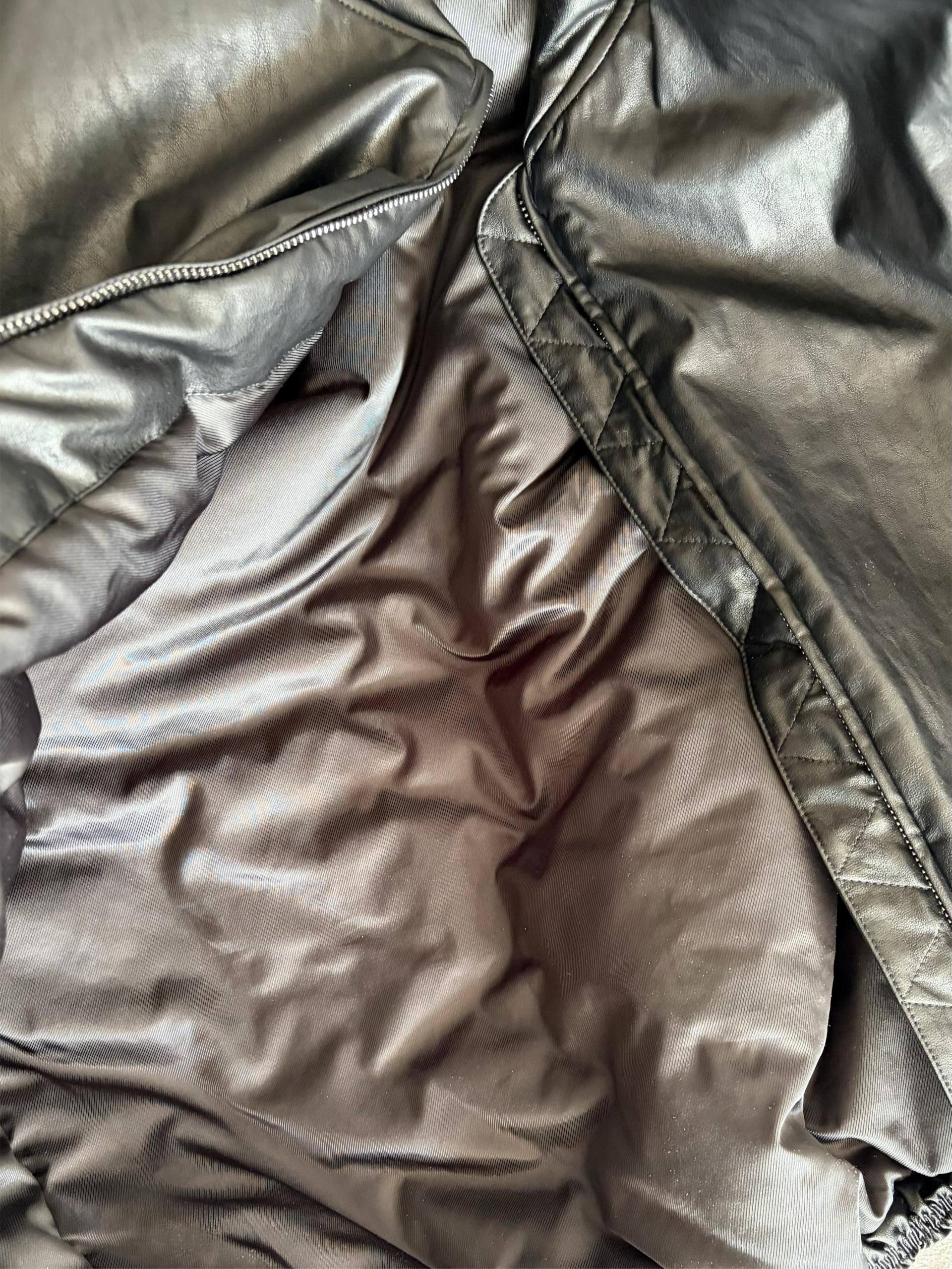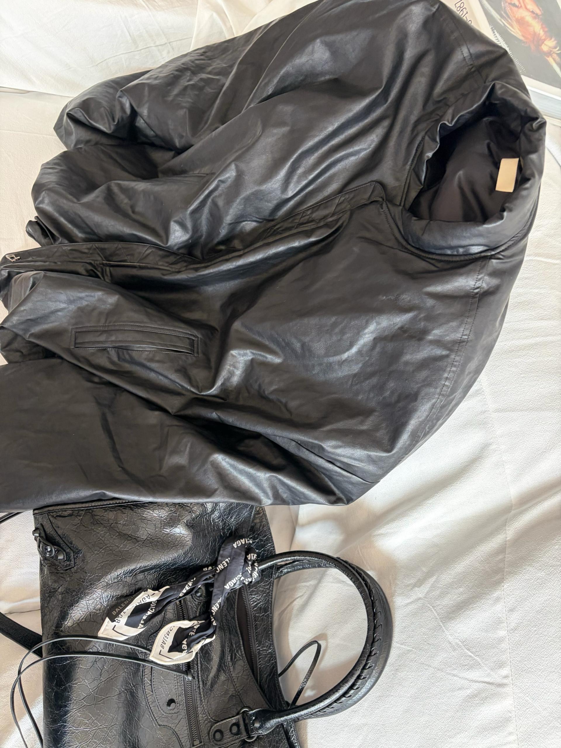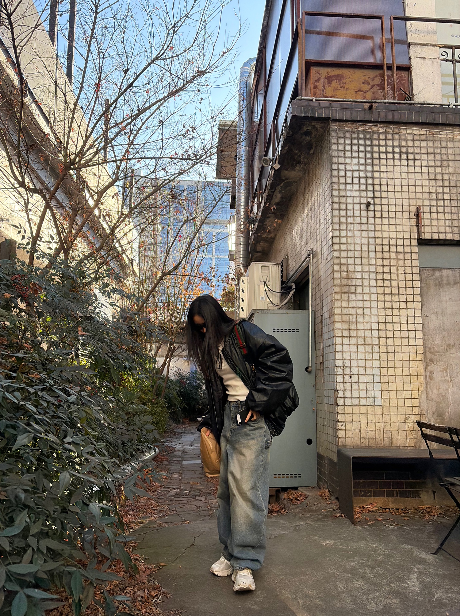 매력적인 레더 텍스처에 오버핏 실루엣을 더한 보머 스타일의 레더 패딩입니다. 무심한 듯 툭 떨어지는 숄더 라인과 루즈한 소매로 여유로운 무드를 연출합니다.