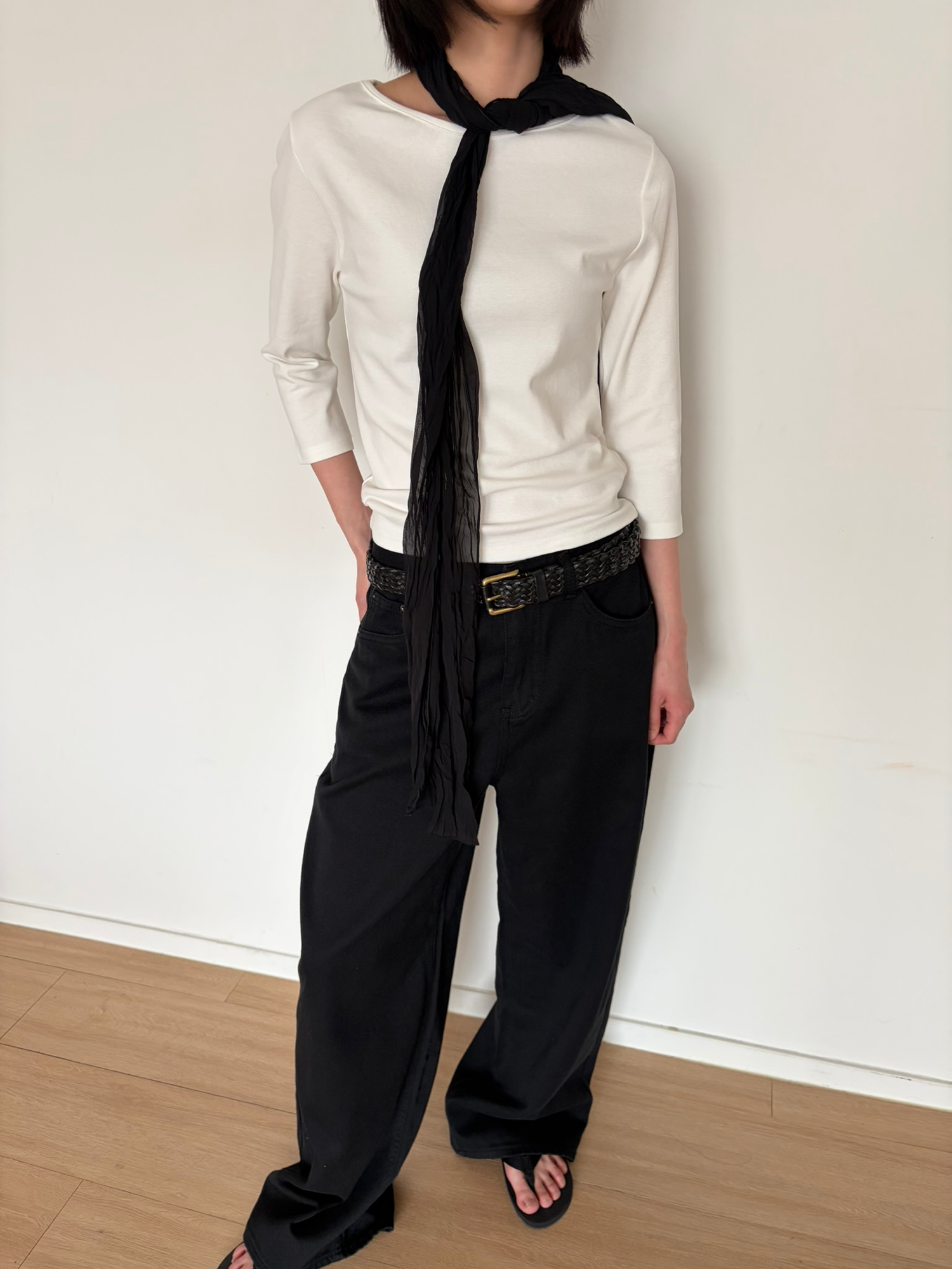 - 가볍고 얇은 쉬어 원단으로 은은한 비침이 매력적인 스카프