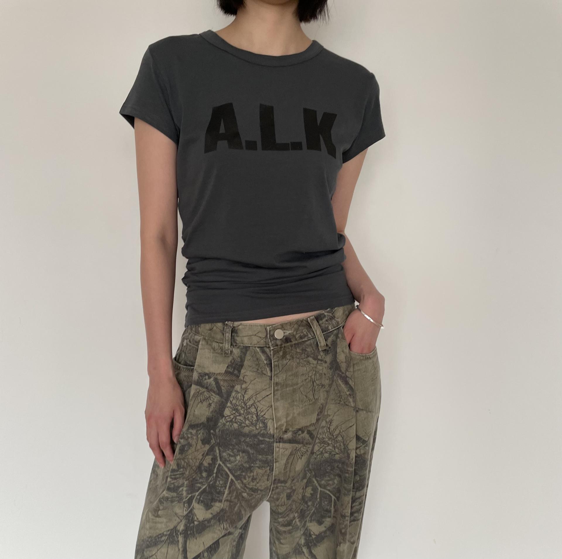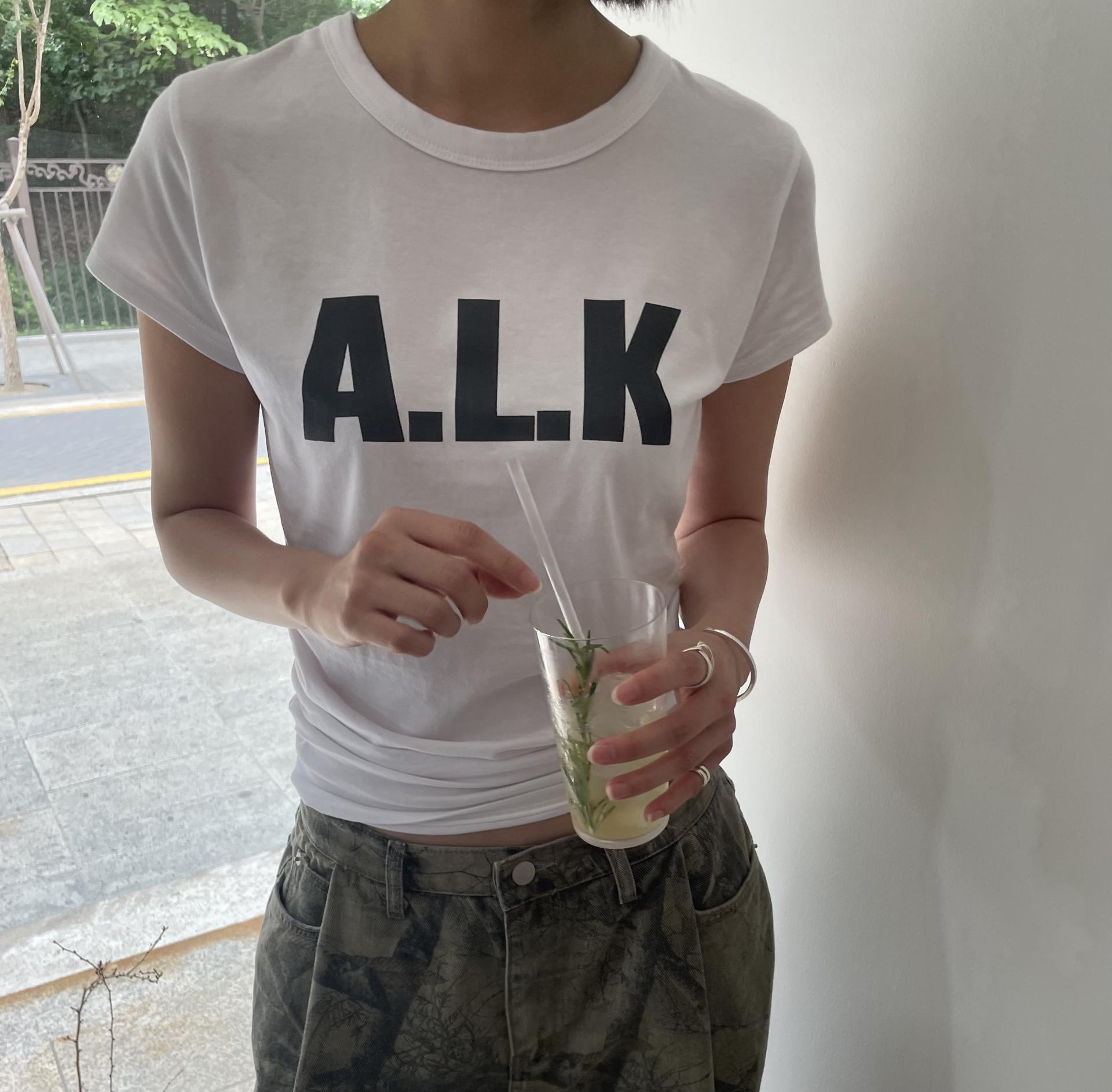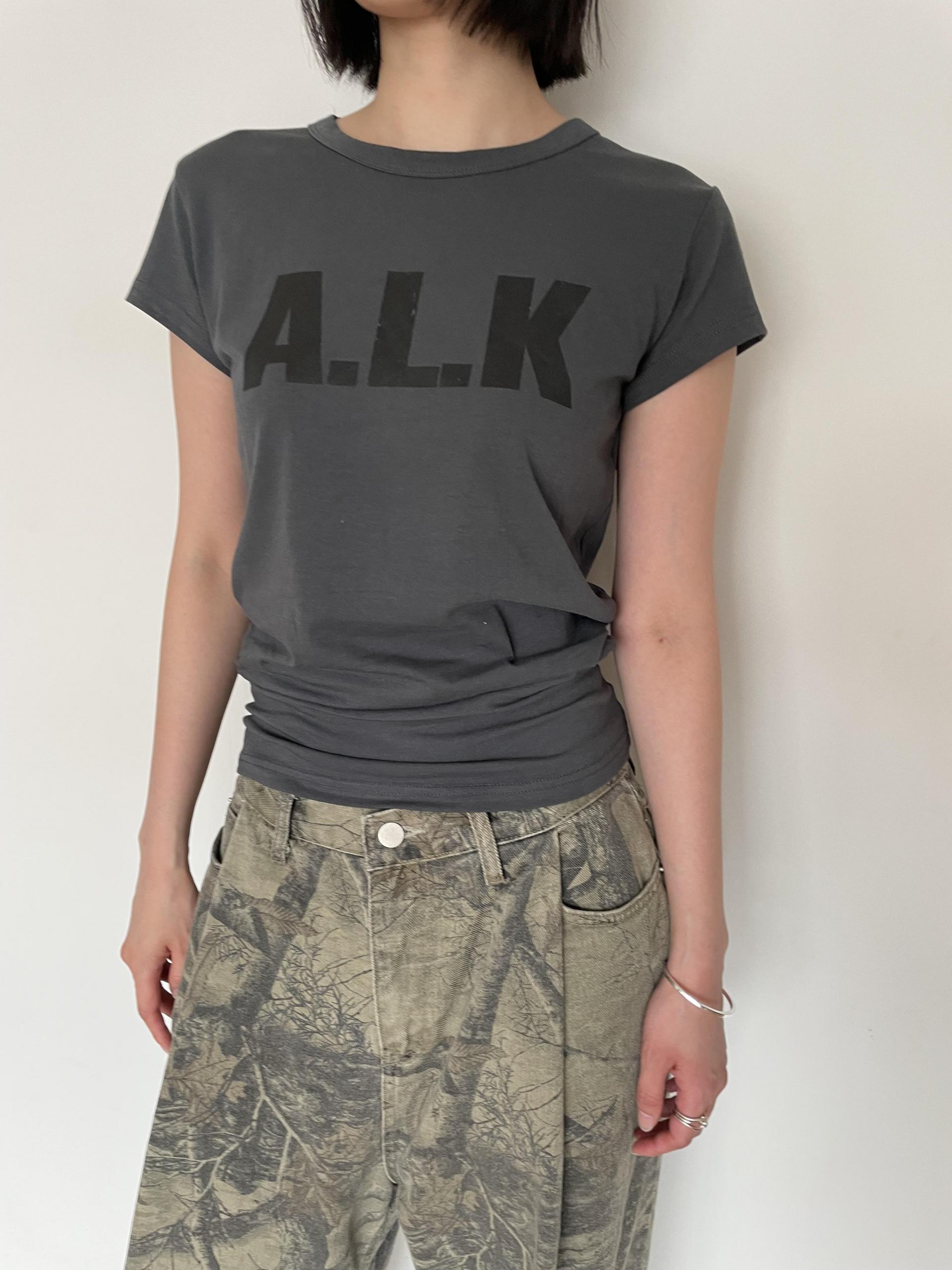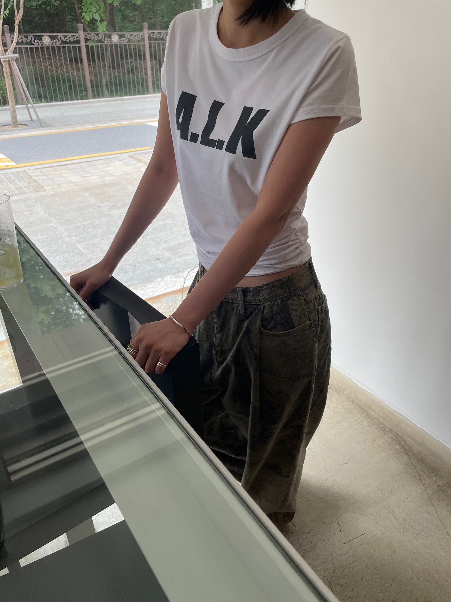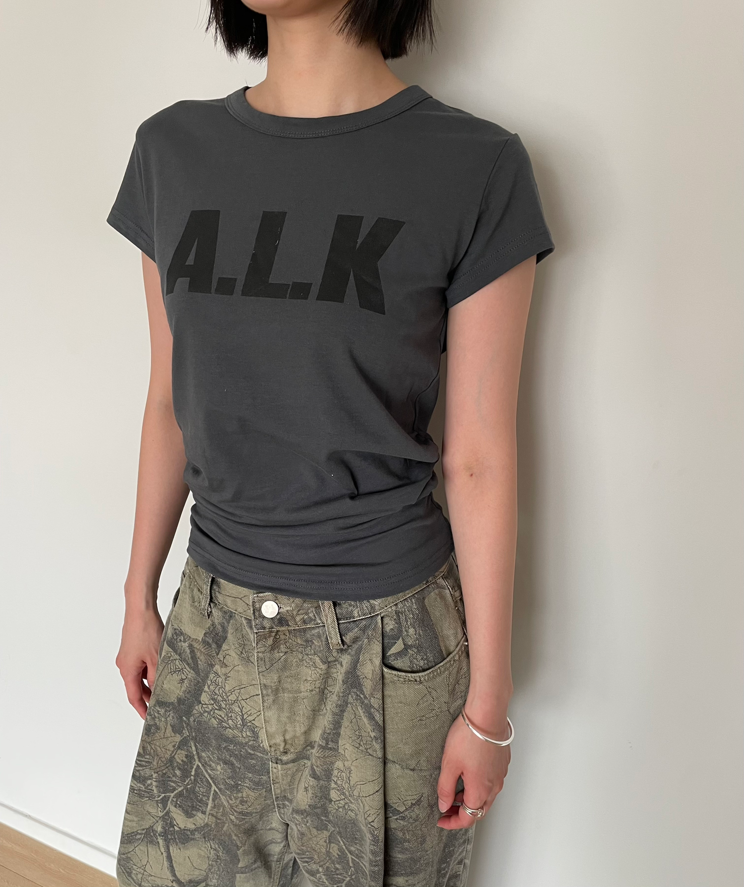 큼직한 A.L.K 레터링과 허리부분 셔링이 포인트인 심플 코튼 티셔츠 입니다.