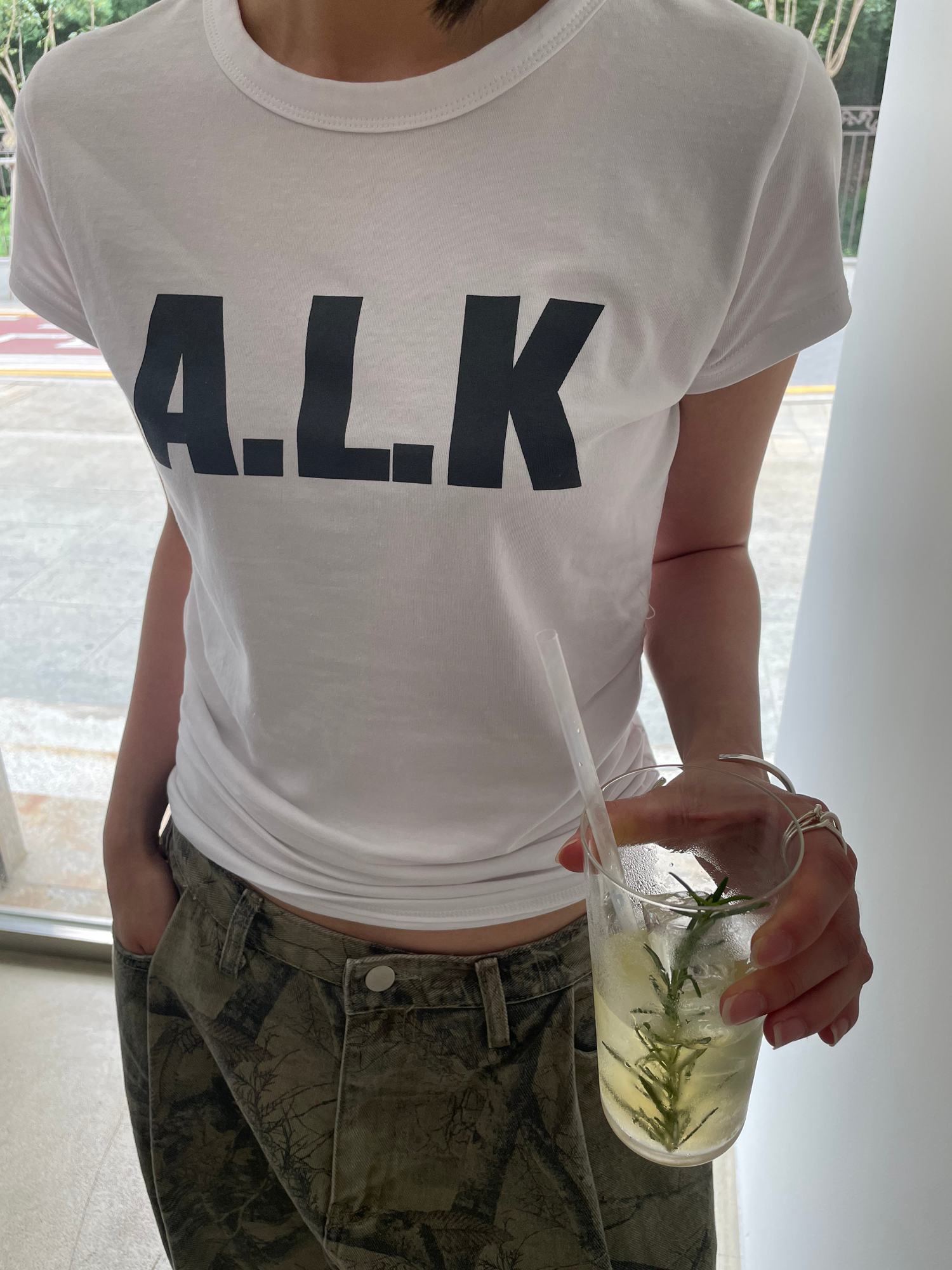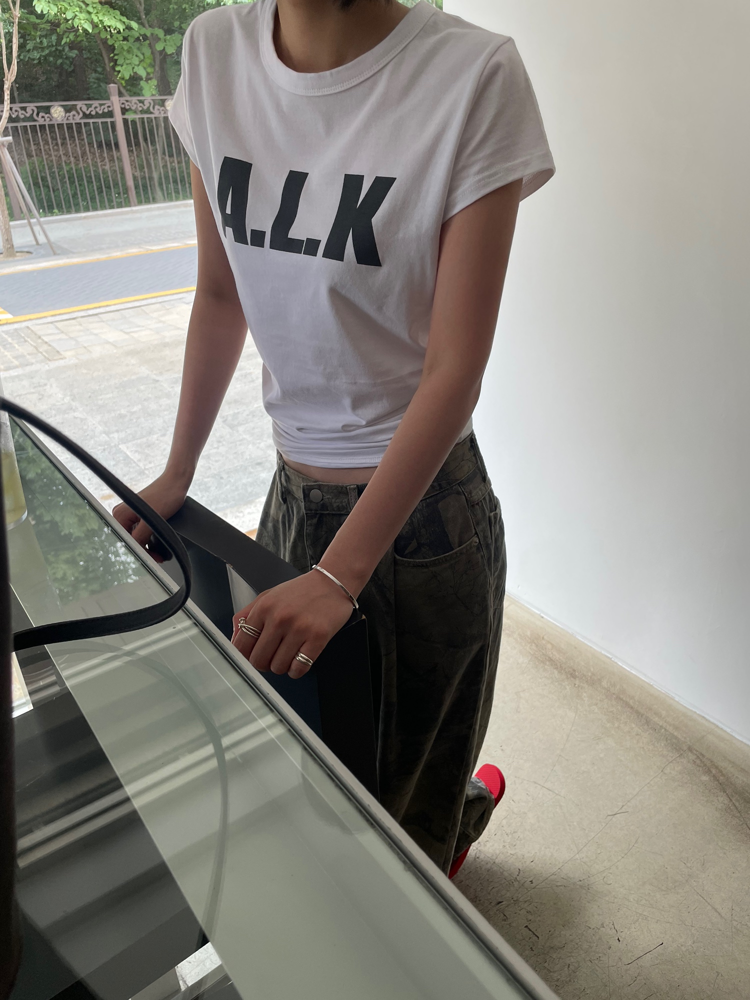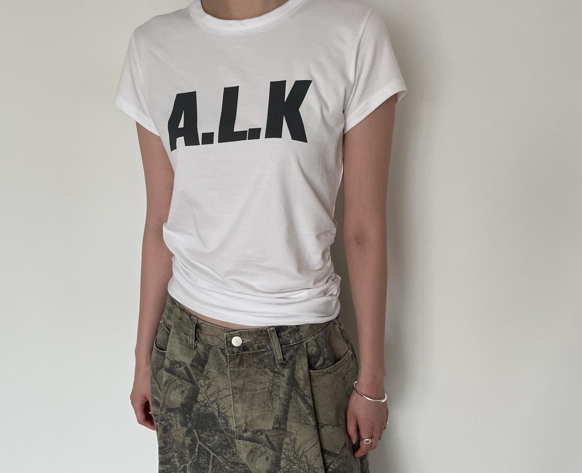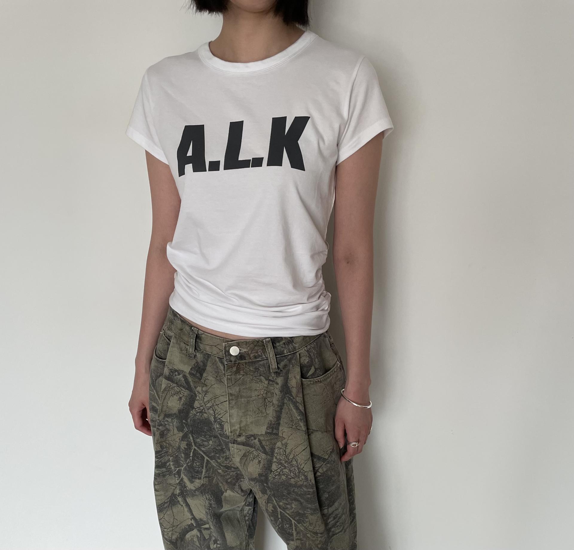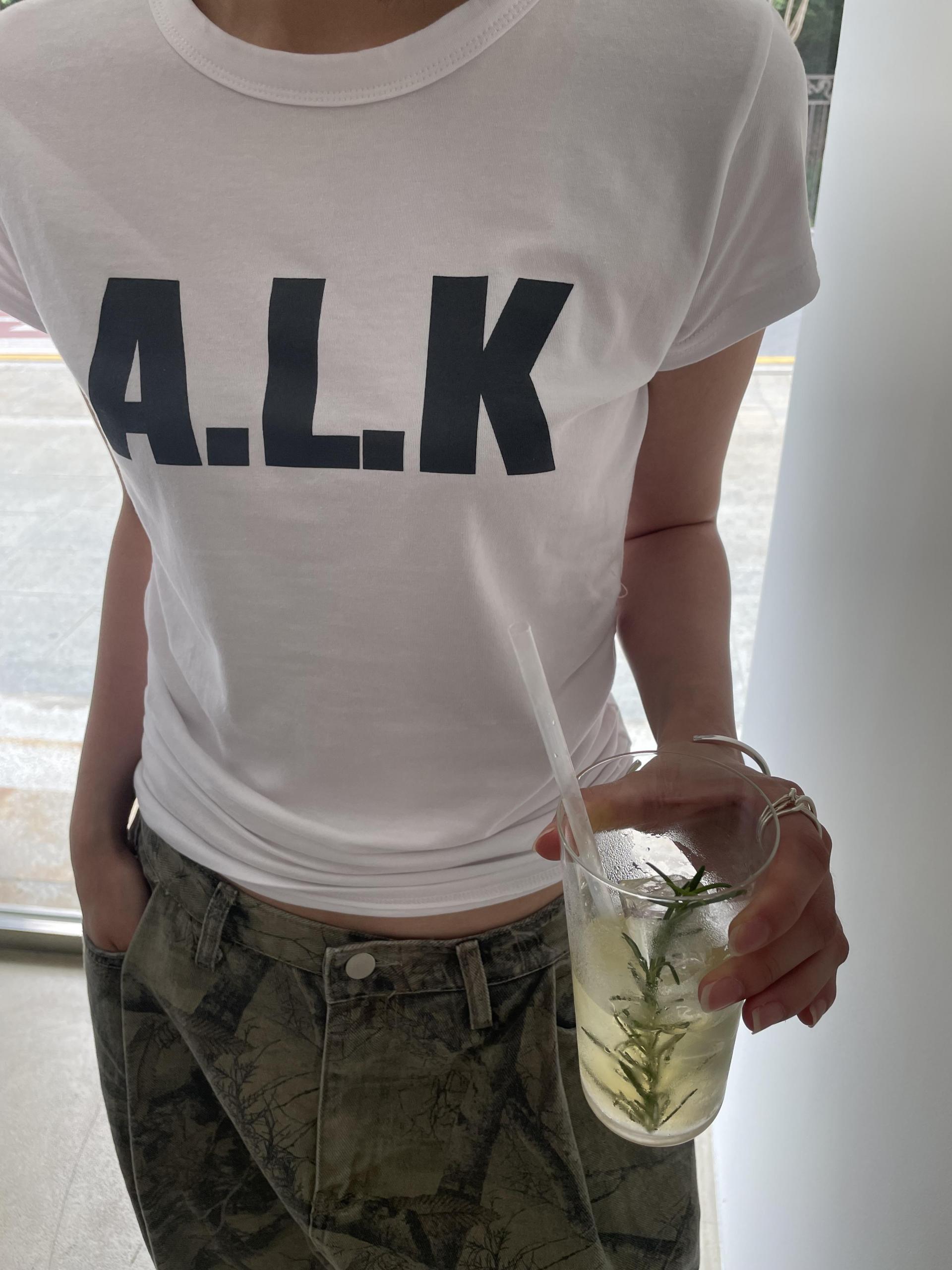 큼직한 A.L.K 레터링과 허리부분 셔링이 포인트인 심플 코튼 티셔츠 입니다.