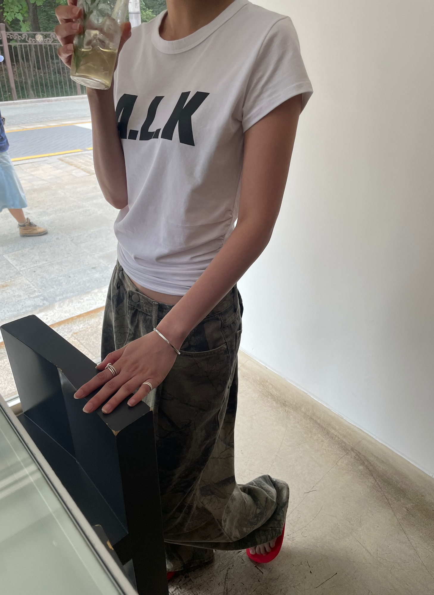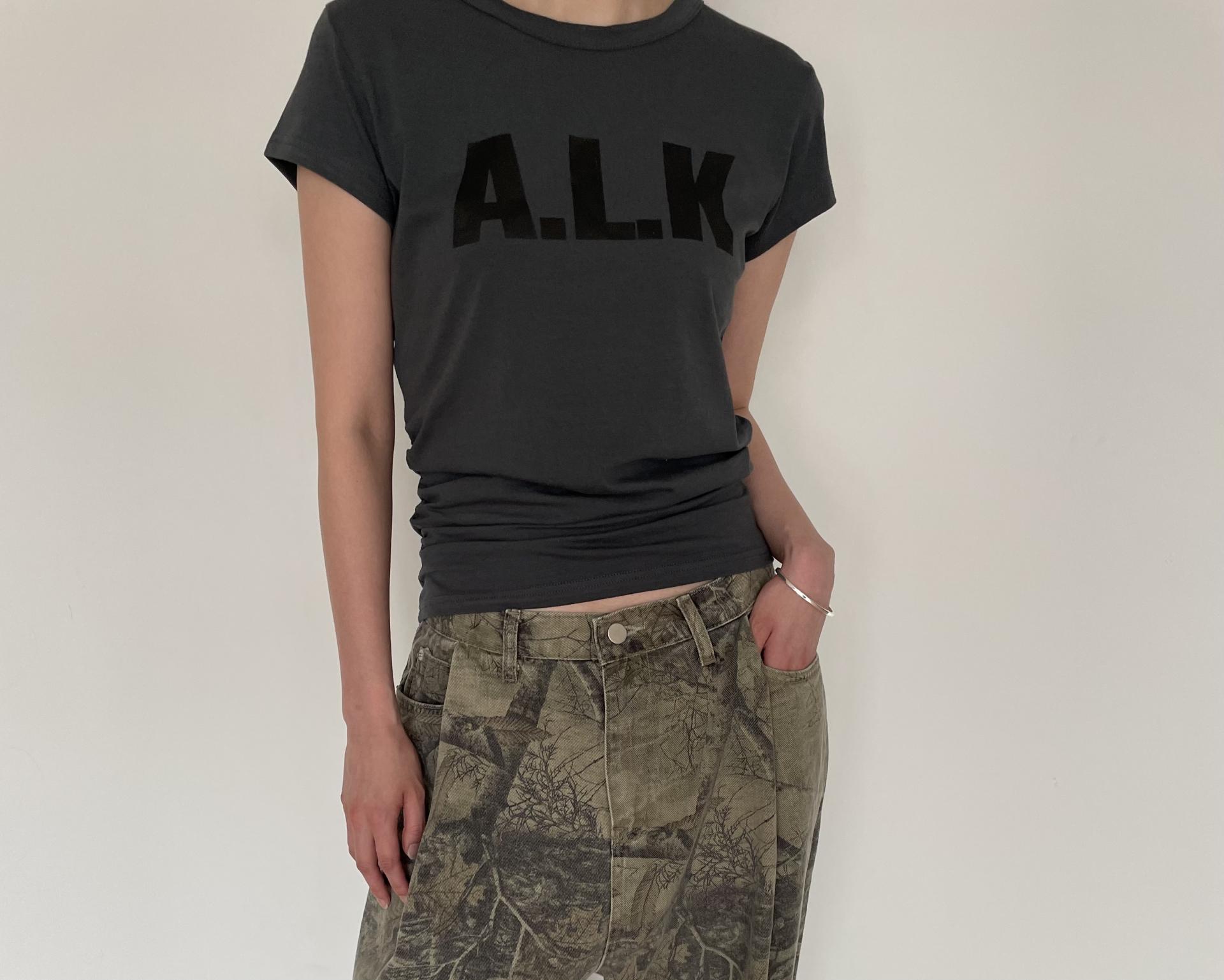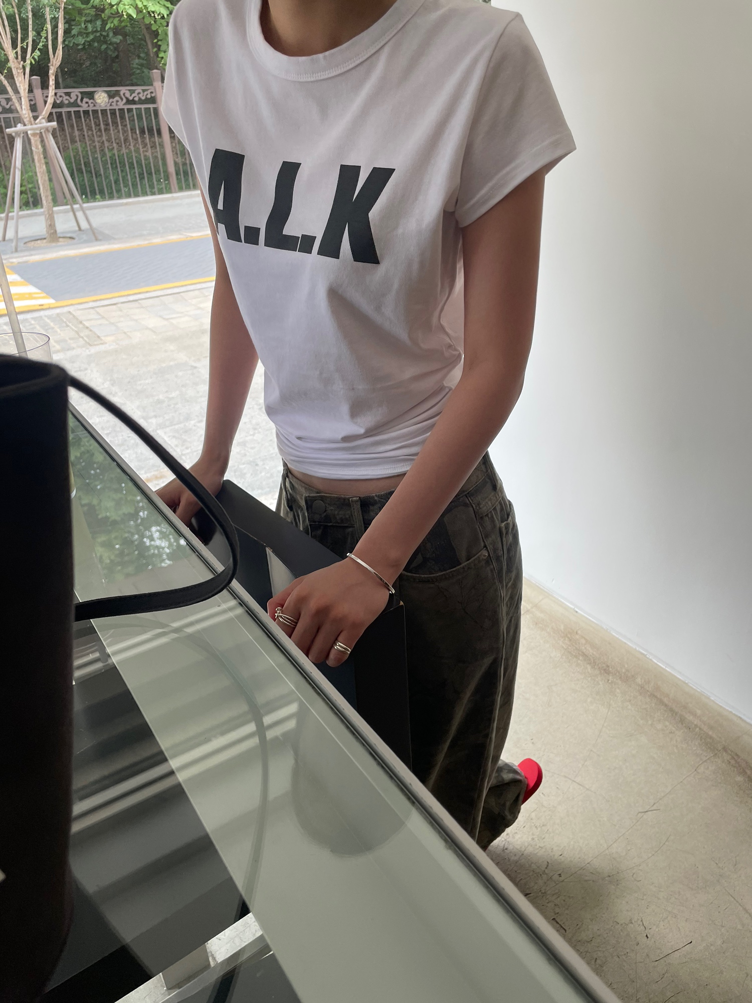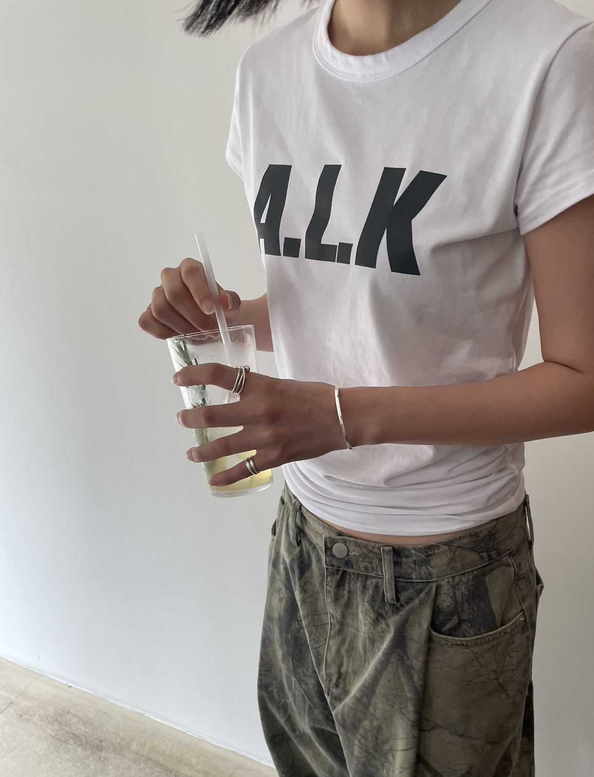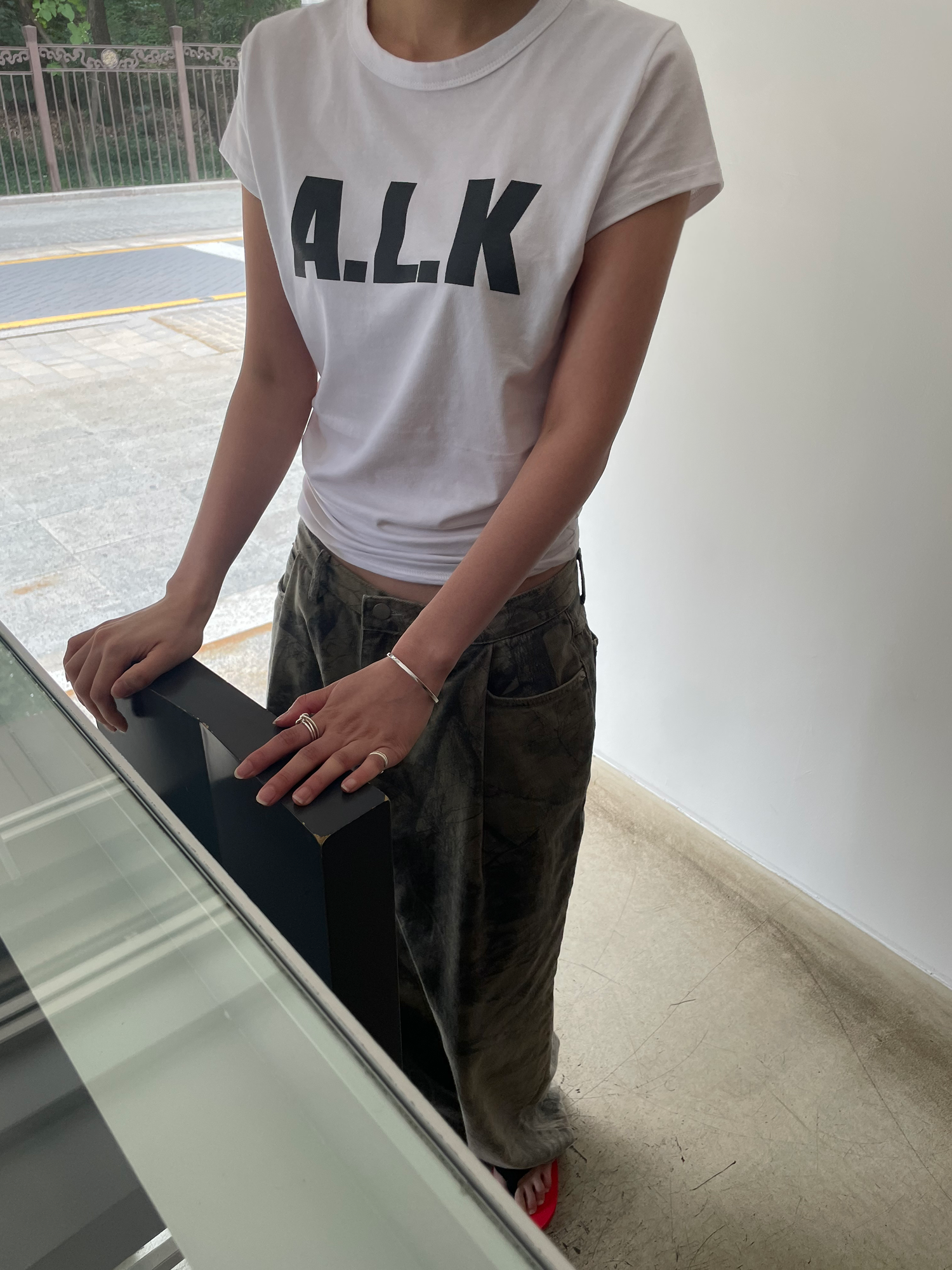 큼직한 A.L.K 레터링과 허리부분 셔링이 포인트인 심플 코튼 티셔츠 입니다.
