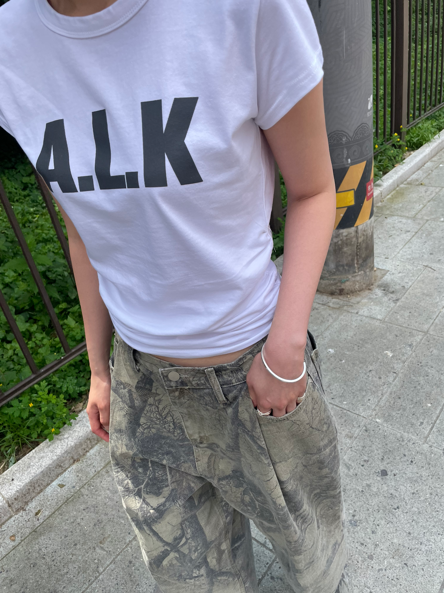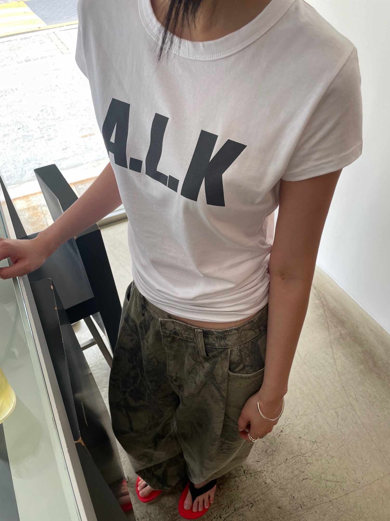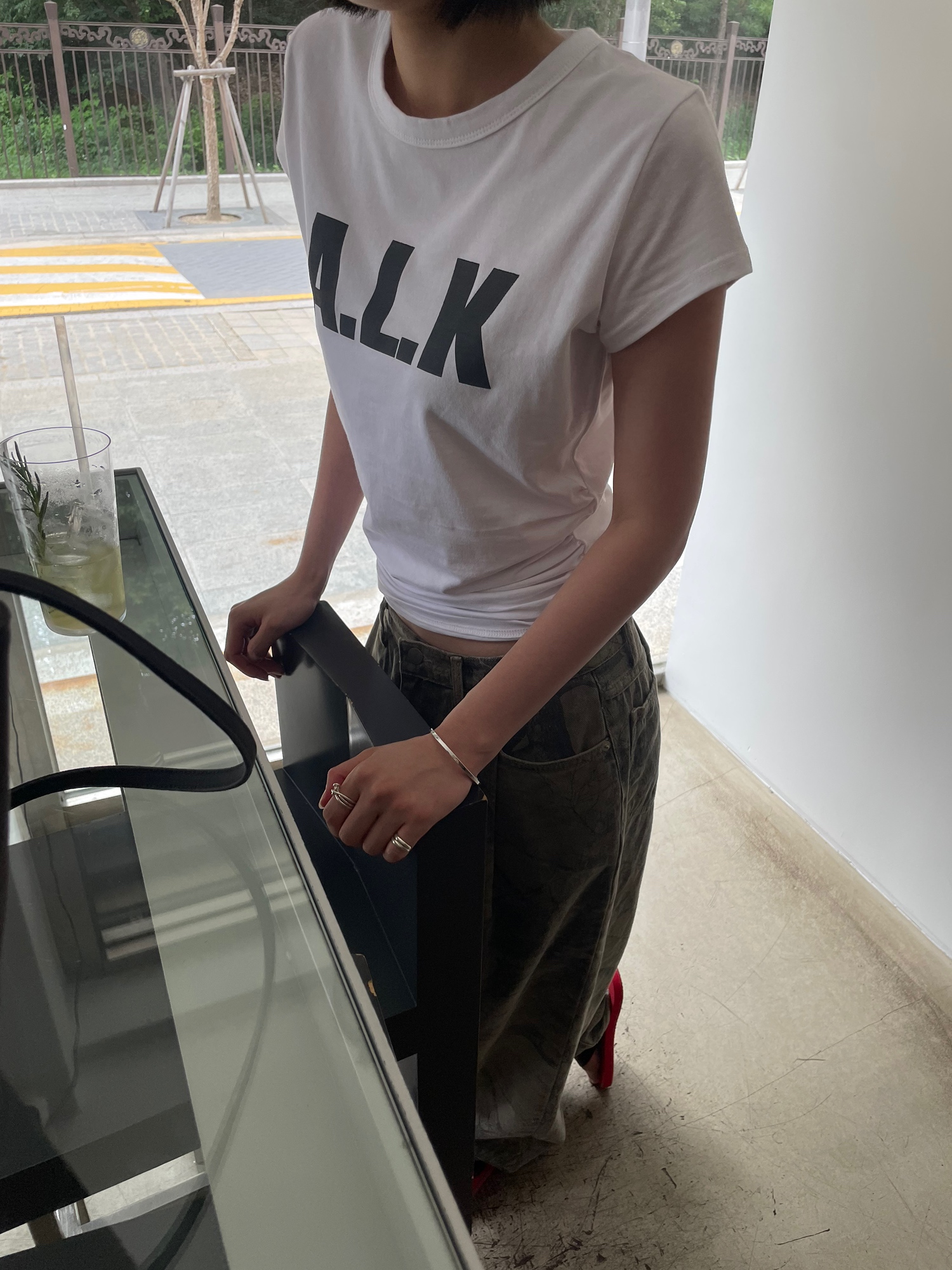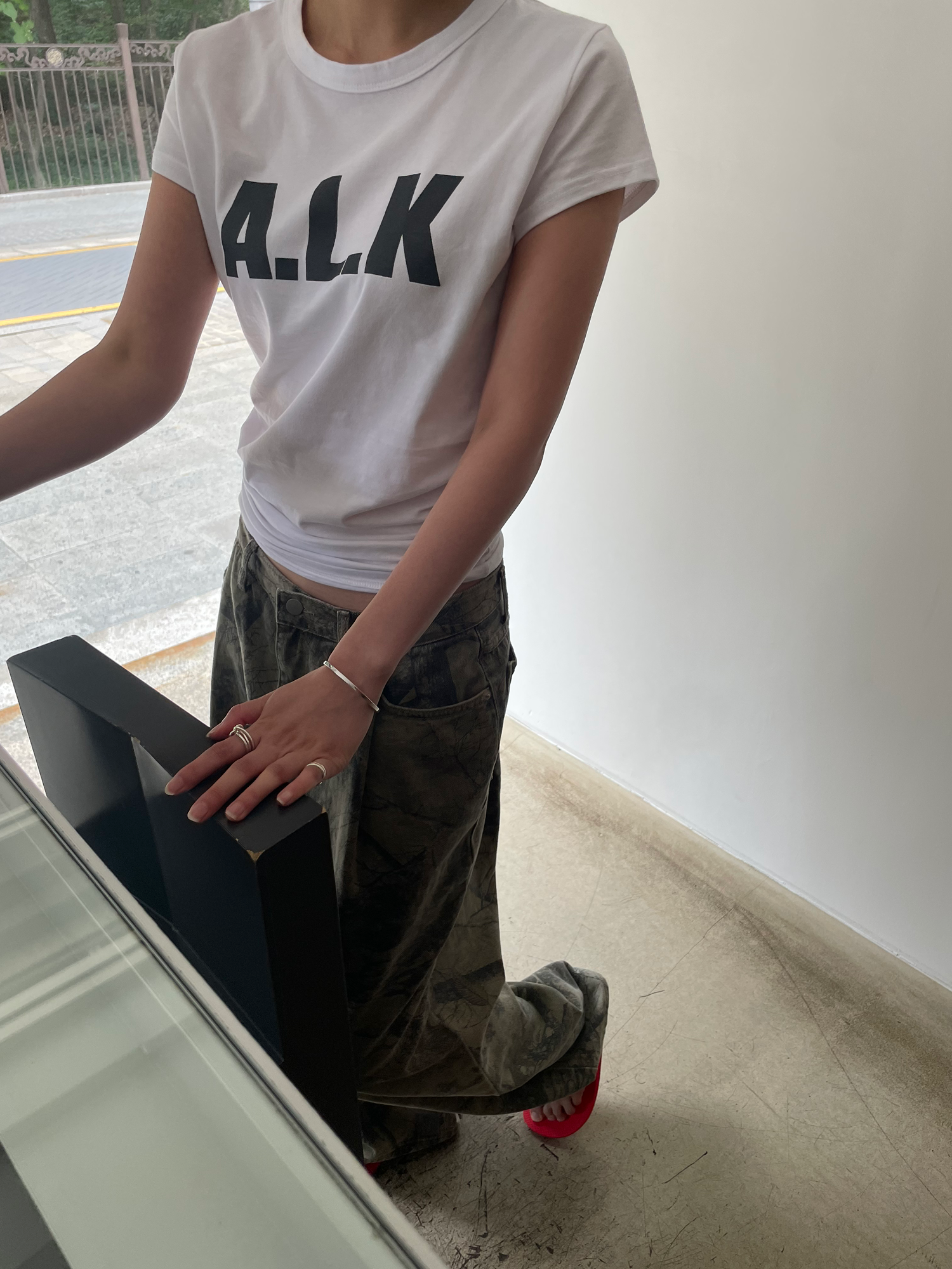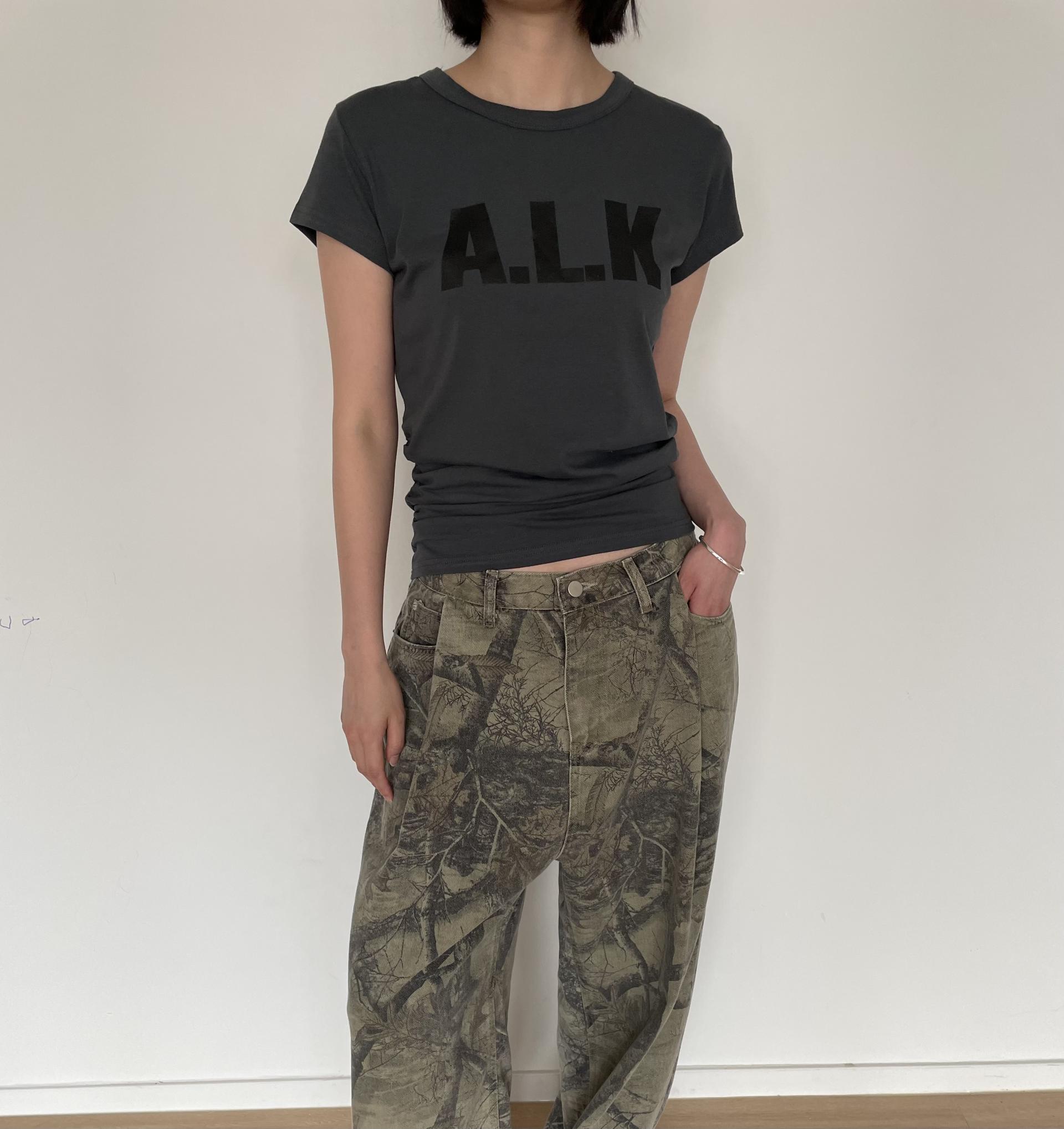 큼직한 A.L.K 레터링과 허리부분 셔링이 포인트인 심플 코튼 티셔츠 입니다.