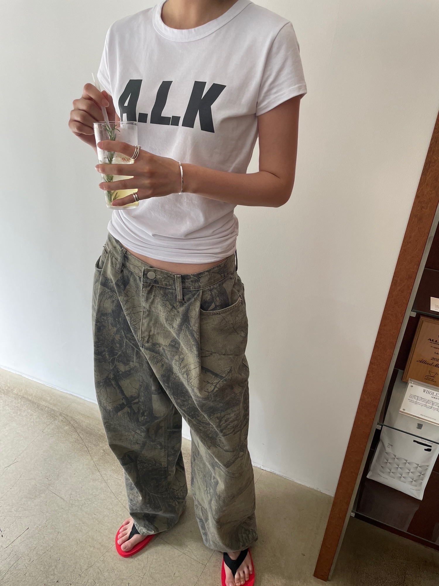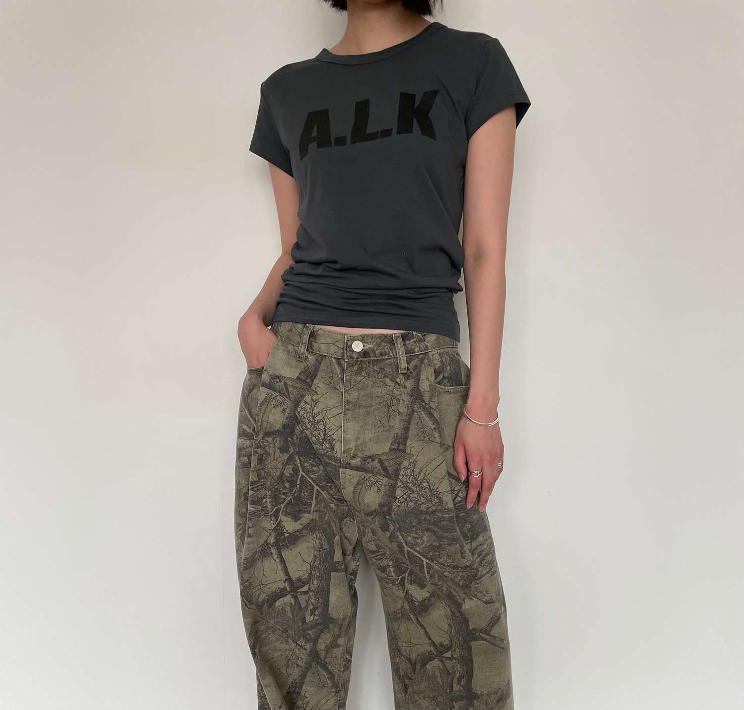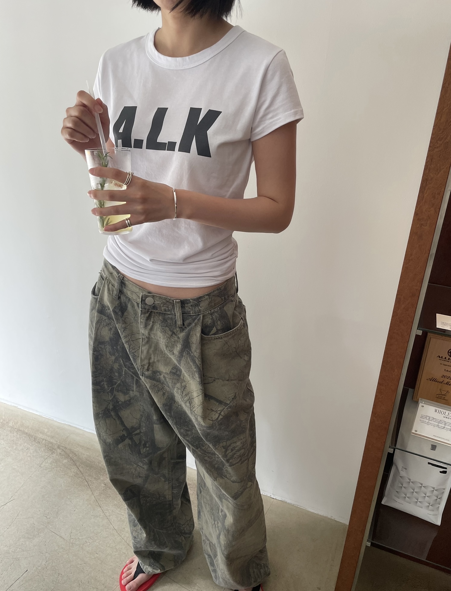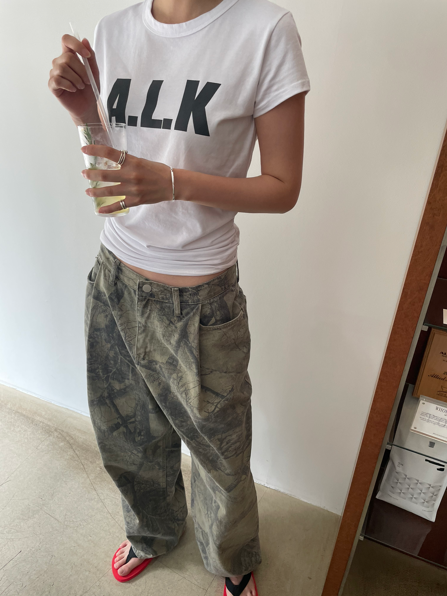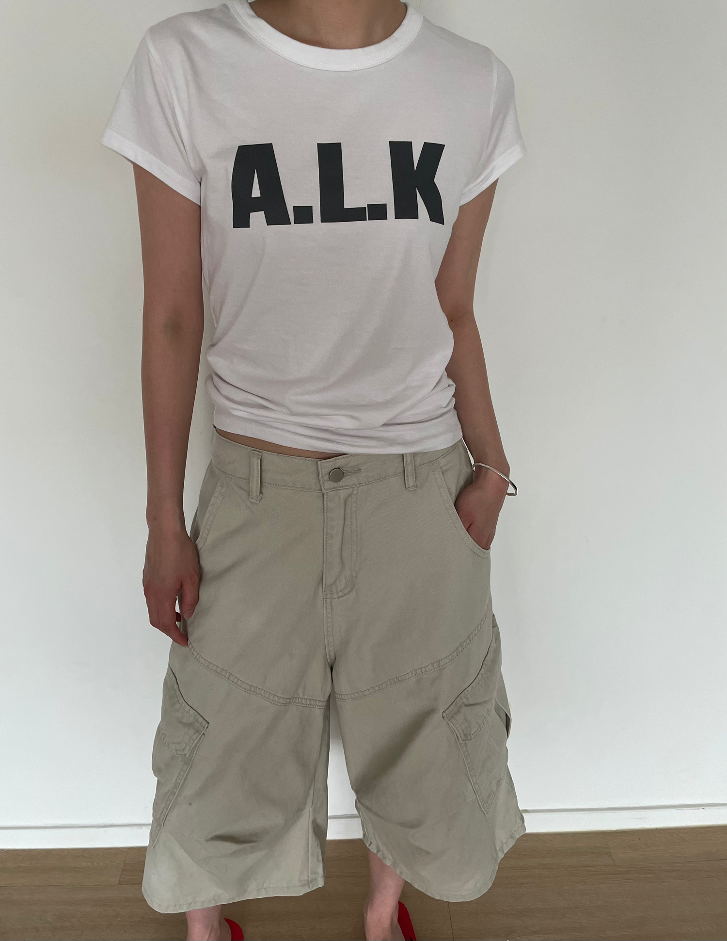 큼직한 A.L.K 레터링과 허리부분 셔링이 포인트인 심플 코튼 티셔츠 입니다.