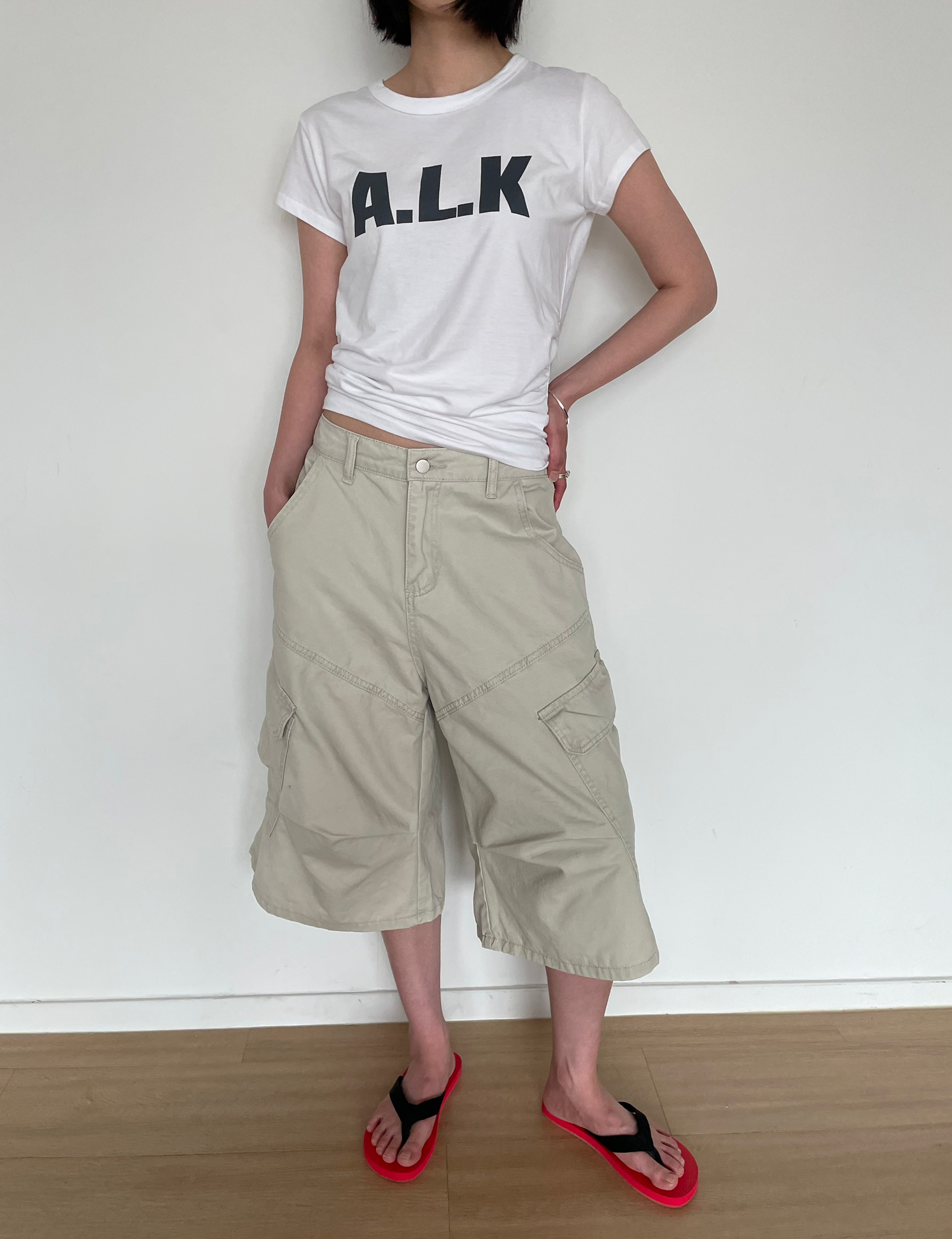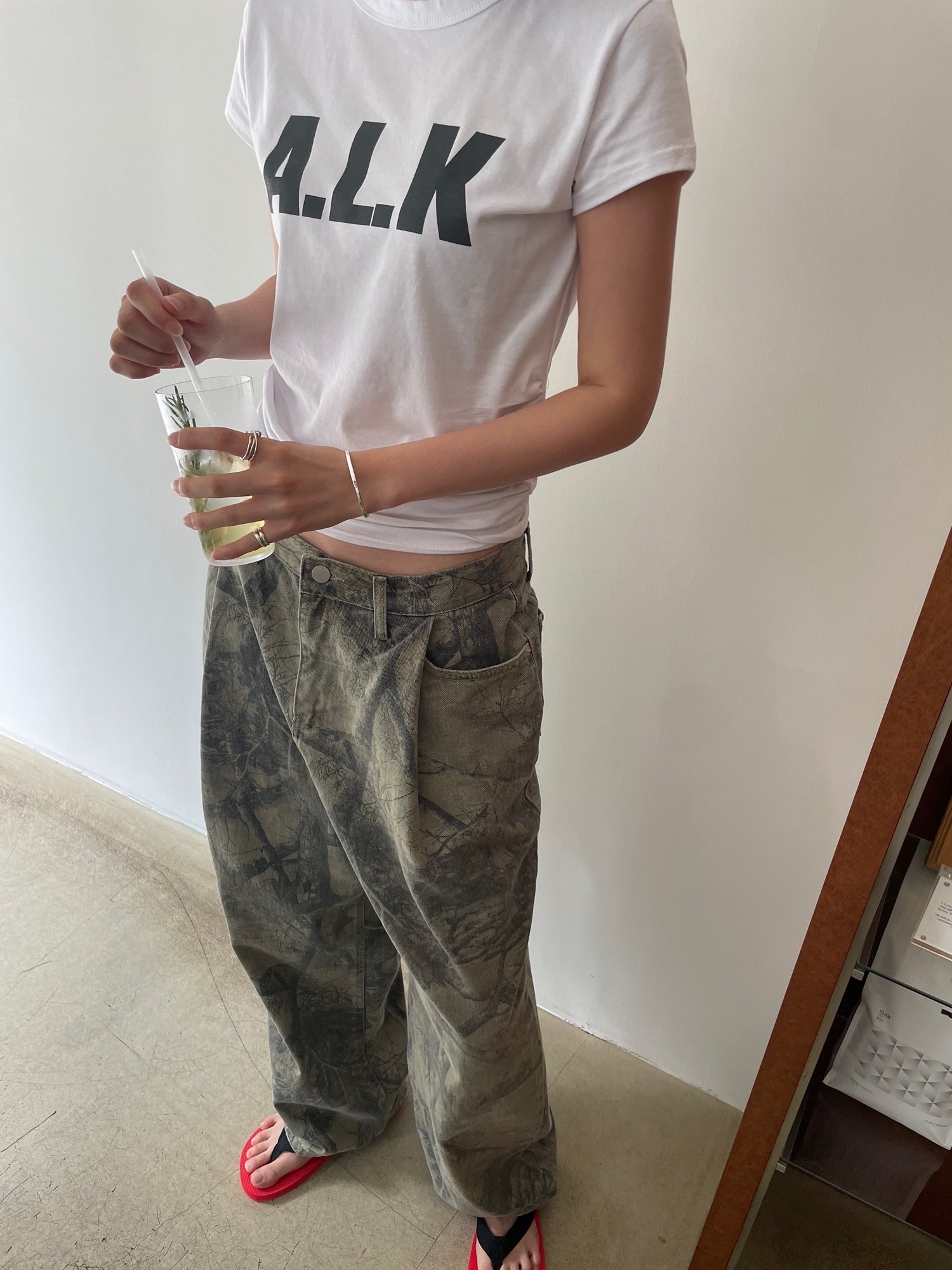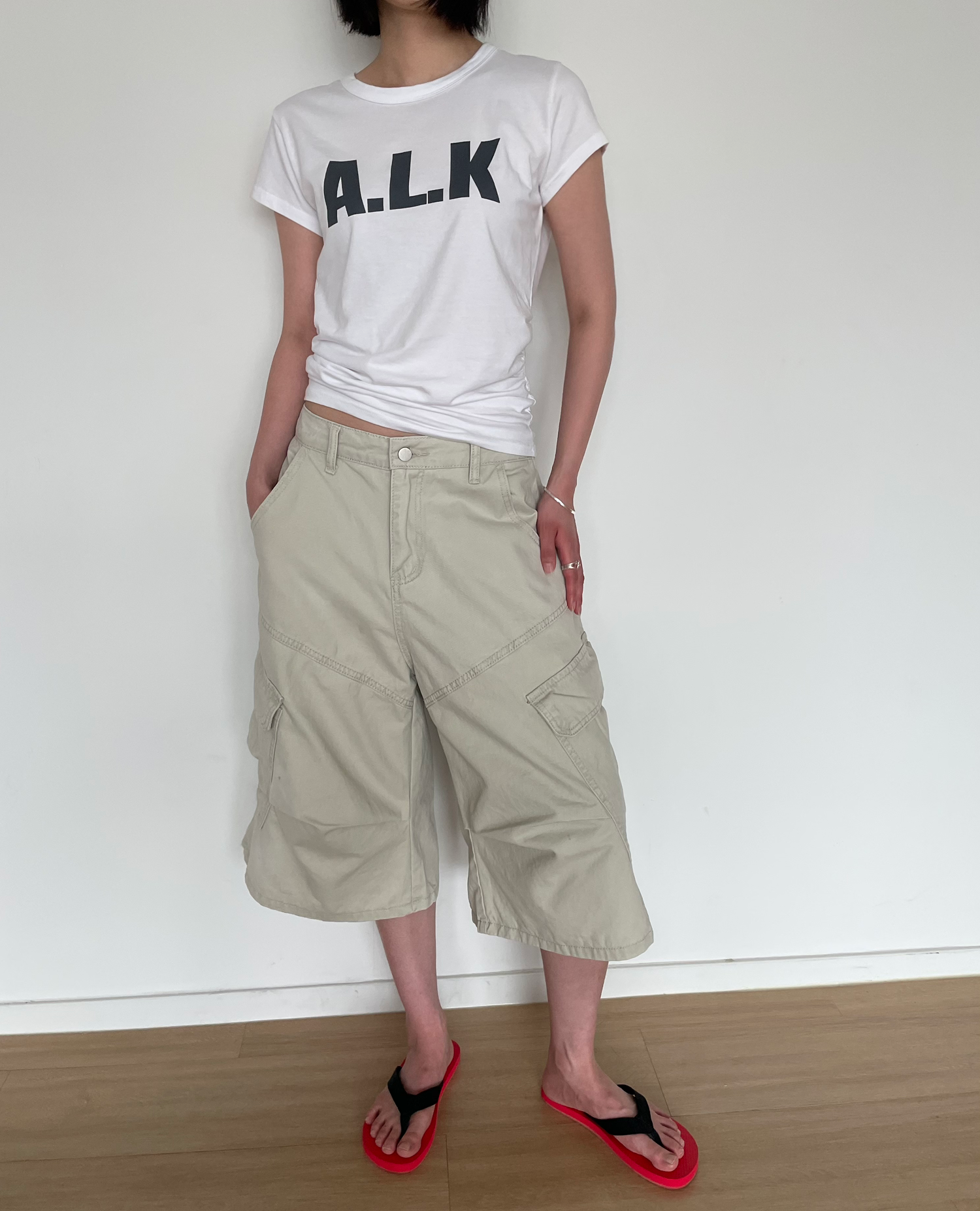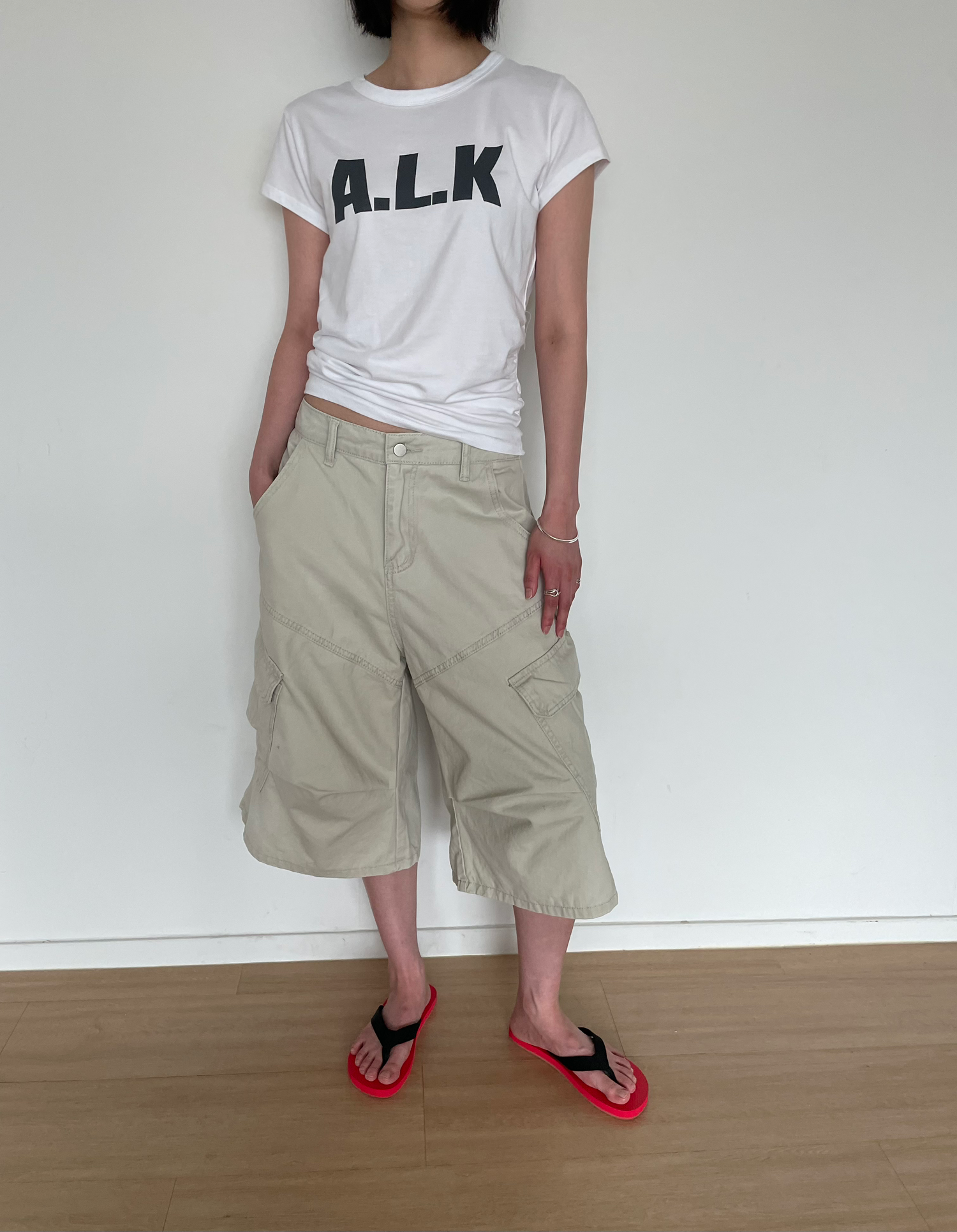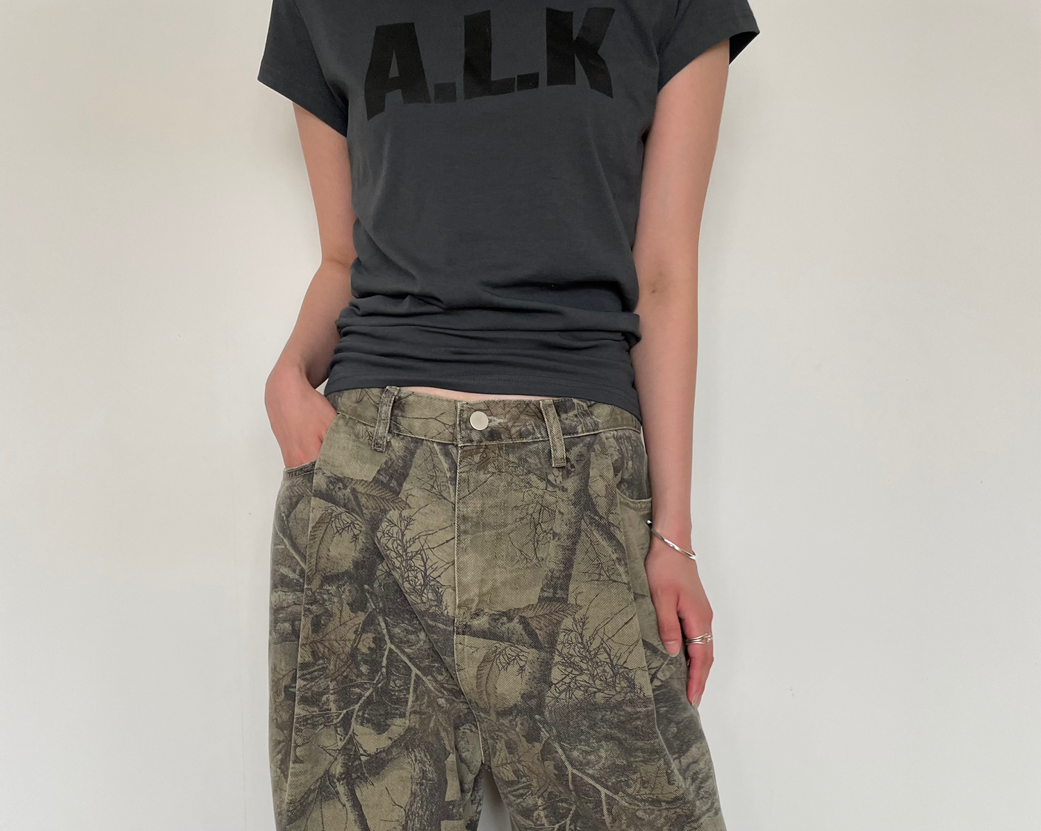 큼직한 A.L.K 레터링과 허리부분 셔링이 포인트인 심플 코튼 티셔츠 입니다.