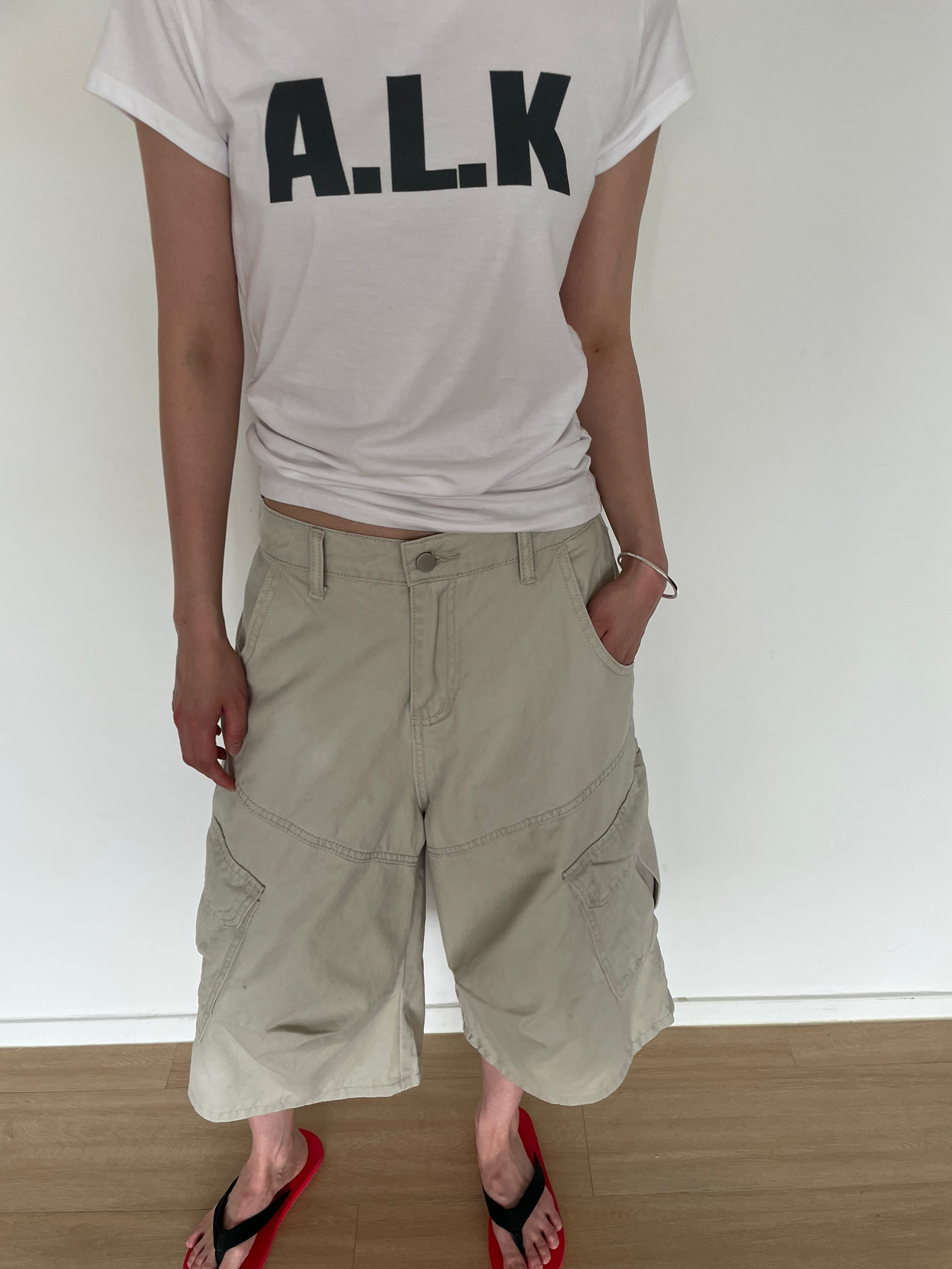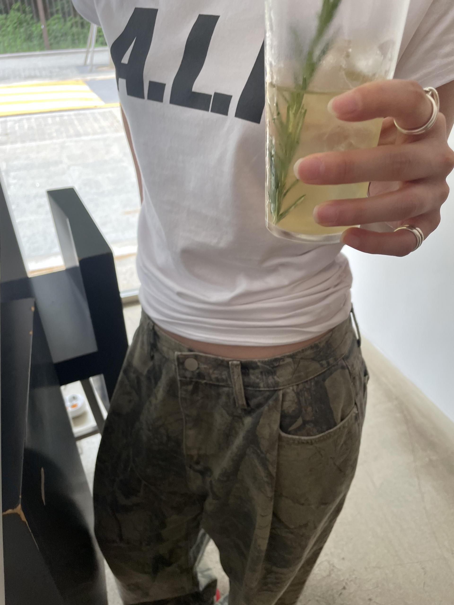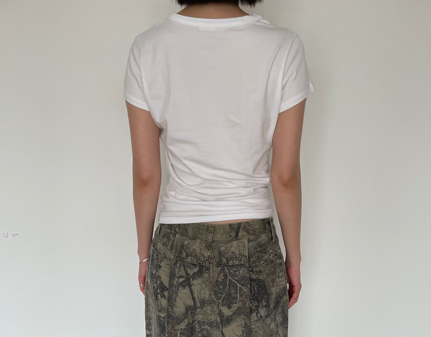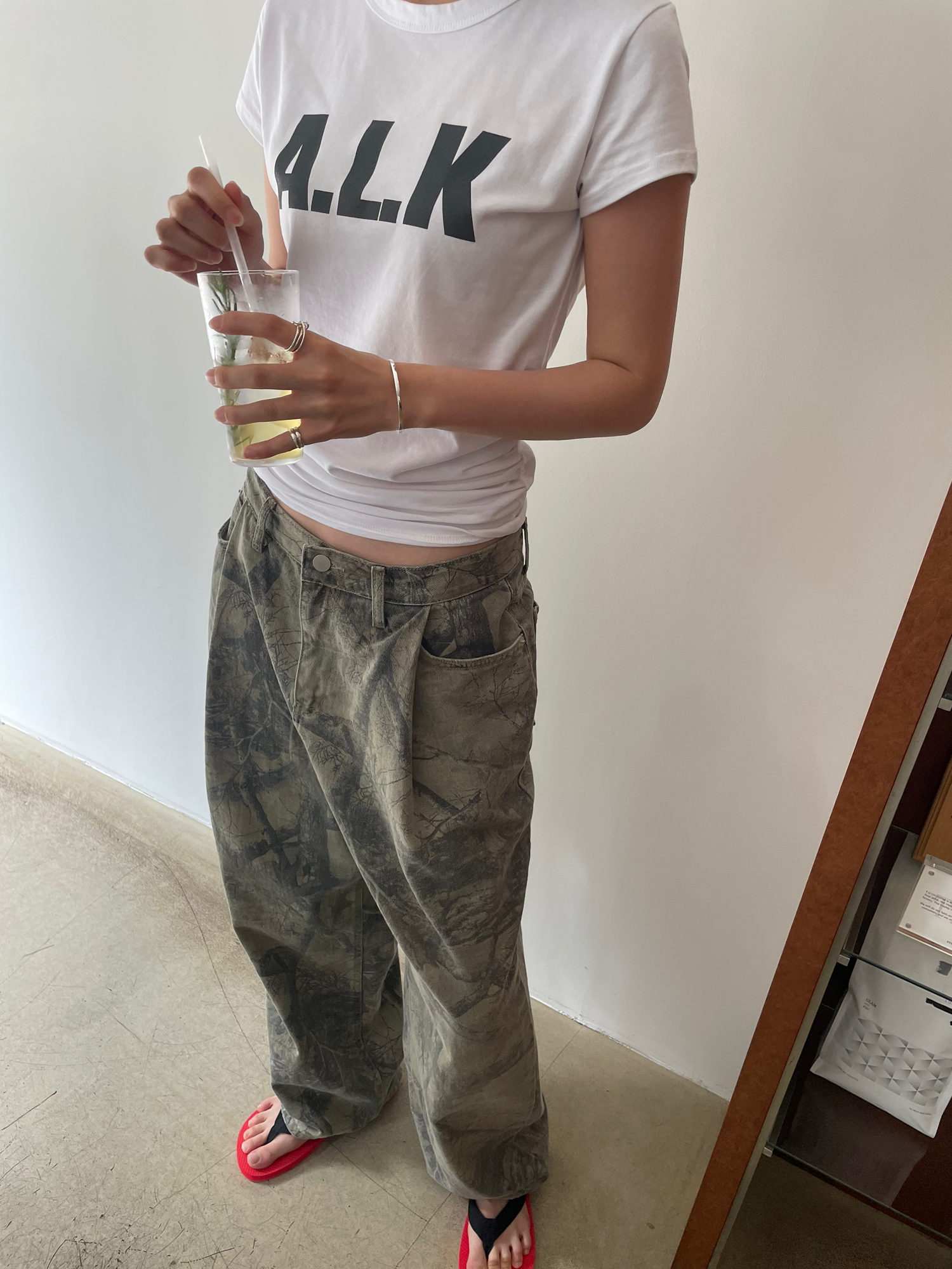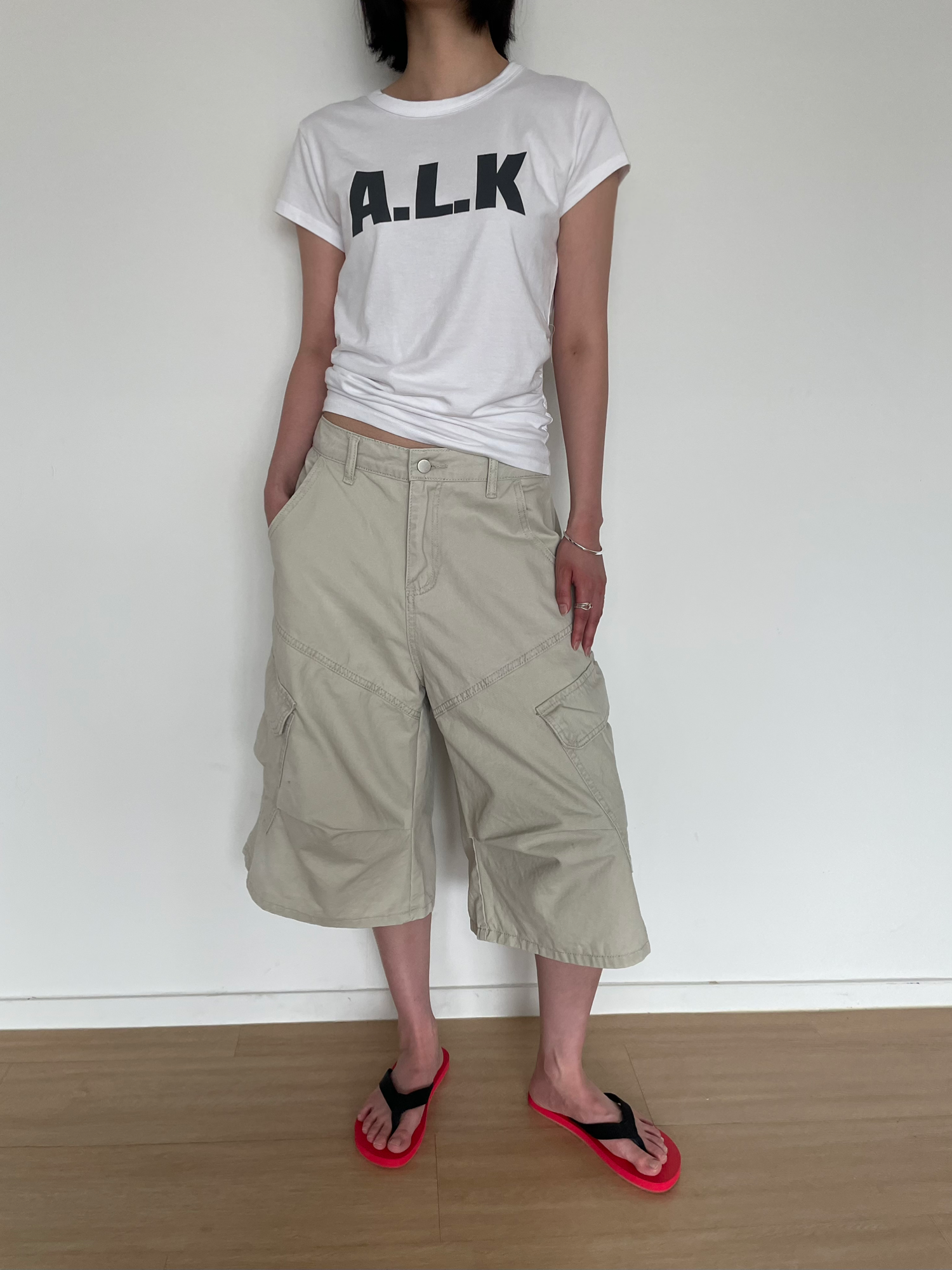 큼직한 A.L.K 레터링과 허리부분 셔링이 포인트인 심플 코튼 티셔츠 입니다.
