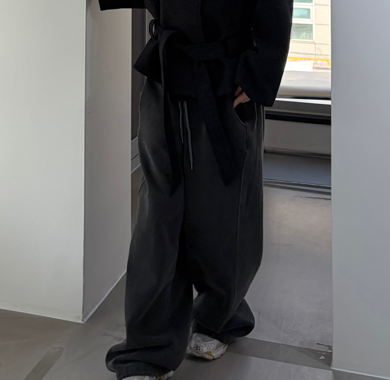 얇고 탄탄한 허리 밴딩이 세련된 포인트가 되어주며 밑단은 스트링으로 쉐입을 잡아 조거 스타일 또는 와이드 핏으로 자유롭게 연출이 가능합니다.