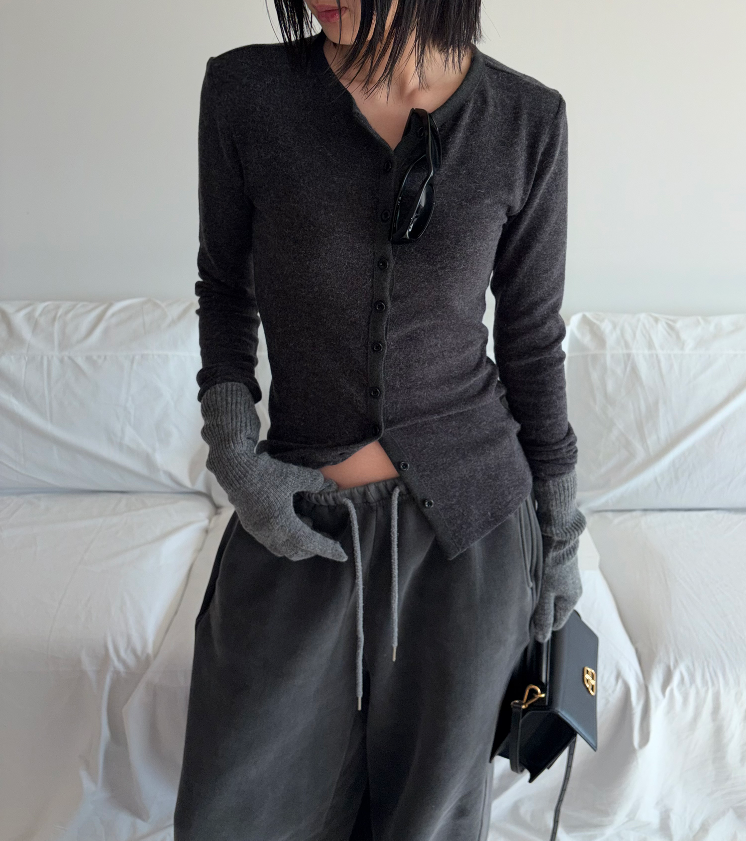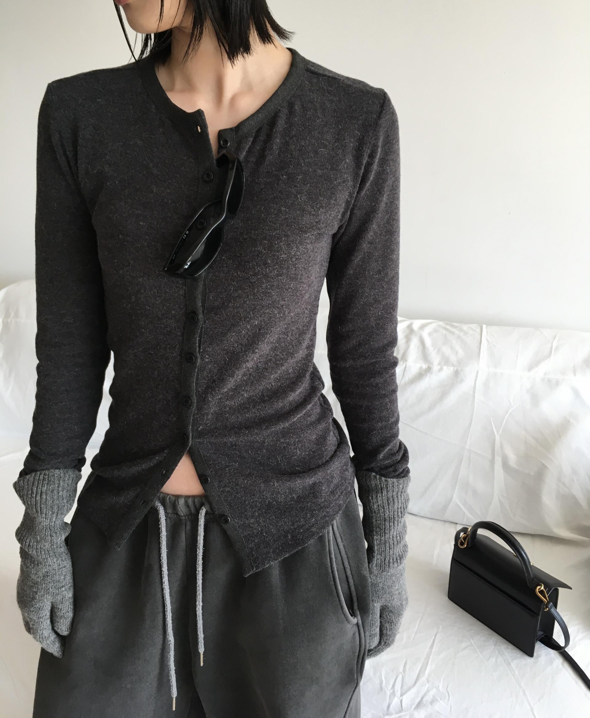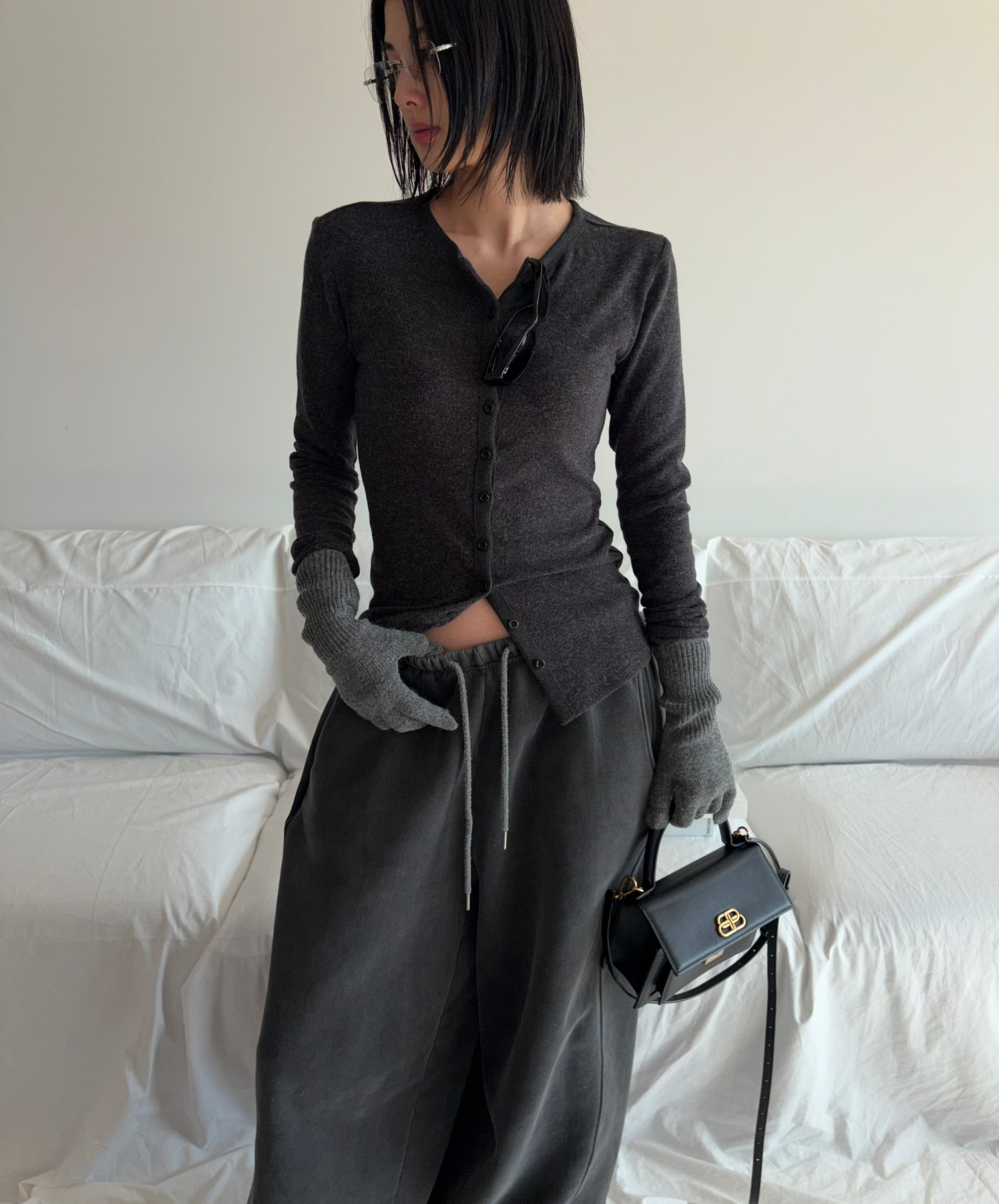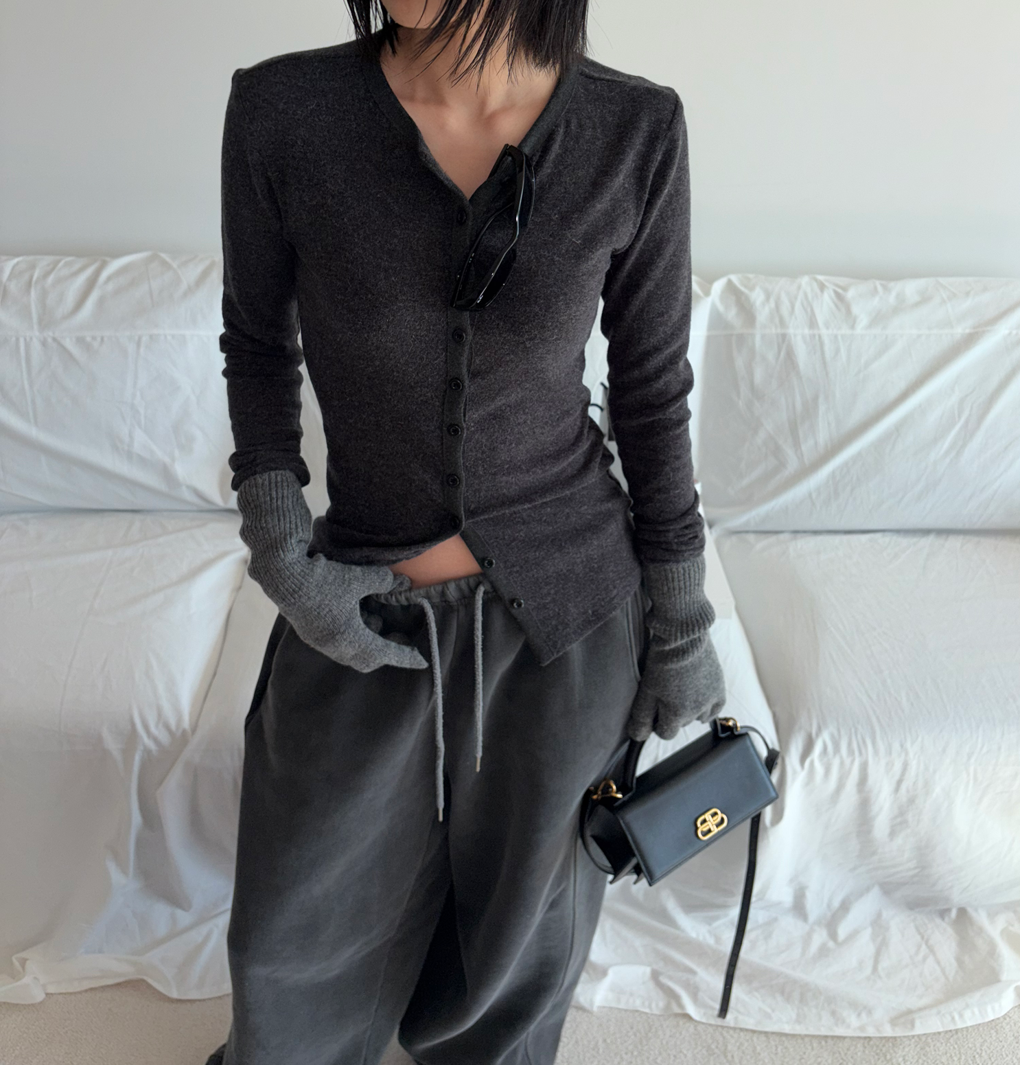 - 탑 소매 위로 살짝 올라오게 연출하여 레이어드 포인트로도 활용 가능