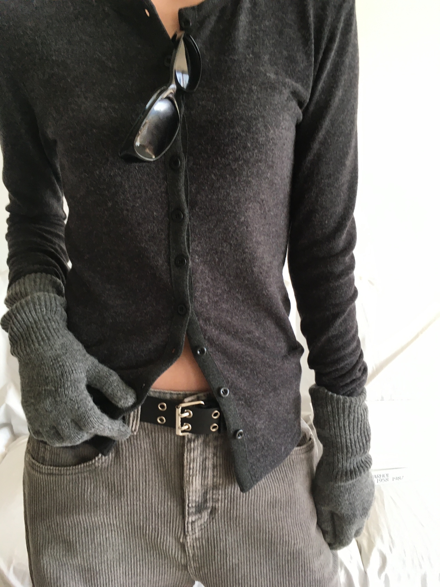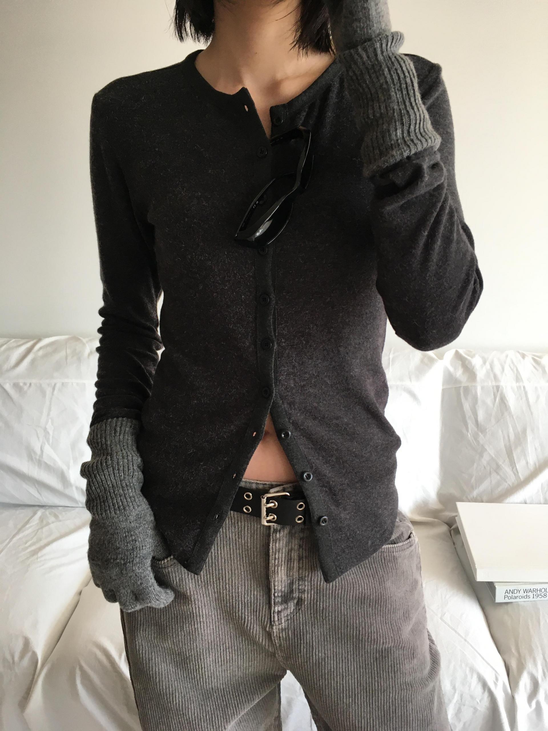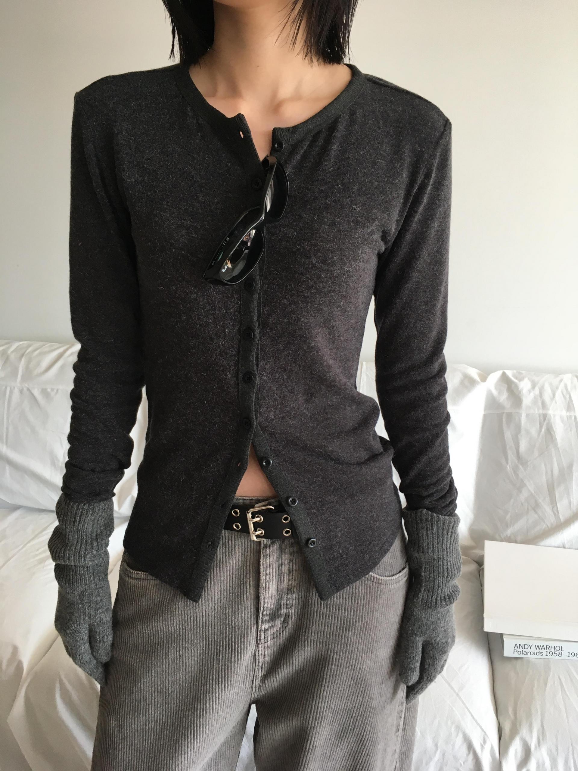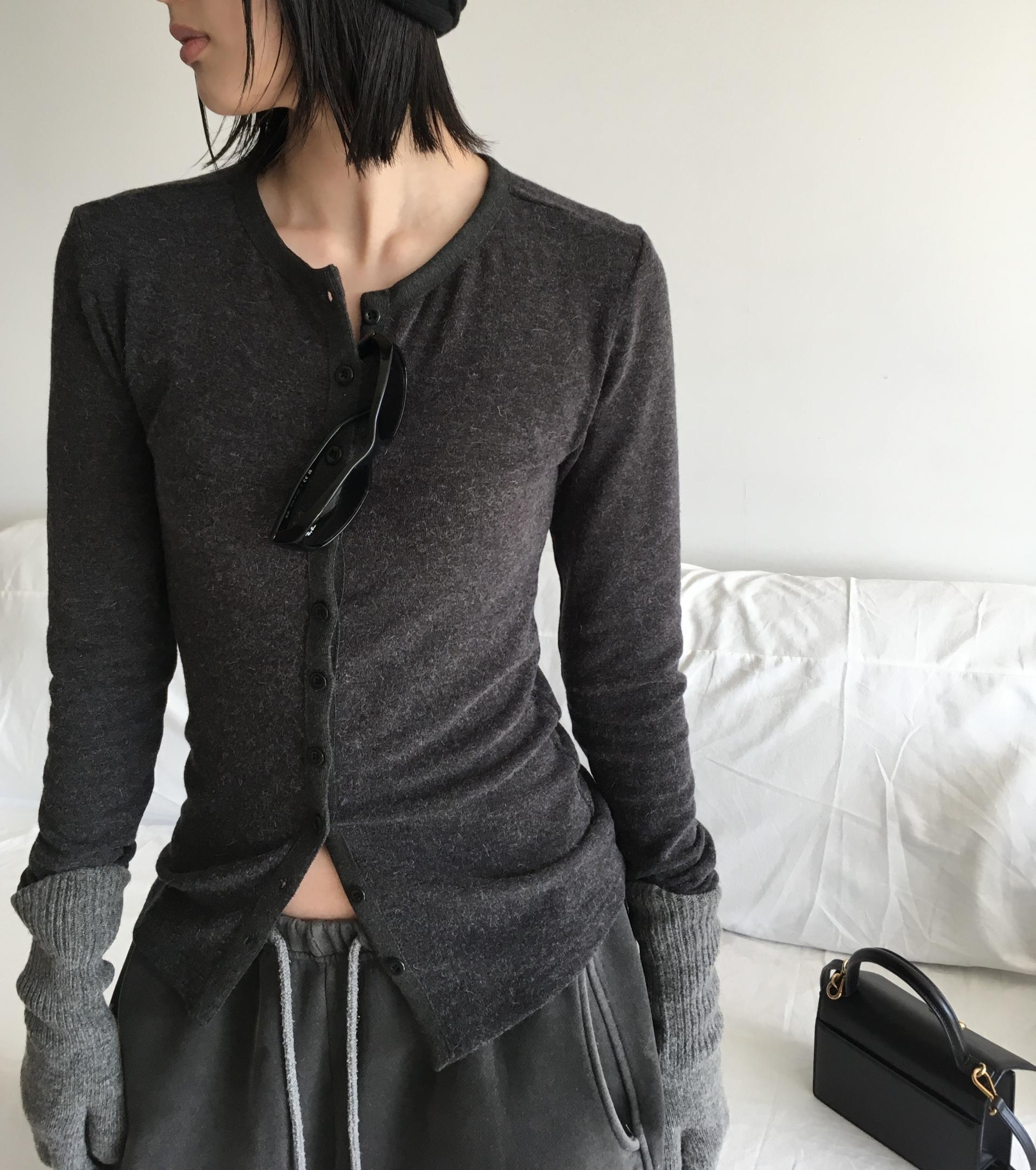 - 탑 소매 위로 살짝 올라오게 연출하여 레이어드 포인트로도 활용 가능