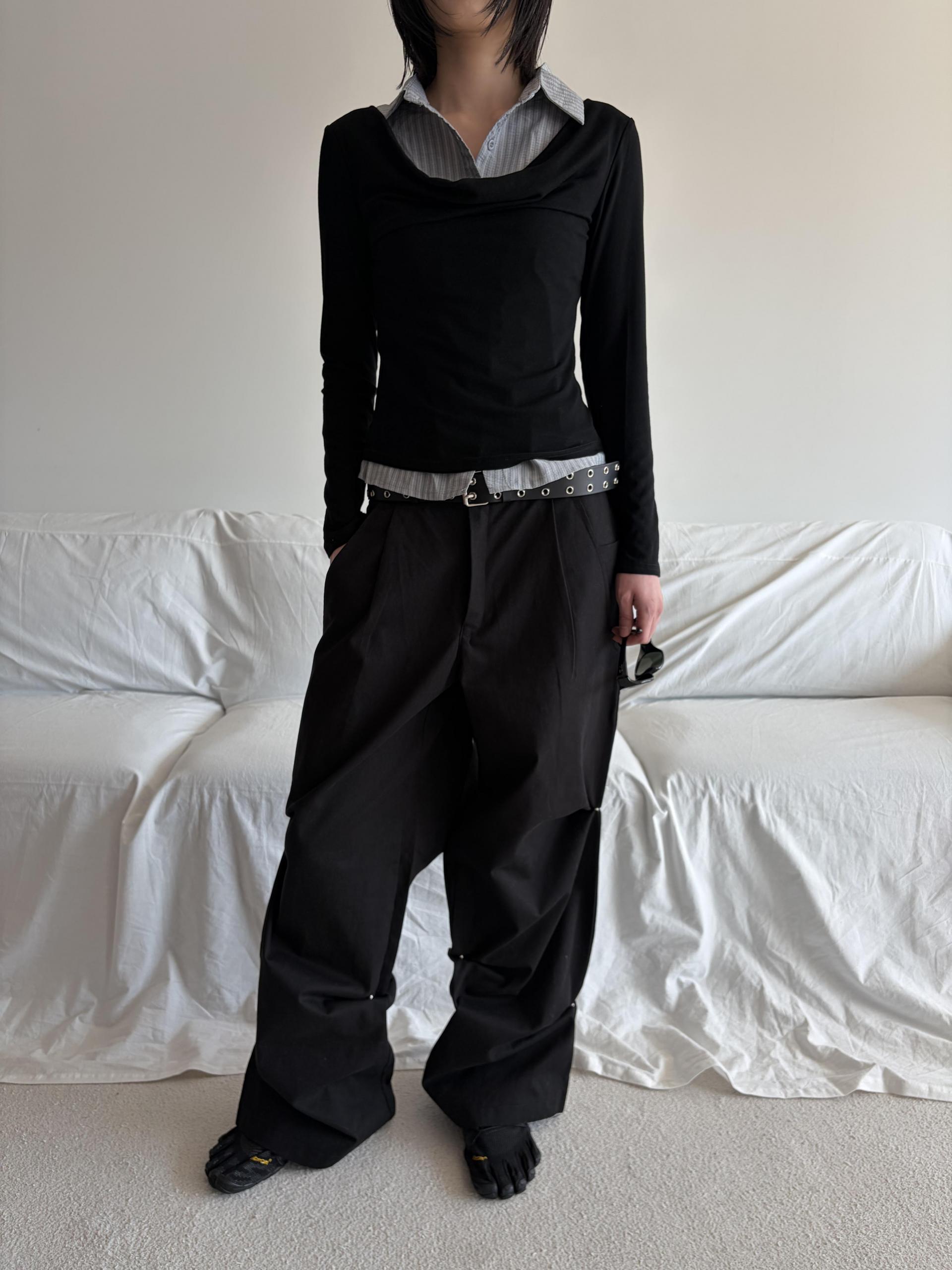 - 스냅단추로 고정하면 핏 변형되는 리벳 디테일